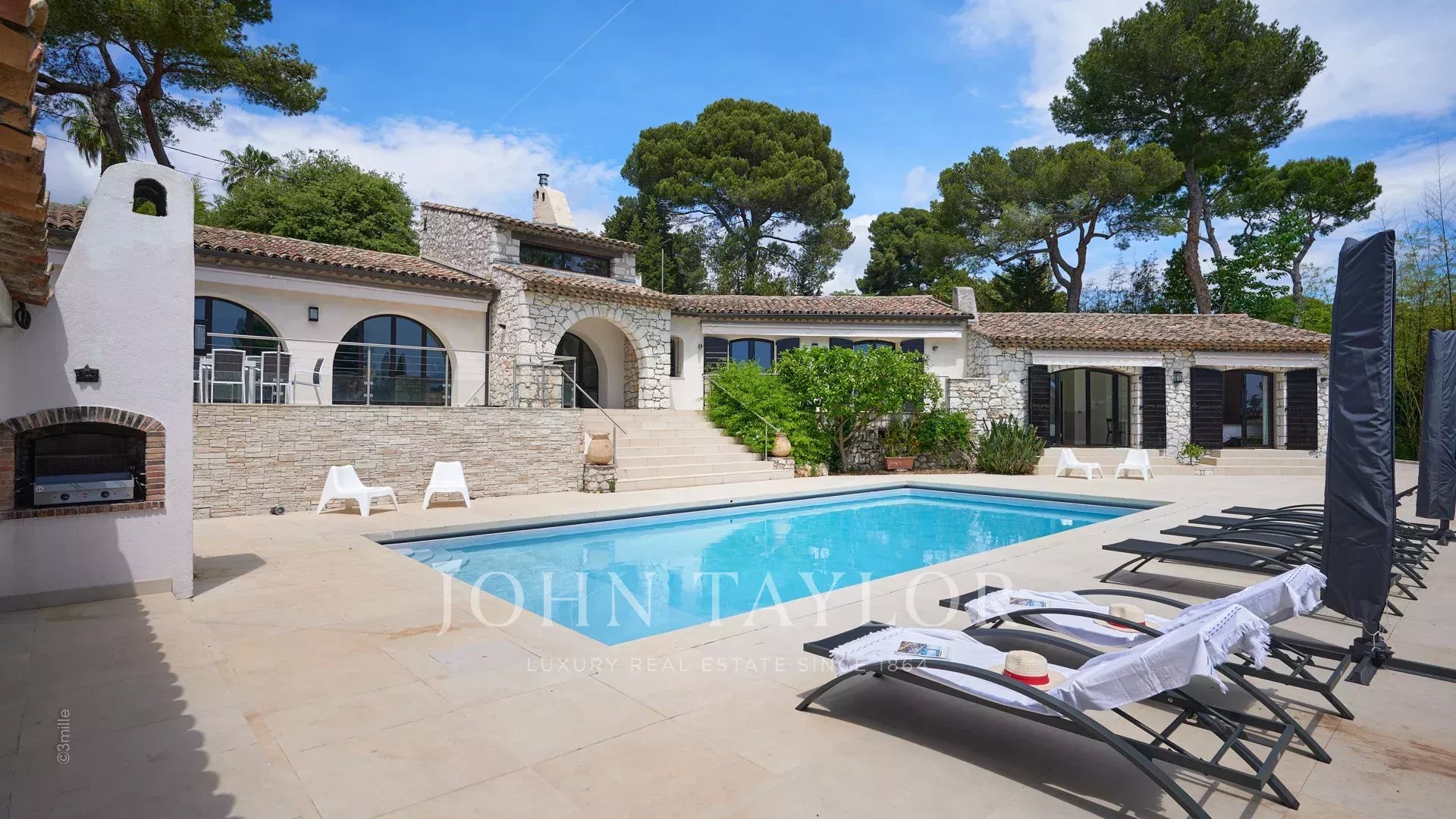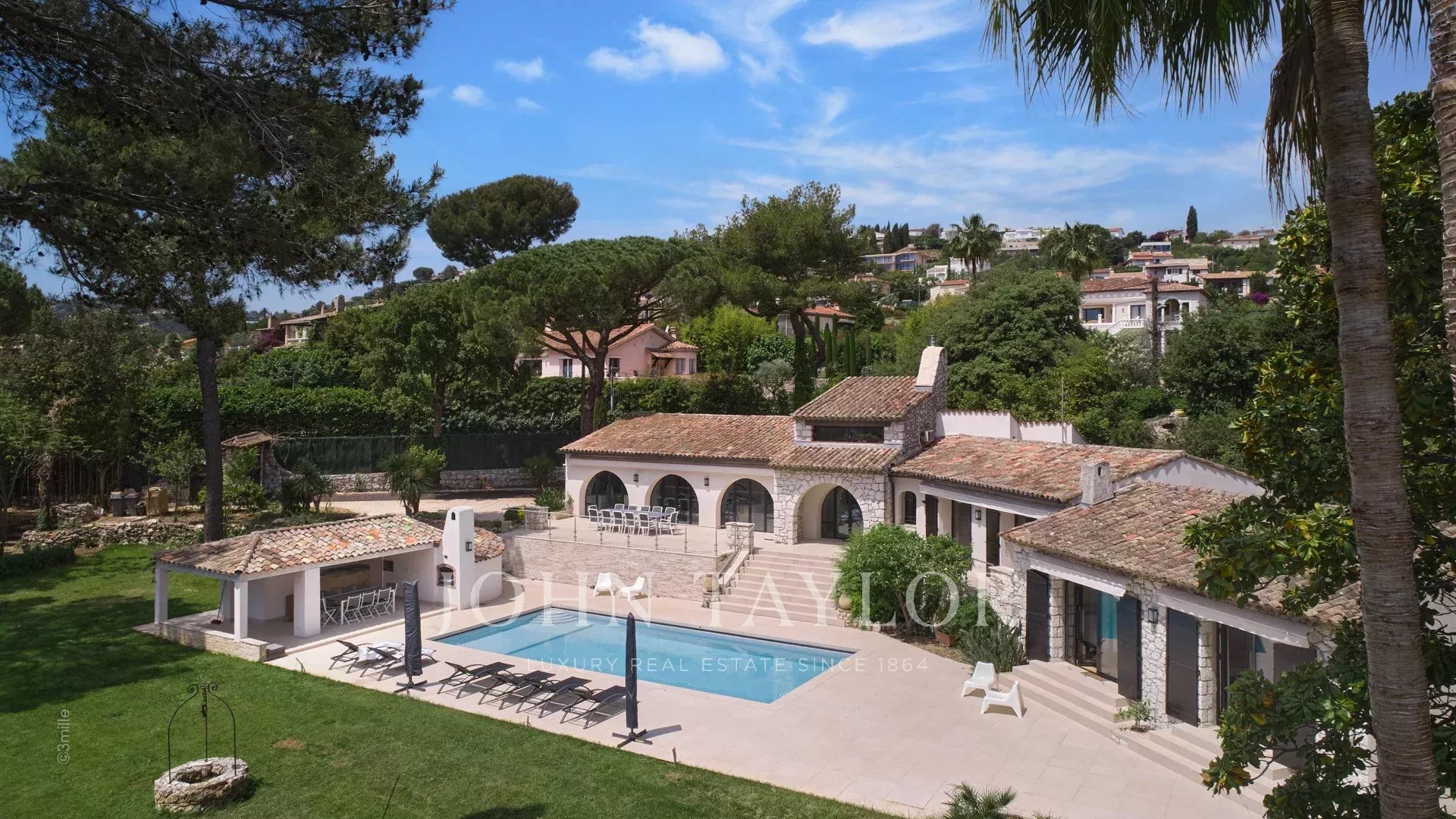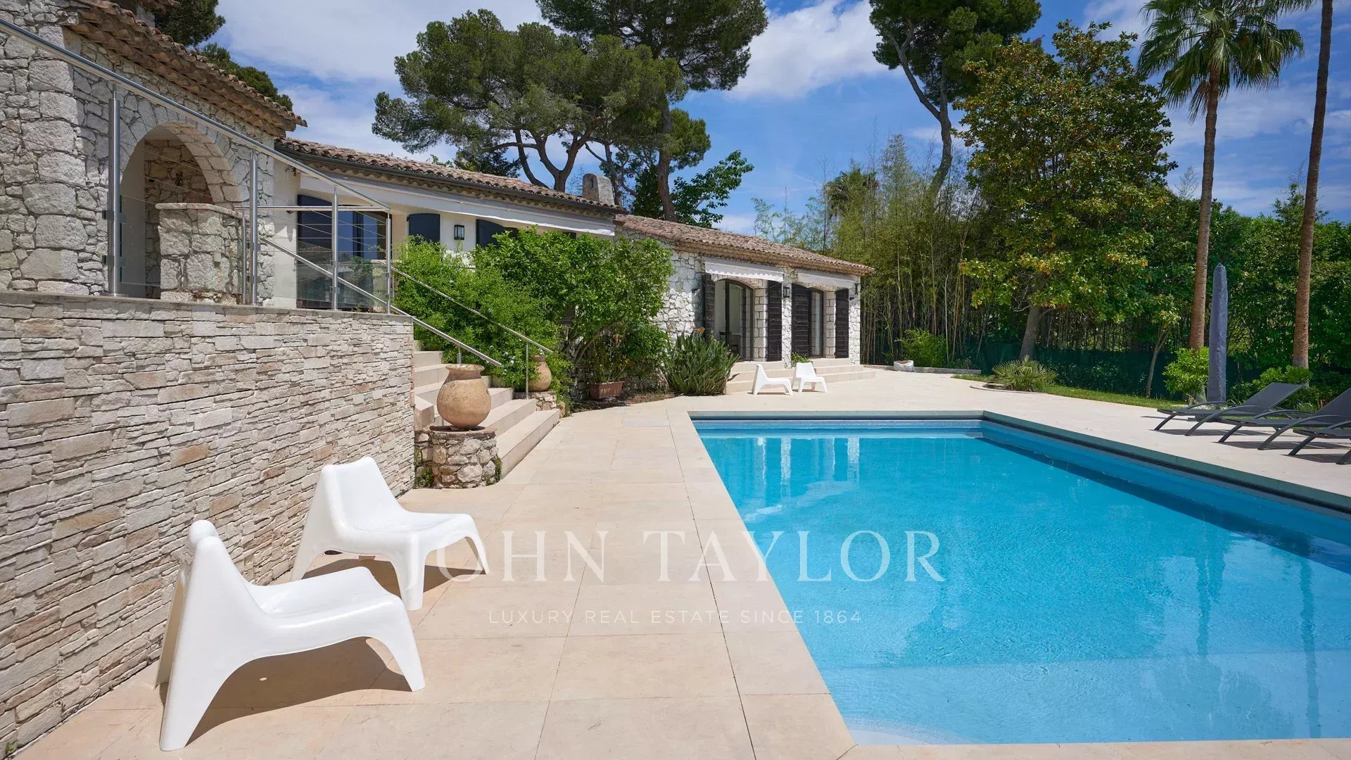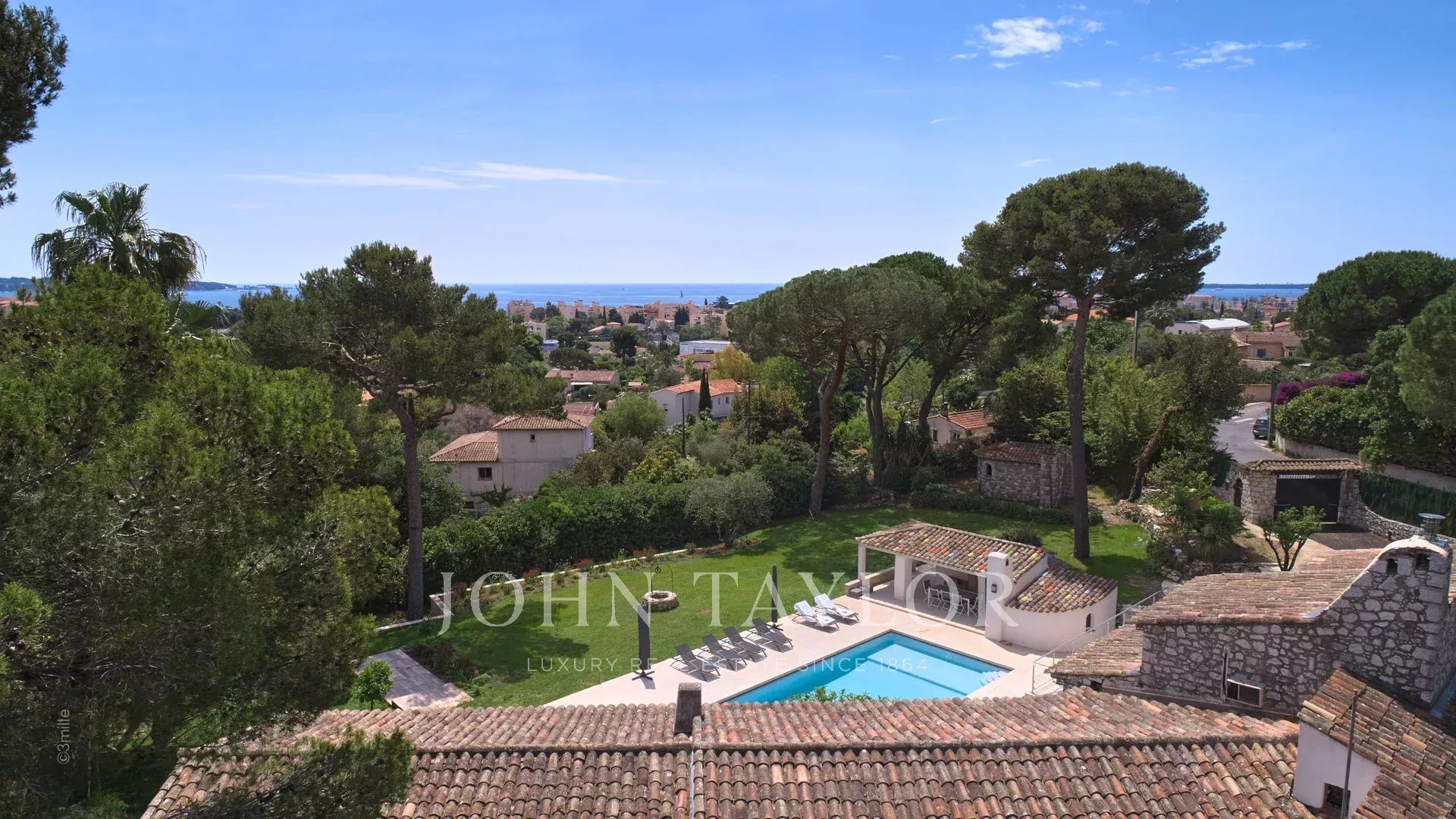 Sulle alture di Golfe-Juan, a 10 minuti di auto dalle sue spiagge e dai suoi ristoranti, in una zona residenziale, bella villa provenzale, completamente ristrutturata e climatizzata, che offre 300 m2 di superficie abitabile, su tre livelli, nel cuore di un terreno pianeggiante di 3.000 m2. Piccola vista mare.