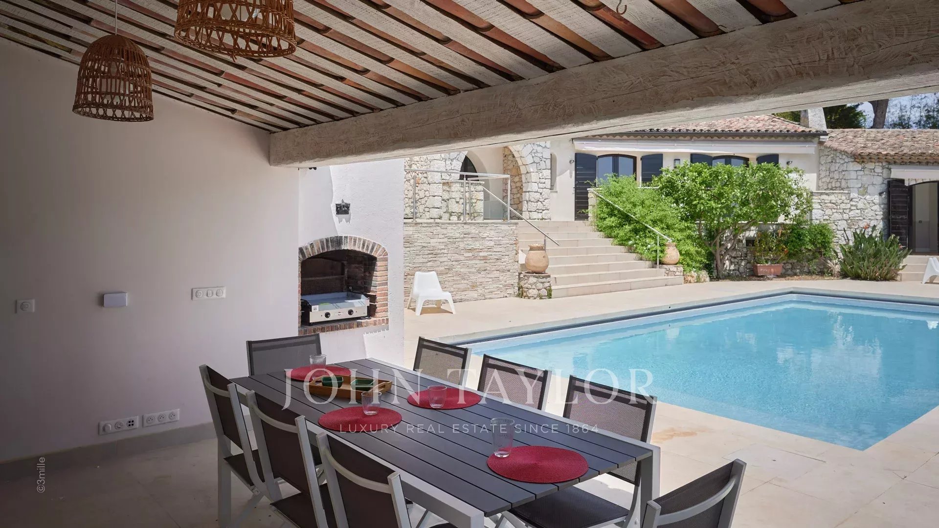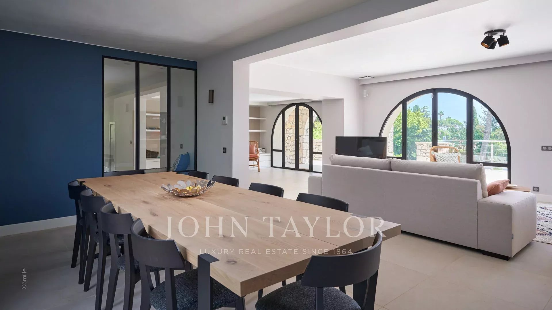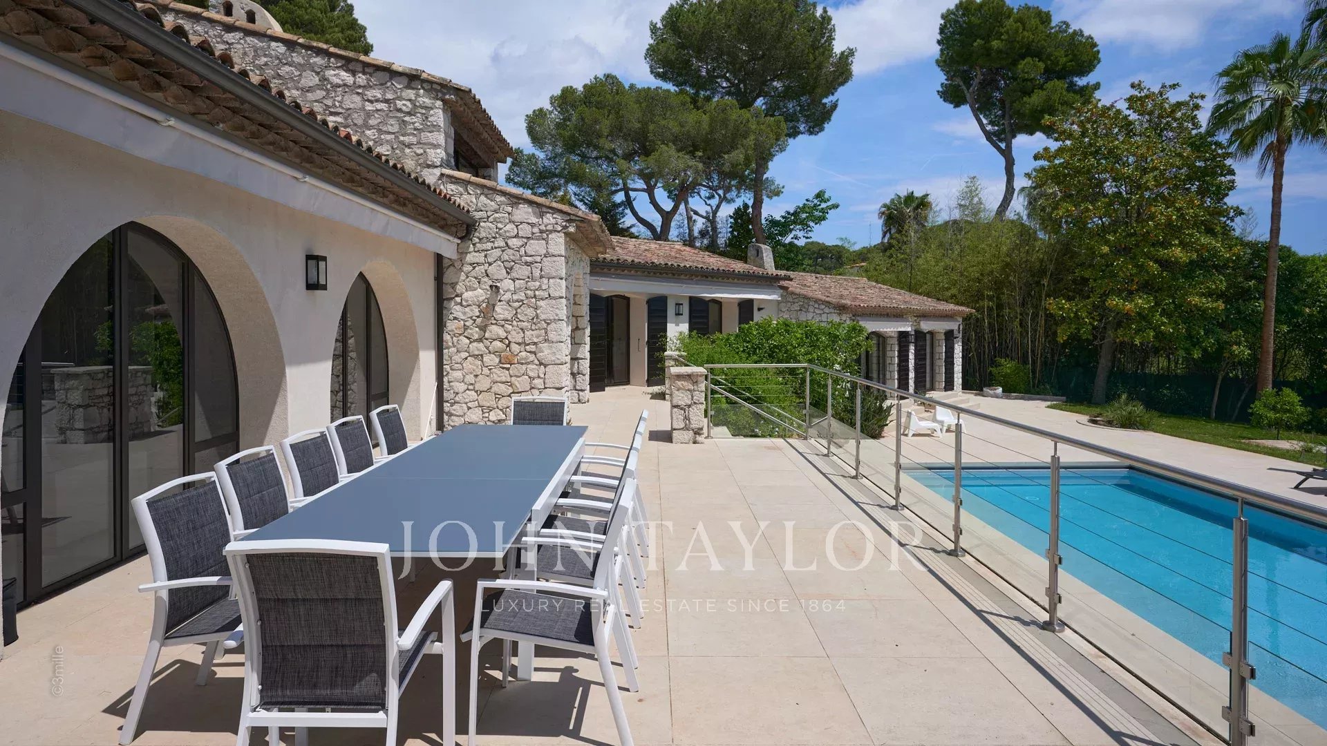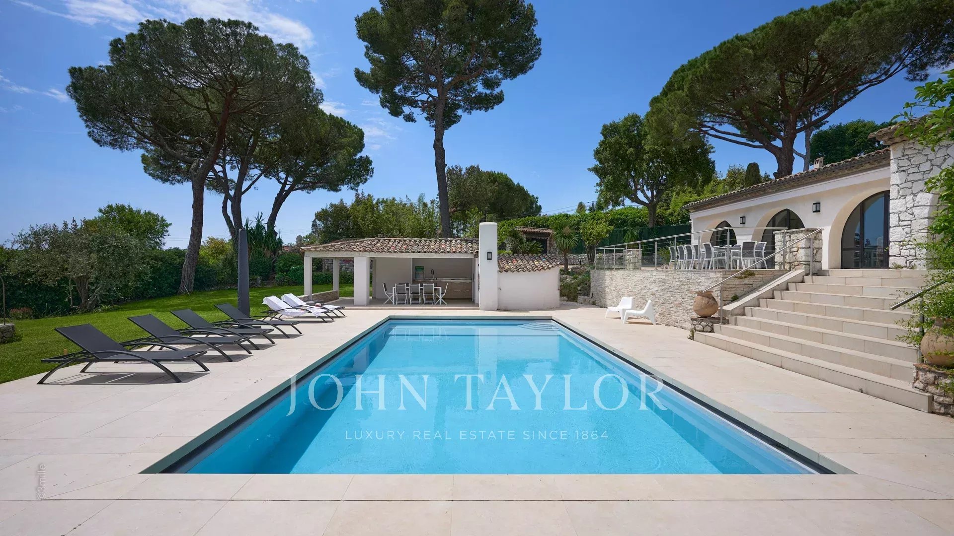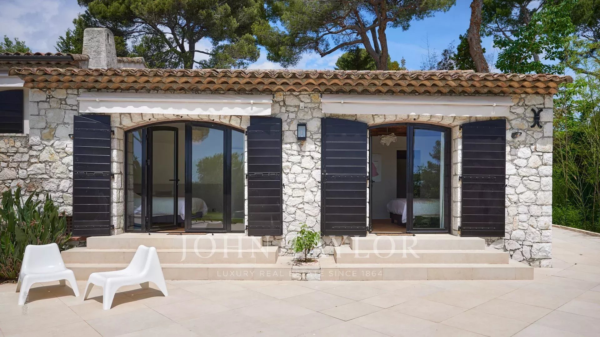 Sulle alture di Golfe-Juan, a 10 minuti di auto dalle sue spiagge e dai suoi ristoranti, in una zona residenziale, bella villa provenzale, completamente ristrutturata e climatizzata, che offre 300 m2 di superficie abitabile, su tre livelli, nel cuore di un terreno pianeggiante di 3.000 m2. Piccola vista mare.