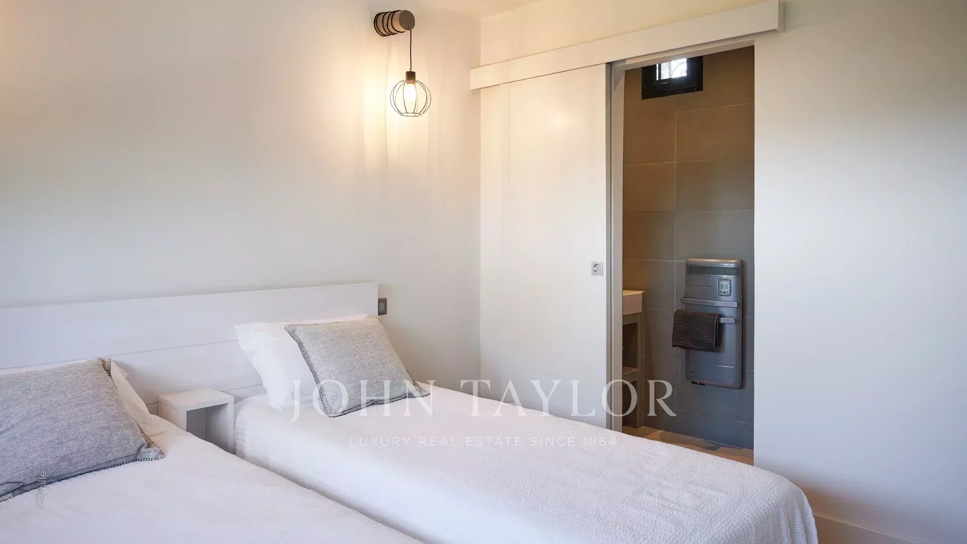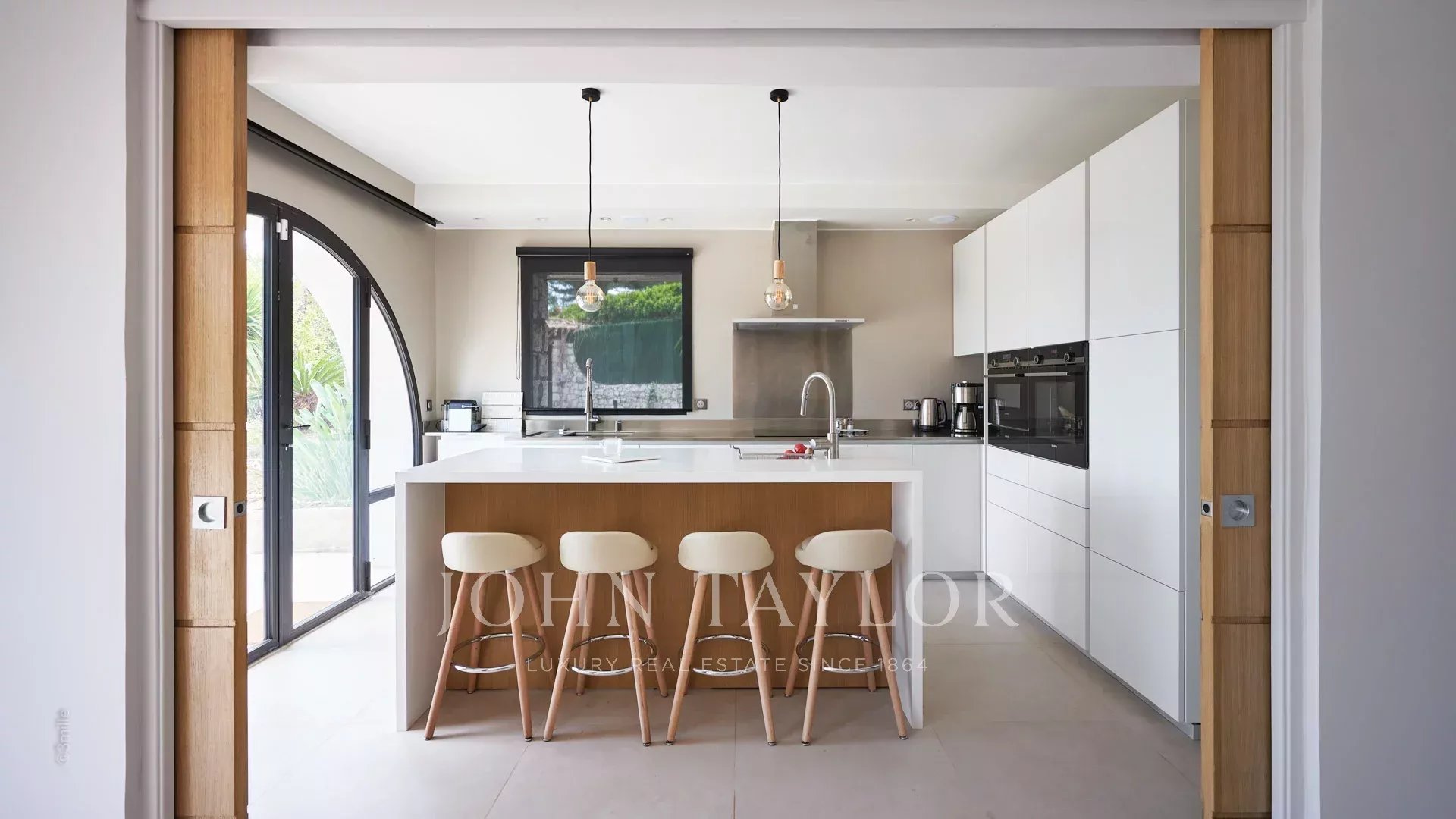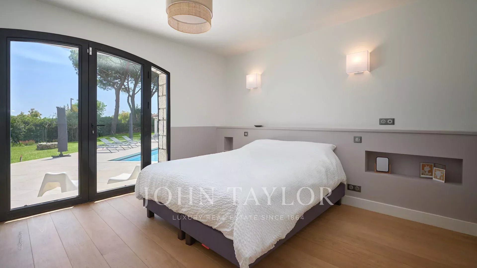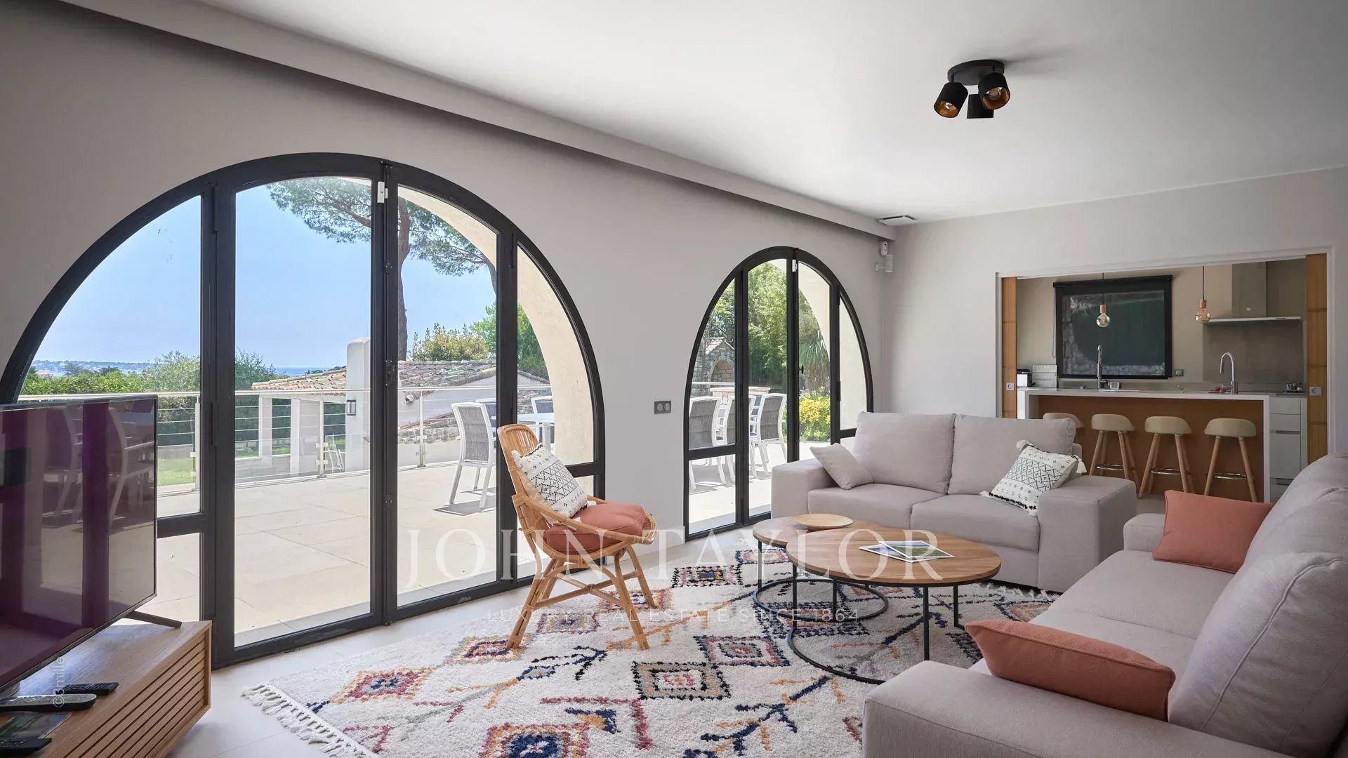 Sulle alture di Golfe-Juan, a 10 minuti di auto dalle sue spiagge e dai suoi ristoranti, in una zona residenziale, bella villa provenzale, completamente ristrutturata e climatizzata, che offre 300 m2 di superficie abitabile, su tre livelli, nel cuore di un terreno pianeggiante di 3.000 m2. Piccola vista mare.