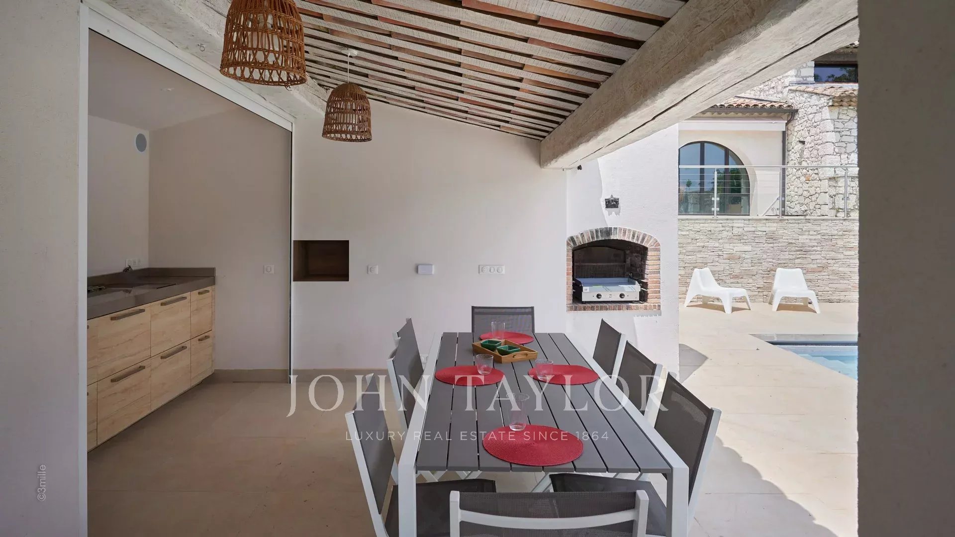 Pool-house con angolo cottura attrezzato con frigorifero, 2 piastre e barbecue