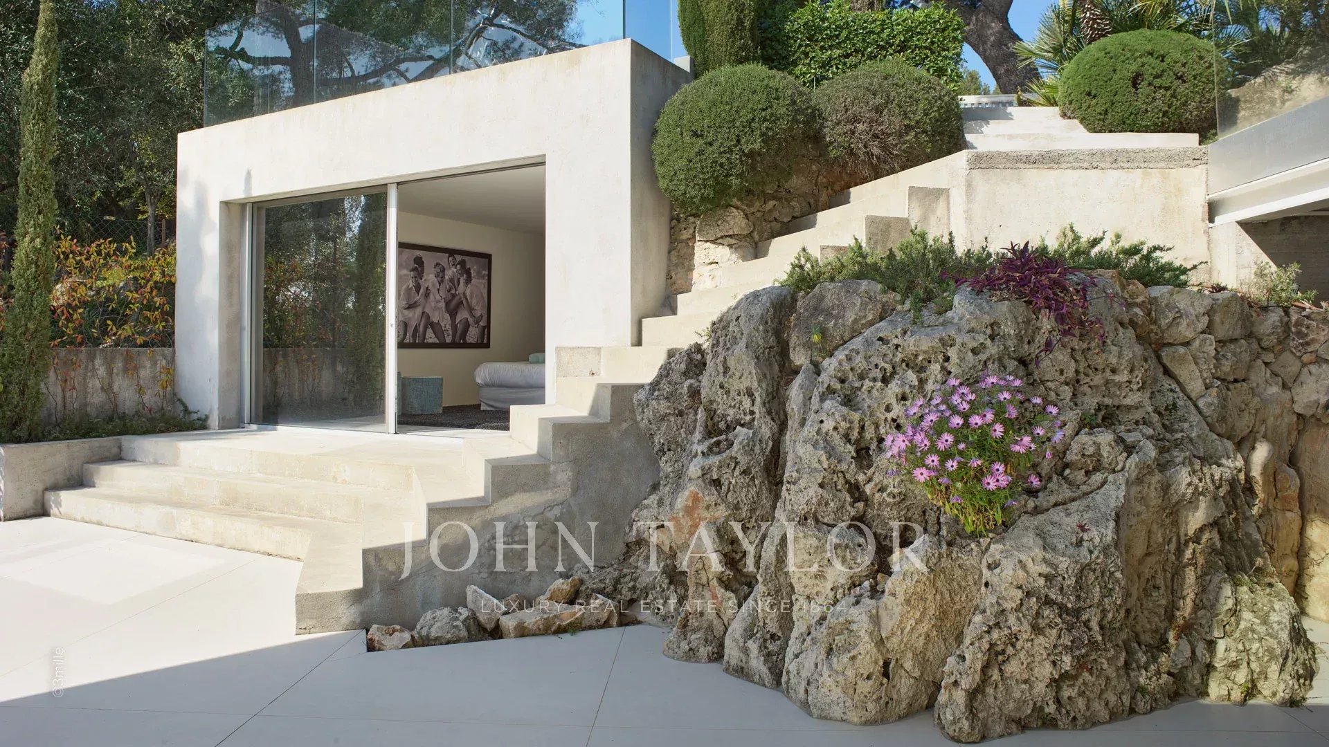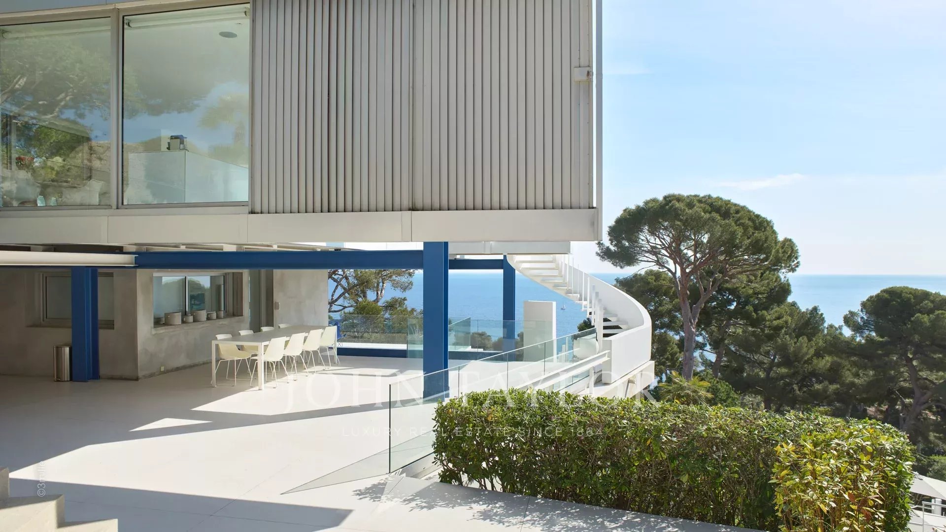 In una delle zone più ricercate di Cap d'Antibes, vicino al faro della Garoupe e a pochi minuti di auto dalle spiagge di Salis e dal Port de la Gallice, questa magnifica villa moderna è stata costruita nel 1966 dal famoso architetto Claude Parent. Completamente ristrutturata e climatizzata, è esposta a sud e offre una magnifica vista panoramica sulla baia di Cap d'Antibes e sulla città.