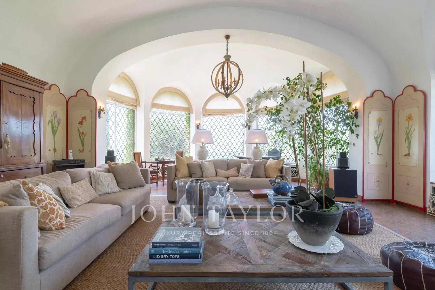 Al livello del giardino, la proprietà dispone di un ampio soggiorno, una sala da pranzo, una cucina completamente attrezzata con sala da pranzo adiacente, un ampio cortile che conduce all'ingresso, uno studio, una sala TV, una camera da letto principale (letto da 180 cm) (1) che si apre su un ampio balcone con vista sulla baia di Cannes, con bagno privato.