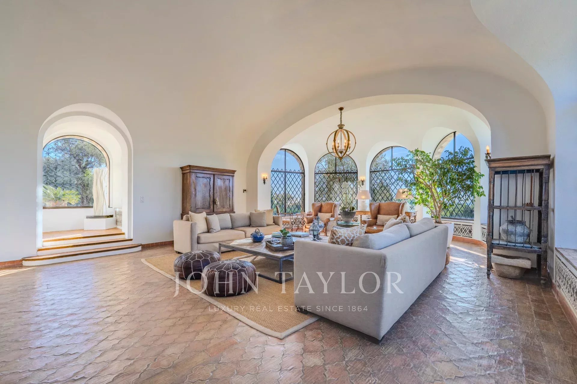 Al livello del giardino, la proprietà dispone di un ampio soggiorno, una sala da pranzo, una cucina completamente attrezzata con sala da pranzo adiacente, un ampio cortile che conduce all'ingresso, uno studio, una sala TV, una camera da letto principale (letto da 180 cm) (1) che si apre su un ampio balcone con vista sulla baia di Cannes, con bagno privato.