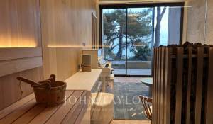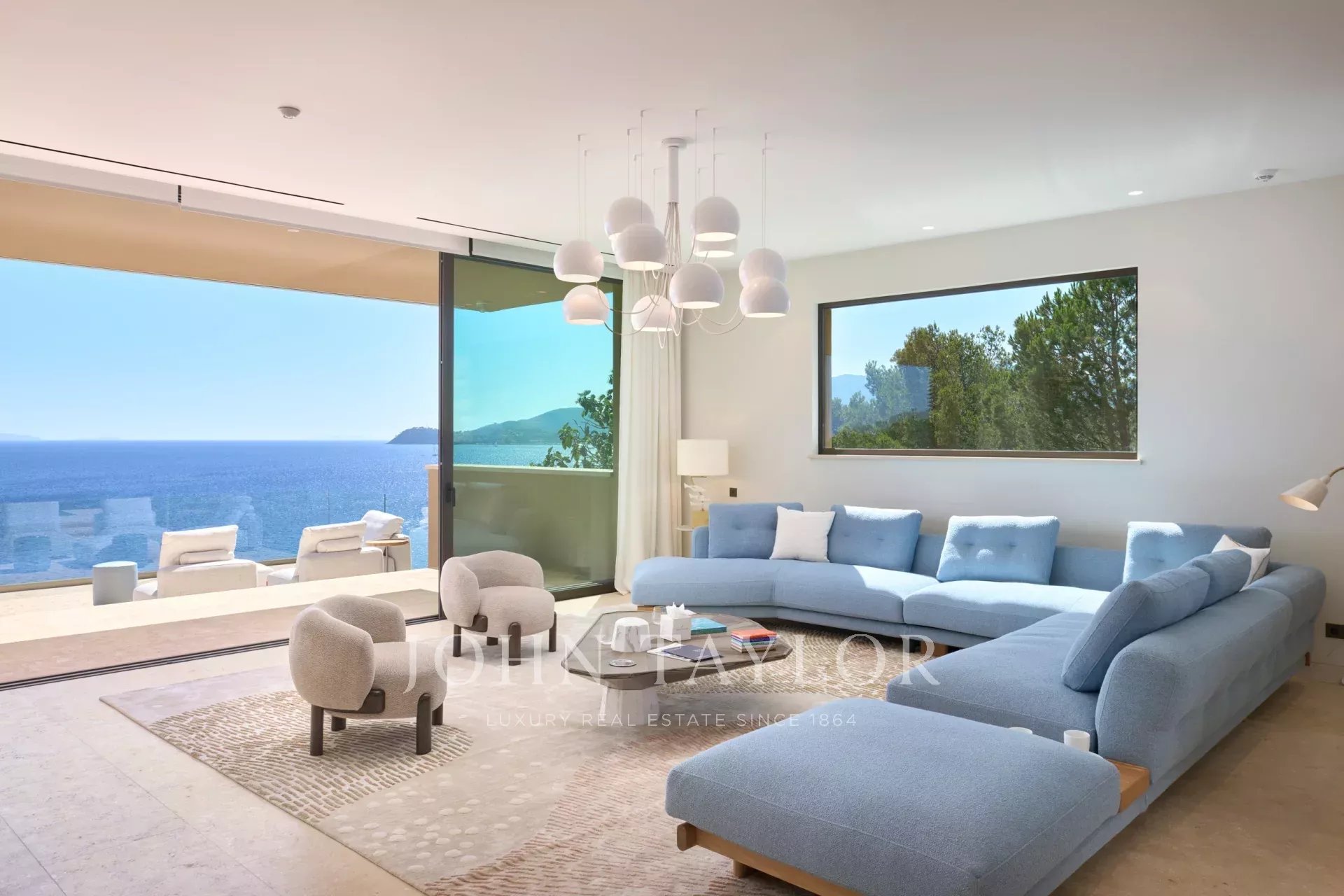 - Salone che si apre su ampie vetrate: uno spazio abitativo luminoso e arioso che si fonde armoniosamente con l'esterno, offrendo una spettacolare vista sul mare.