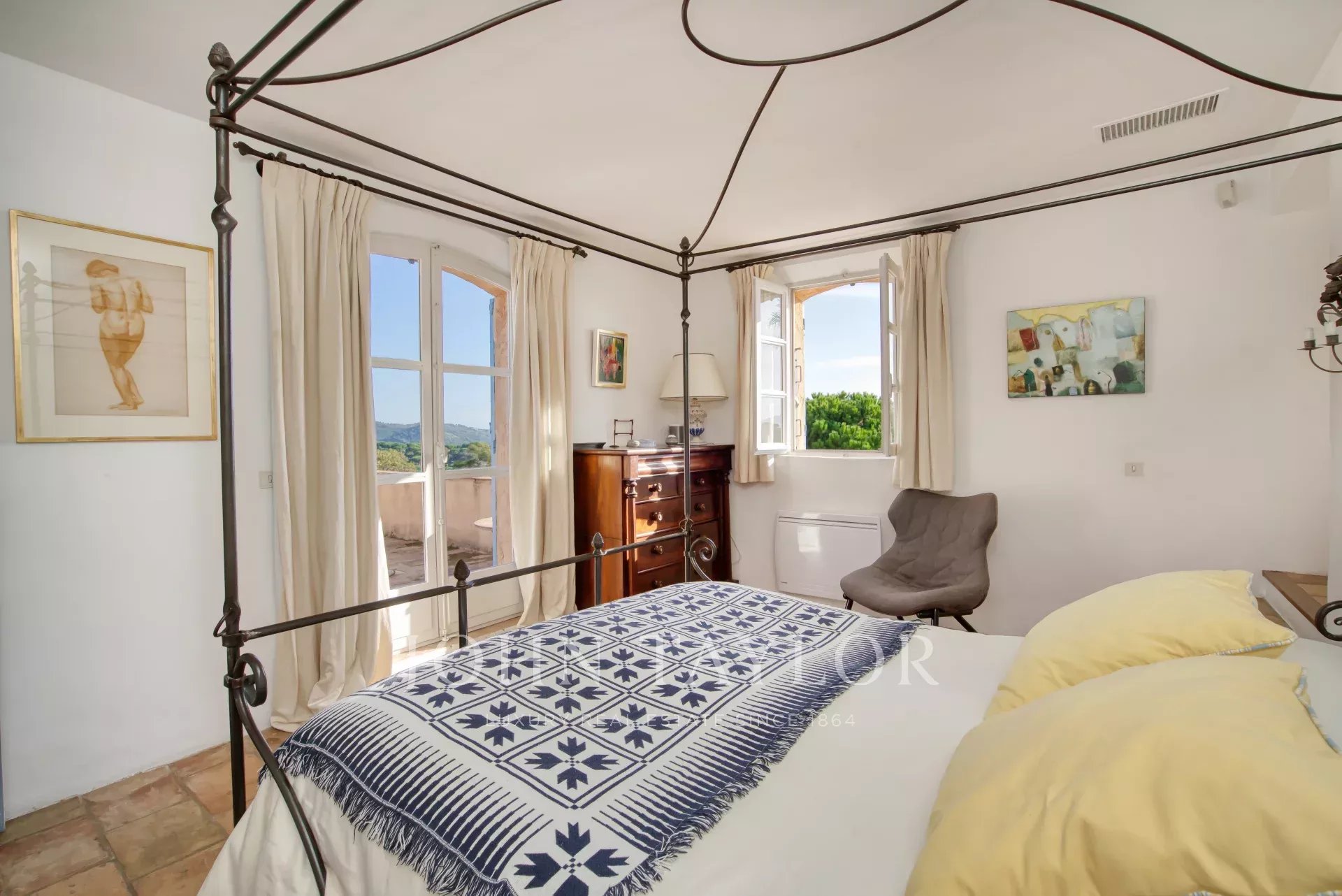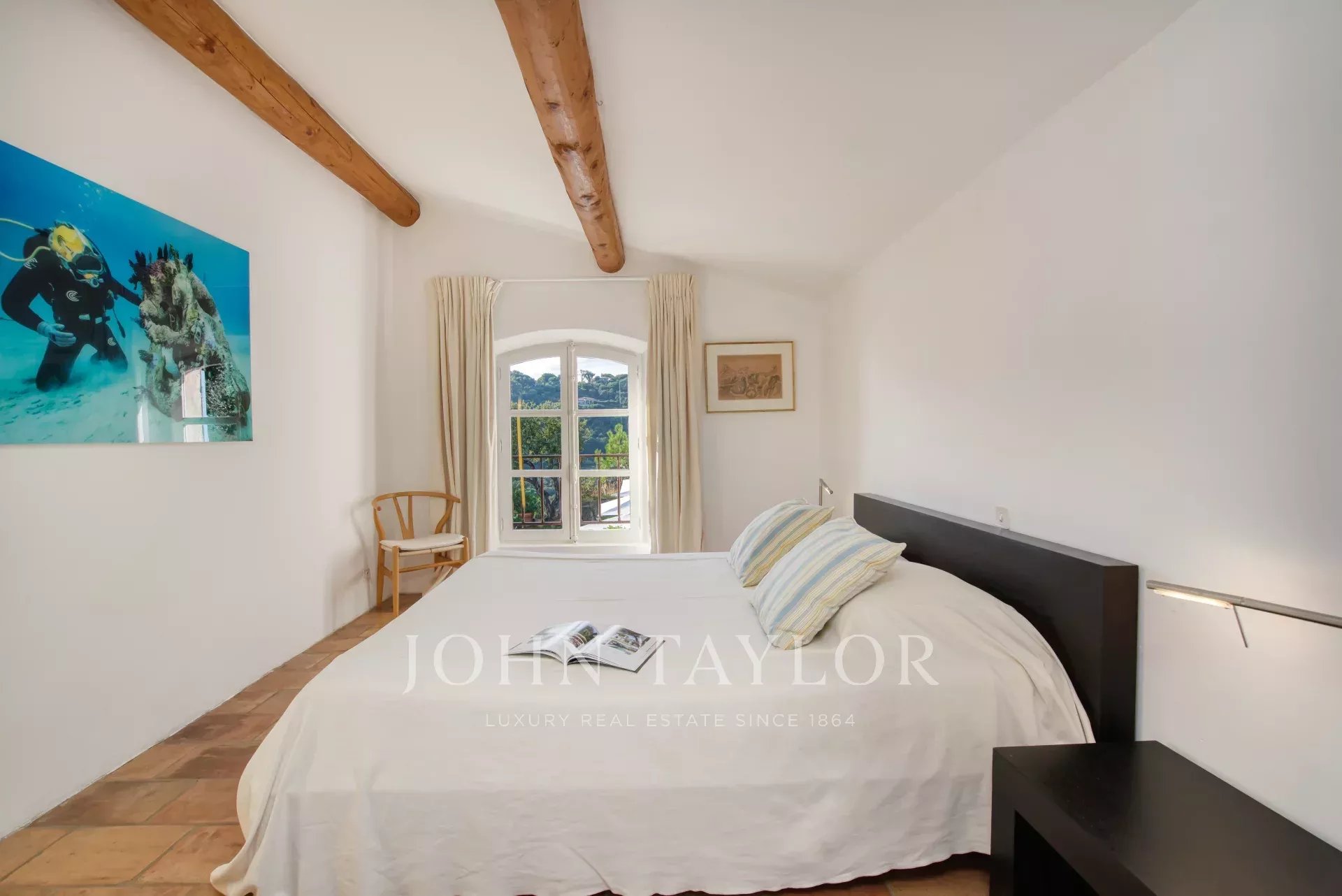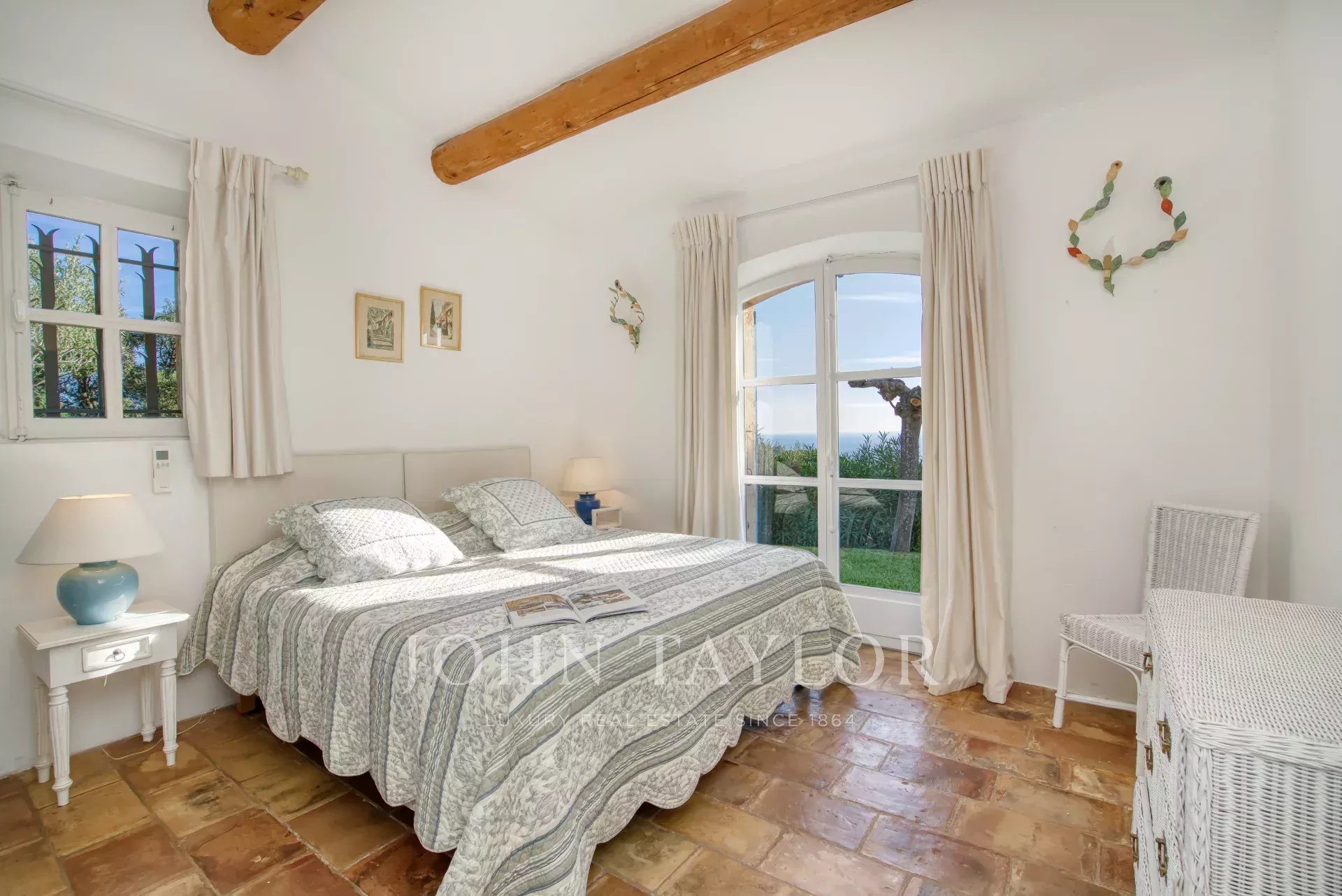 Al piano superiore, la camera da letto principale dispone di un'ampia terrazza con splendida vista sul mare, un letto king-size, un bagno privato e uno spogliatoio. Sono disponibili anche una camera per bambini comunicante e un'altra camera matrimoniale con bagno privato con doccia.