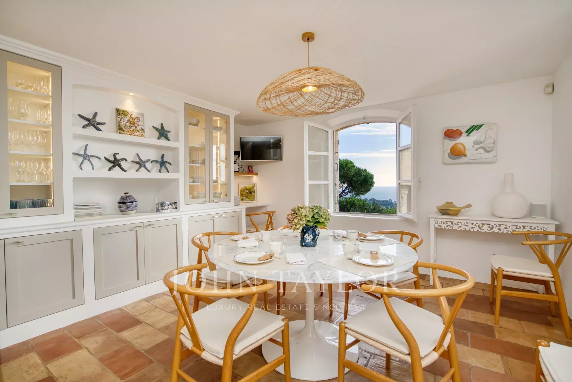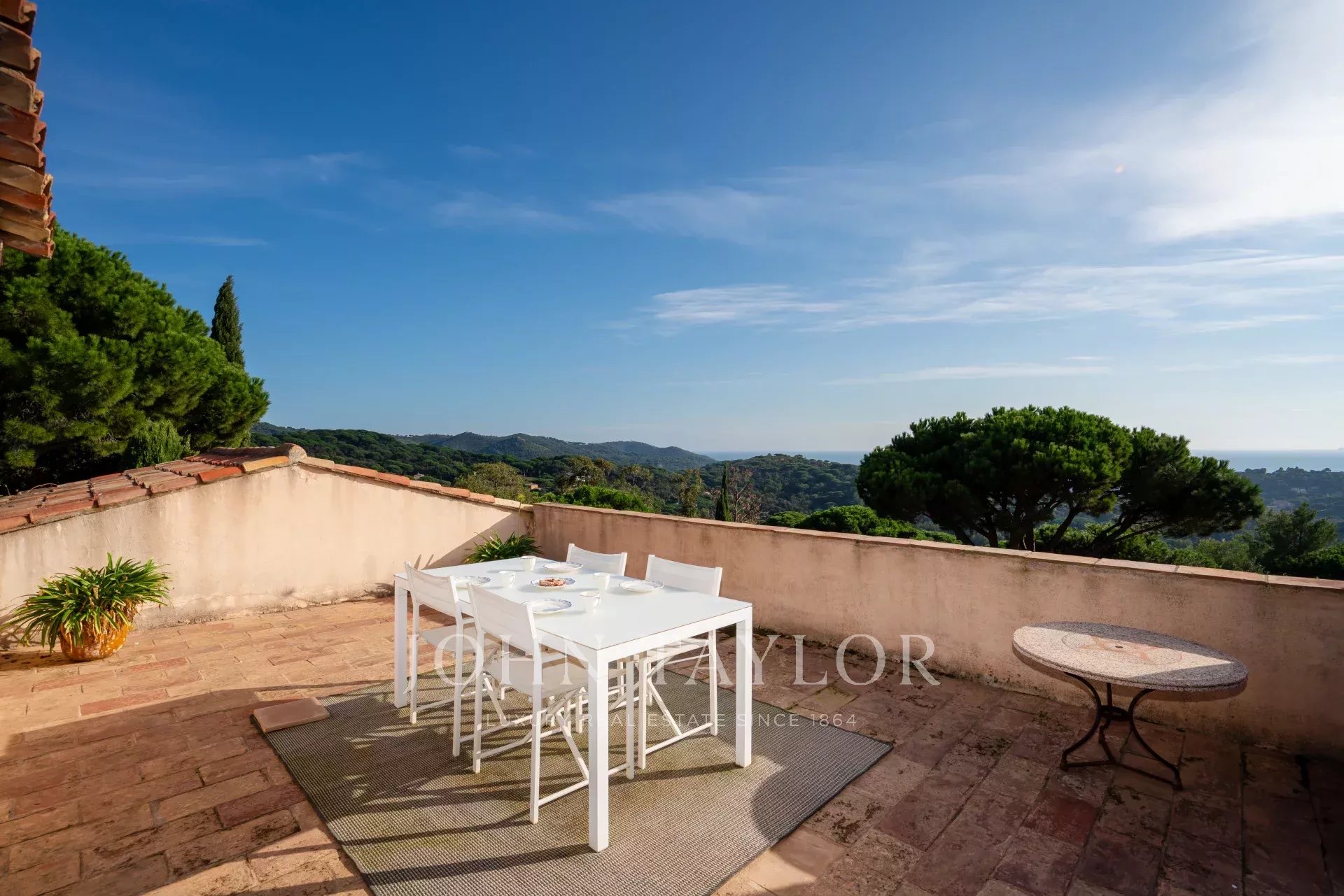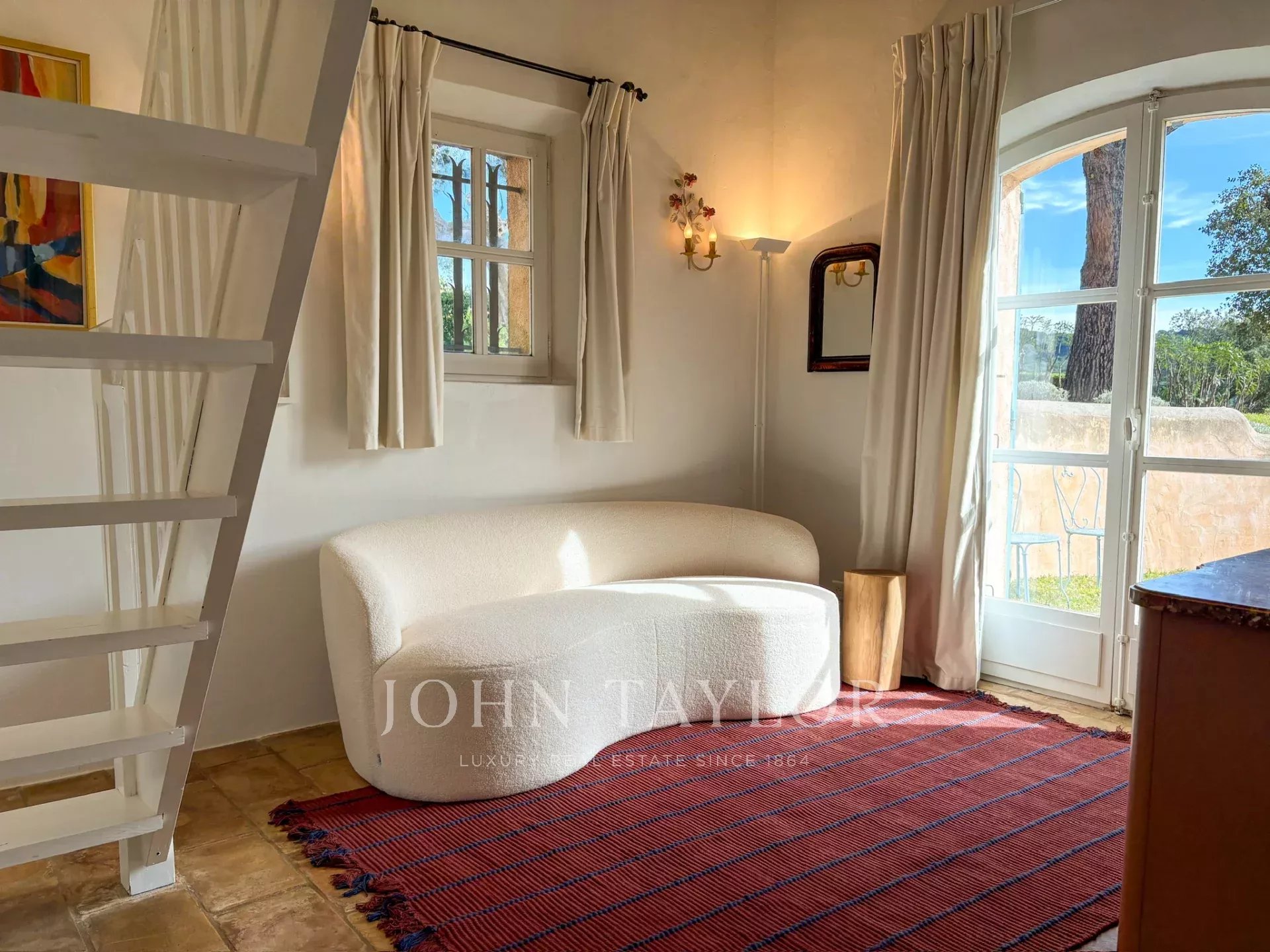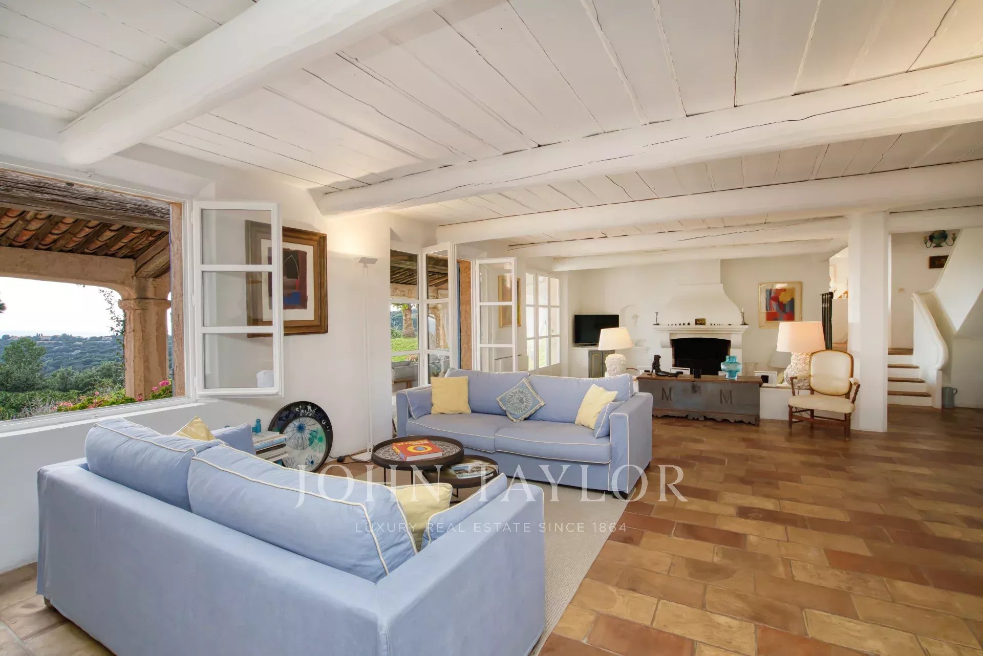 Al piano terra si trova un ampio e luminoso soggiorno con camino che si apre su una terrazza coperta di fronte al mare con un salotto all'aperto. Ci sono anche quattro confortevoli camere da letto, ognuna con bagno o doccia, aria condizionata e apertura sul giardino o sulla terrazza.