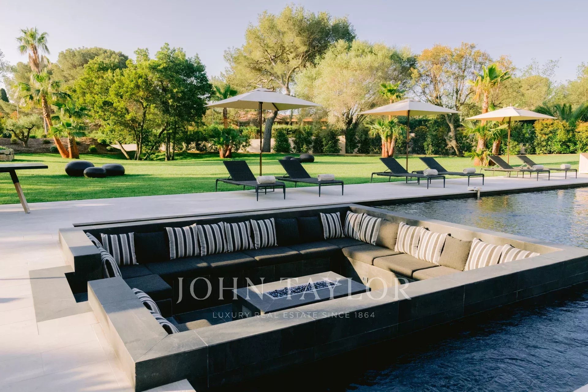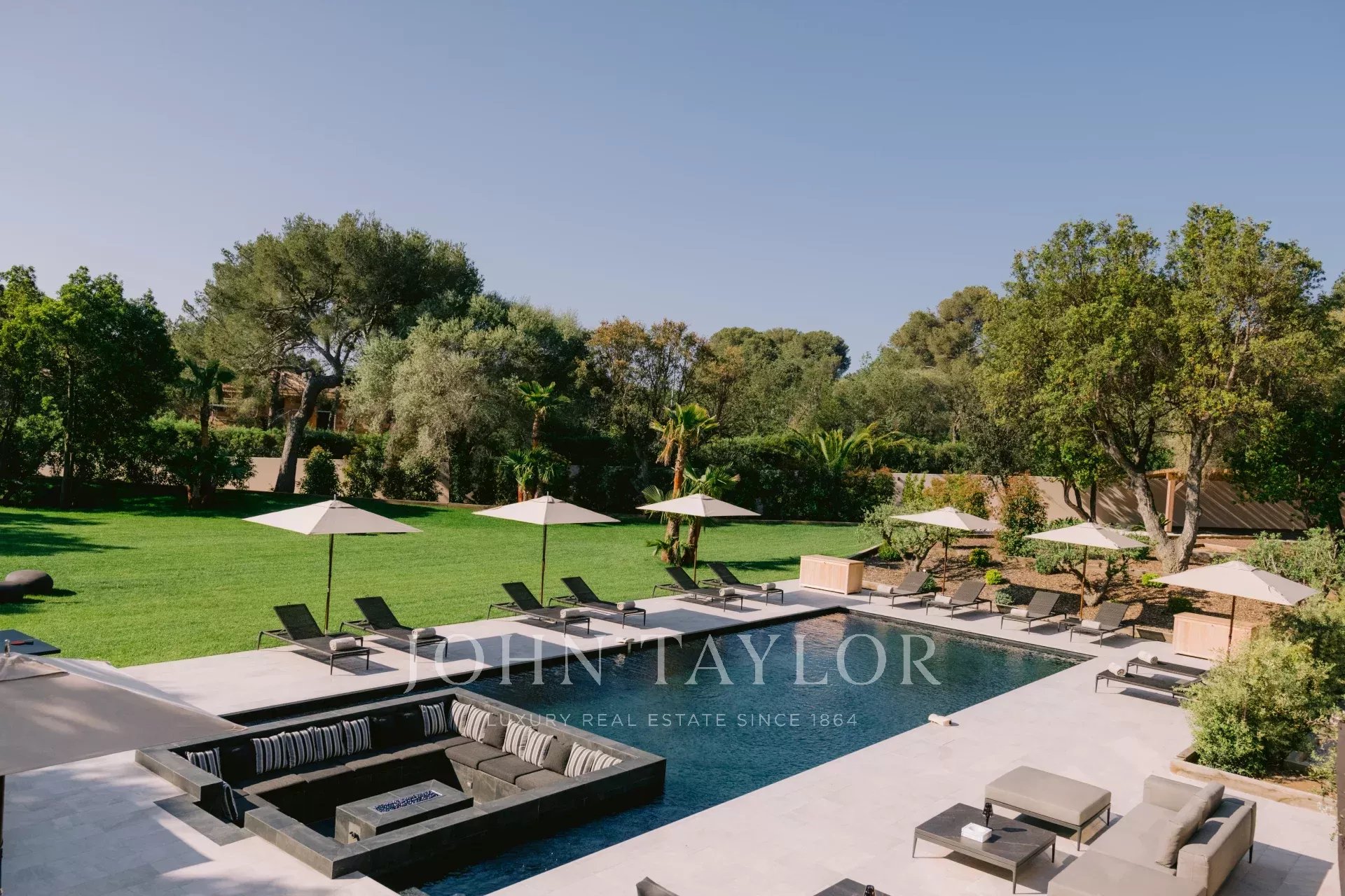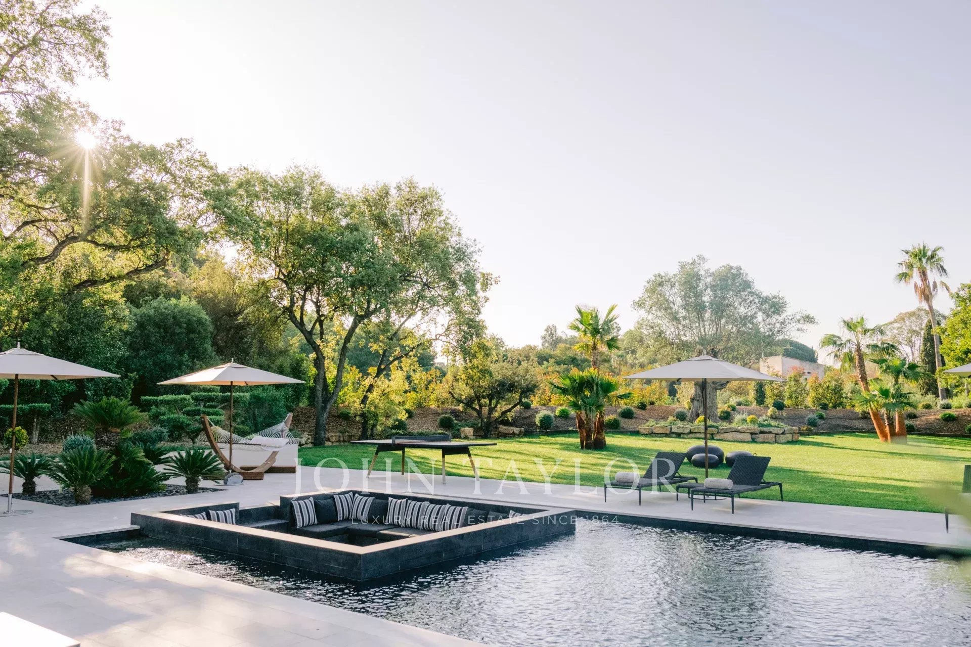 L'esterno è un'oasi di pace, con una piscina riscaldata di 16x6 metri, una pool house con cucina estiva e barbecue, e 10 ettari di giardini paesaggistici dove regna la tranquillità. Per gli amanti dell'aria aperta, c'è anche un campo da bocce.
