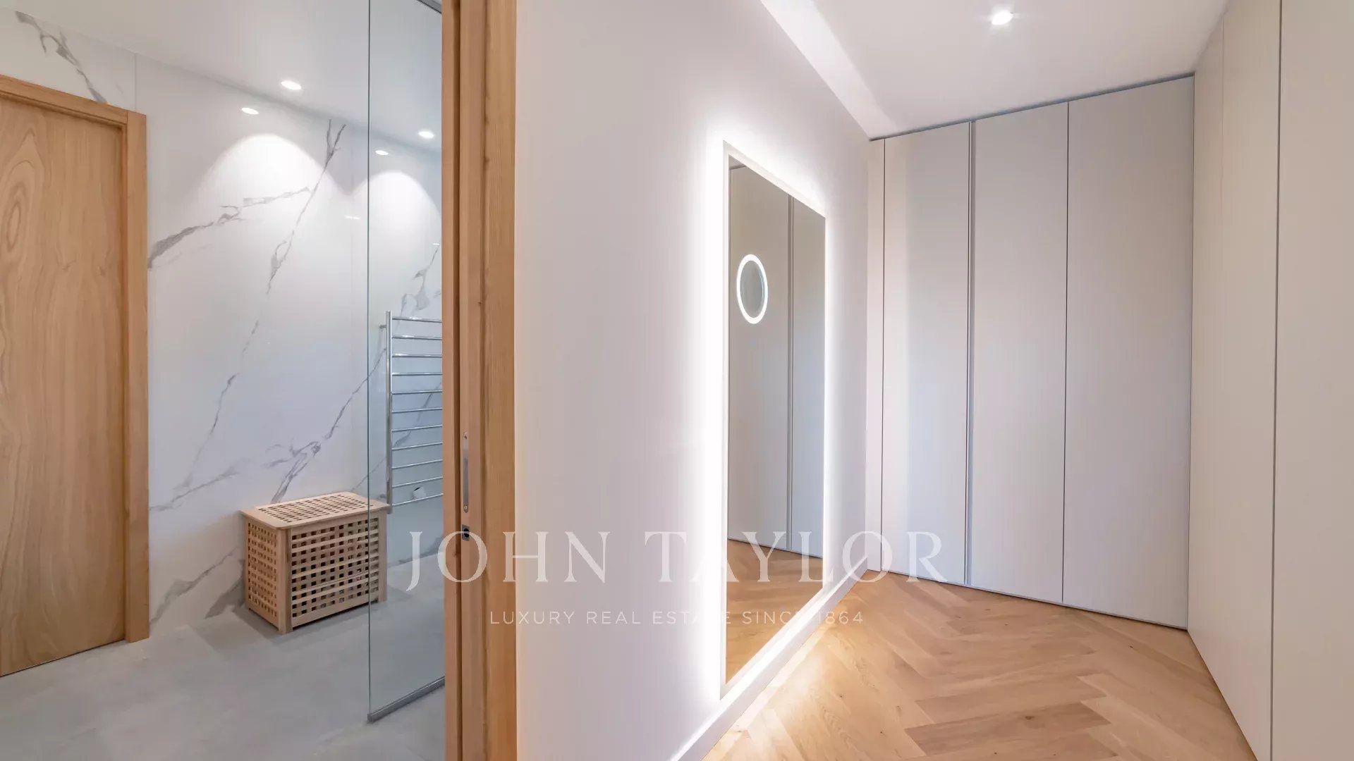 Fin dall'ingresso, sarete sedotti dalla sua atmosfera elegante e sofisticata. L'ampio salone, inondato di luce naturale grazie alle grandi finestre a golfo, si apre armoniosamente sull'esterno. Il design elegante, gli arredi contemporanei e le opere d'arte accuratamente selezionate creano un ambiente chic e accogliente.