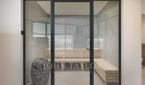 L'esterno è caratterizzato da una piscina a sfioro, campo da padel, barbecue a gas, terrazze e aree relax.