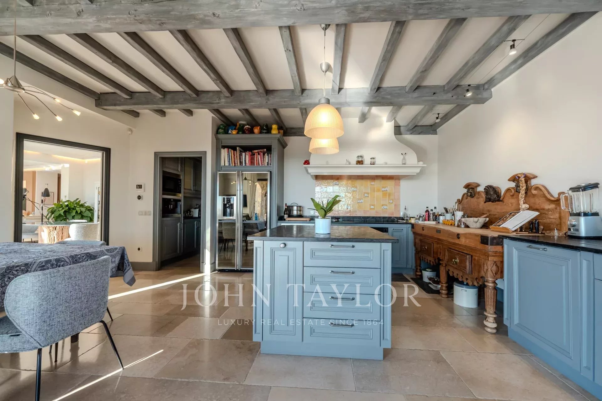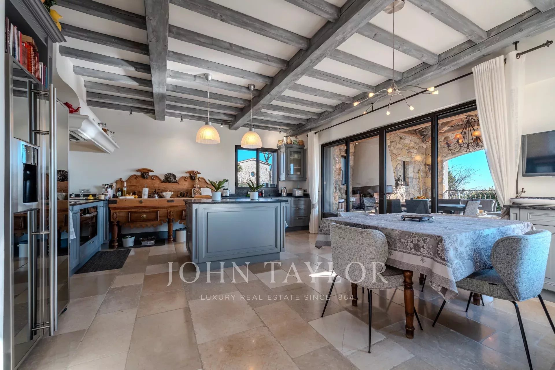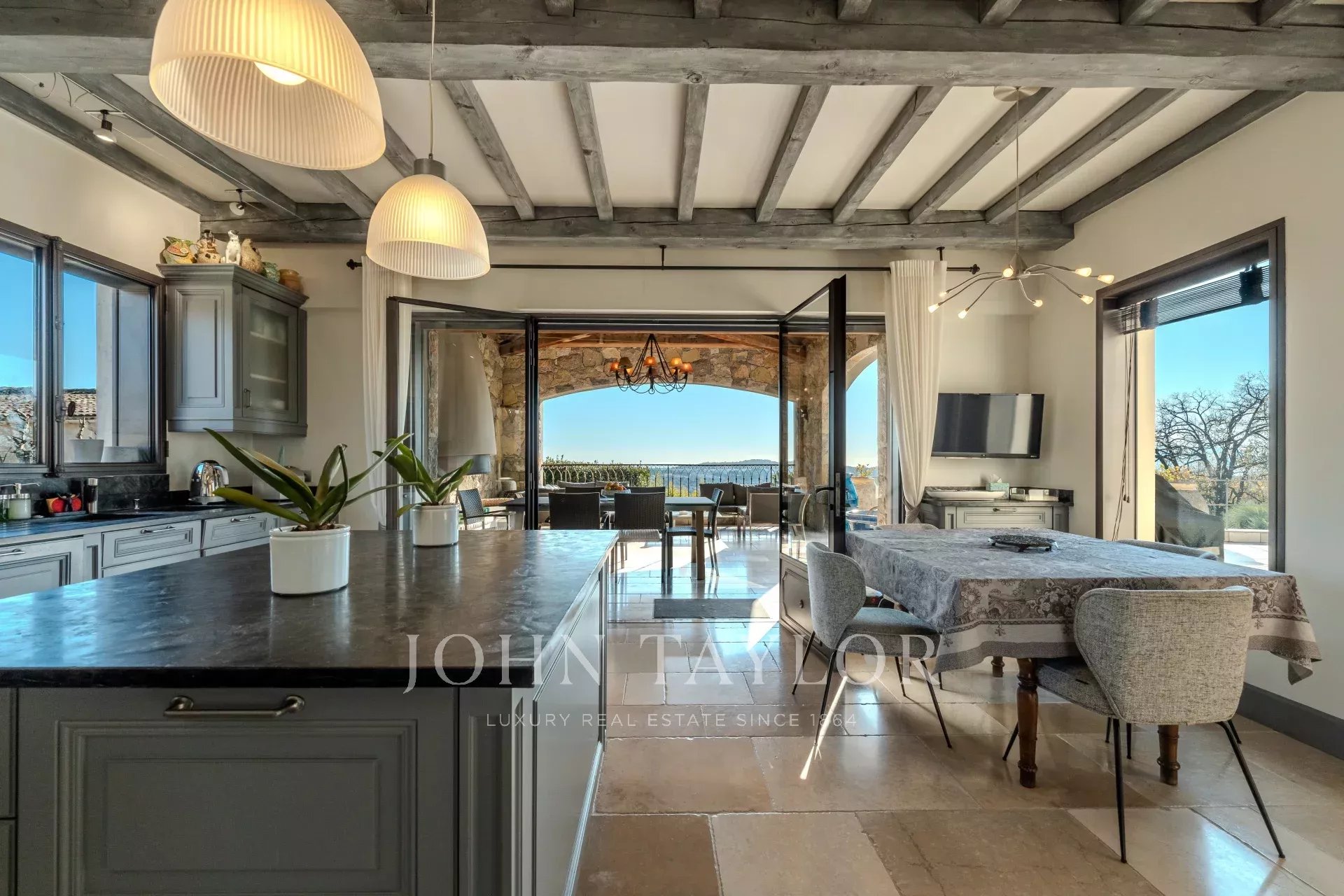 All'arrivo, sarete accolti da un elegante ingresso con bagno per gli ospiti. Il vasto e luminoso soggiorno, ampliato da una sala da pranzo, si apre su una terrazza soleggiata. La cucina semi-professionale, completamente attrezzata, si apre su una terrazza coperta con barbecue e zona pranzo estiva. Un ripostiglio, una lavanderia e una cantina completano lo spazio.