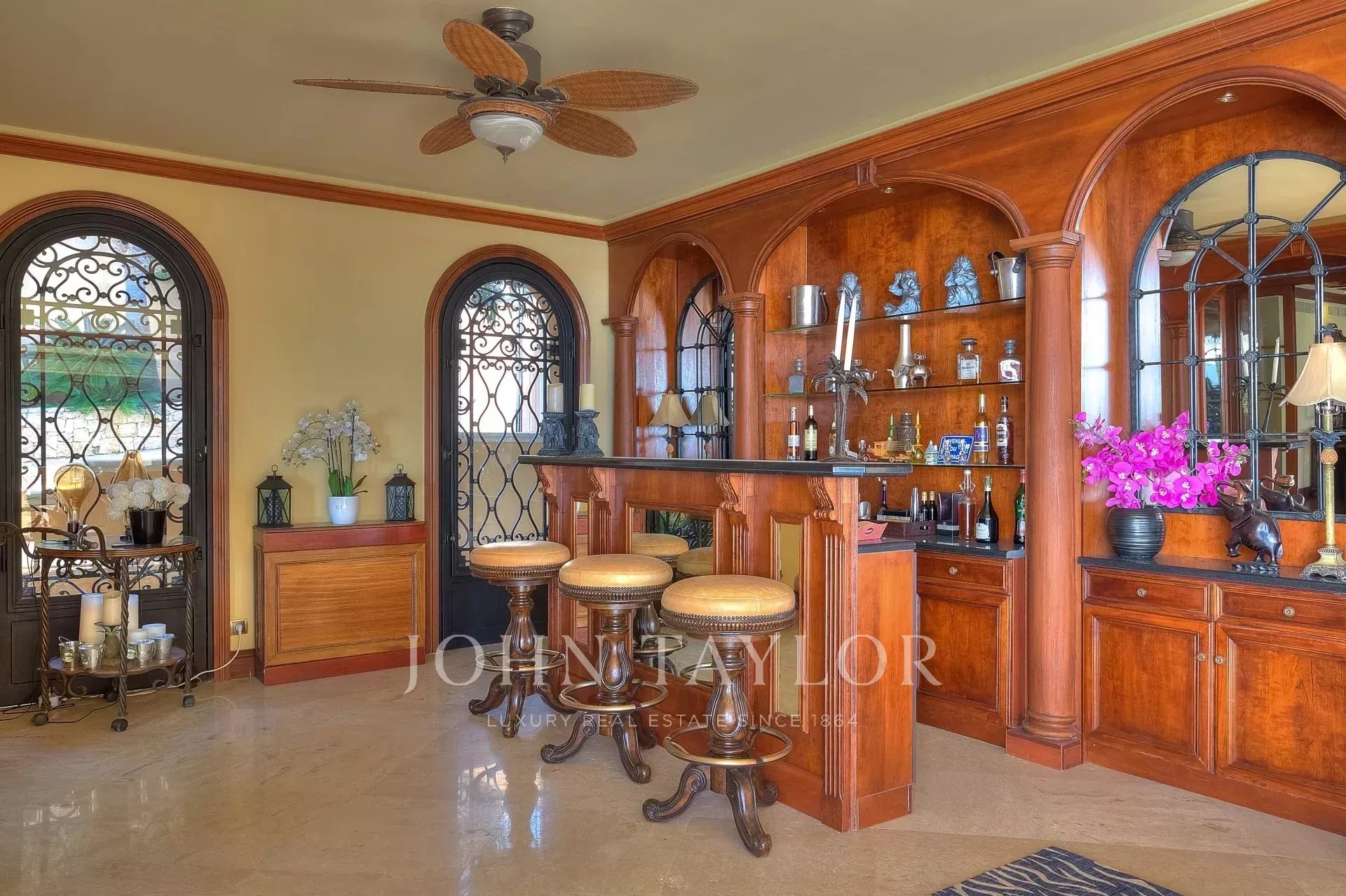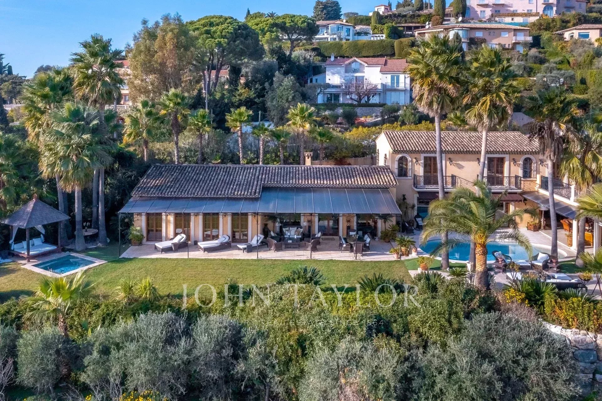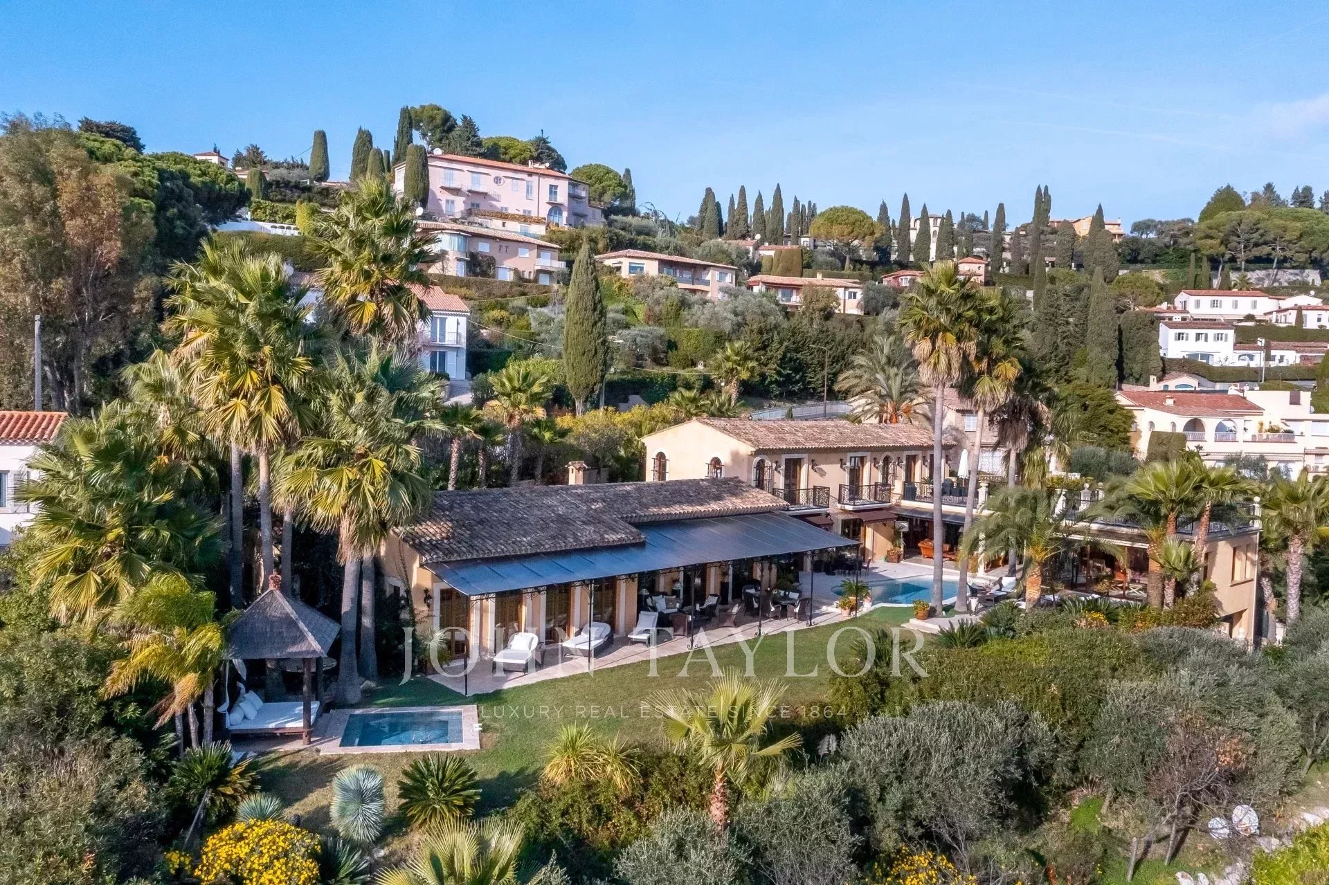 A pochi passi dall'antico villaggio di Mougins, questa magnifica proprietà vanta una vista panoramica sulla baia di Cannes, sulle isole Lérins e sulle montagne dell'Esterel.