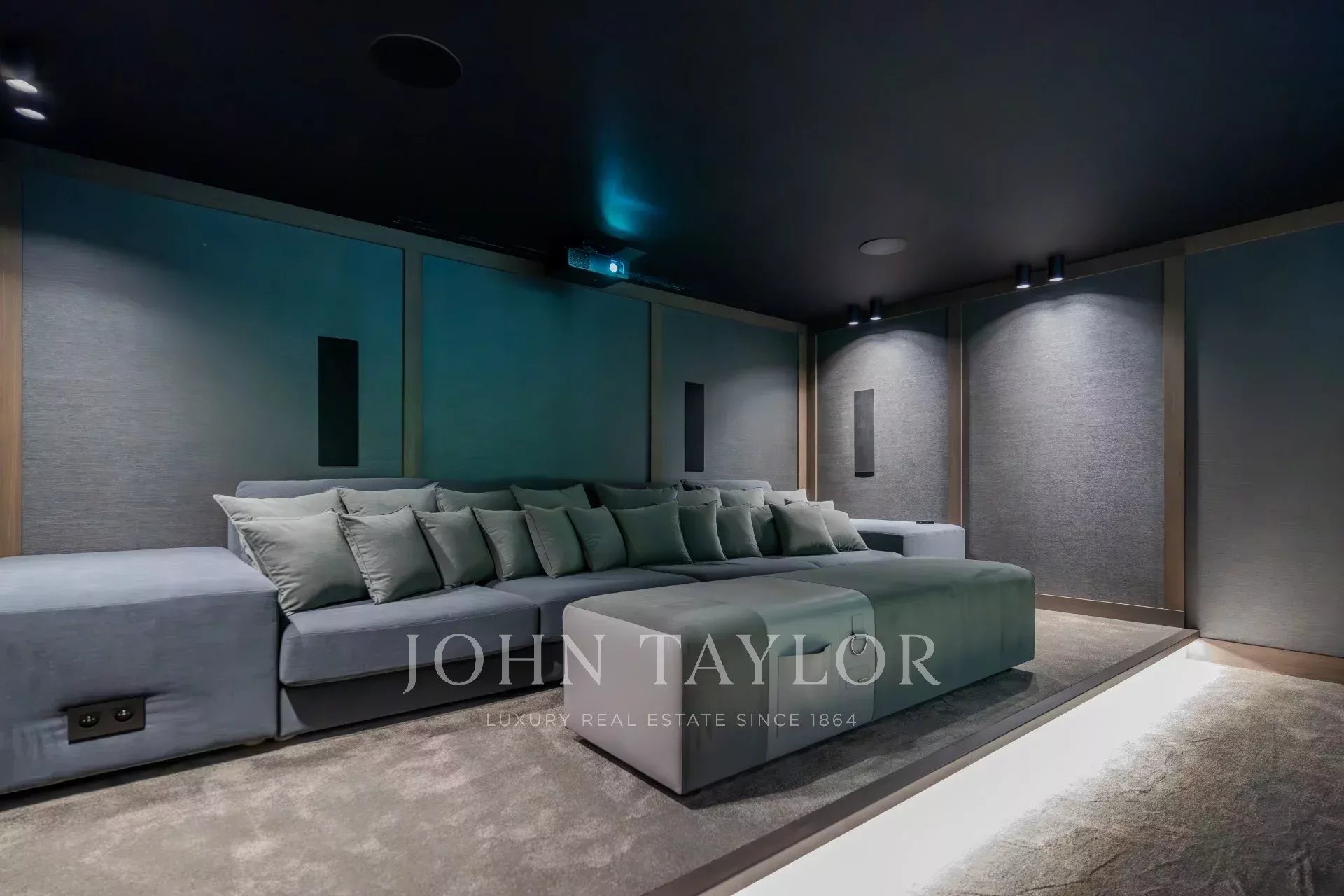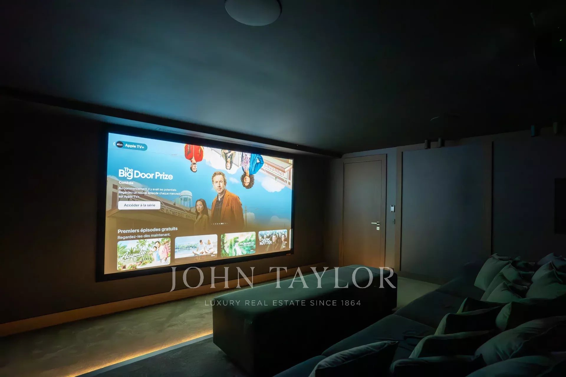 Sala cinema con sedute ultraconfortevoli e attrezzature audiovisive all'avanguardia per un'esperienza cinematografica coinvolgente.