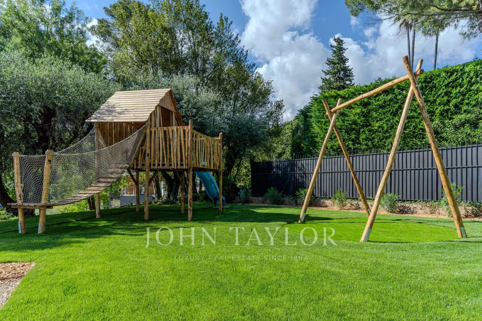 Immersa in una tranquilla e sicura zona residenziale di Mougins, questa splendida villa con 5 camere da letto con bagno privato offre il perfetto mix di tranquillità e privacy. Questa villa con piscina a sfioro è situata in una posizione ideale a pochi passi dal villaggio, ma offre un rapido accesso a Cannes e alla Croisette, rendendola un luogo ideale per il relax e l'esplorazione.