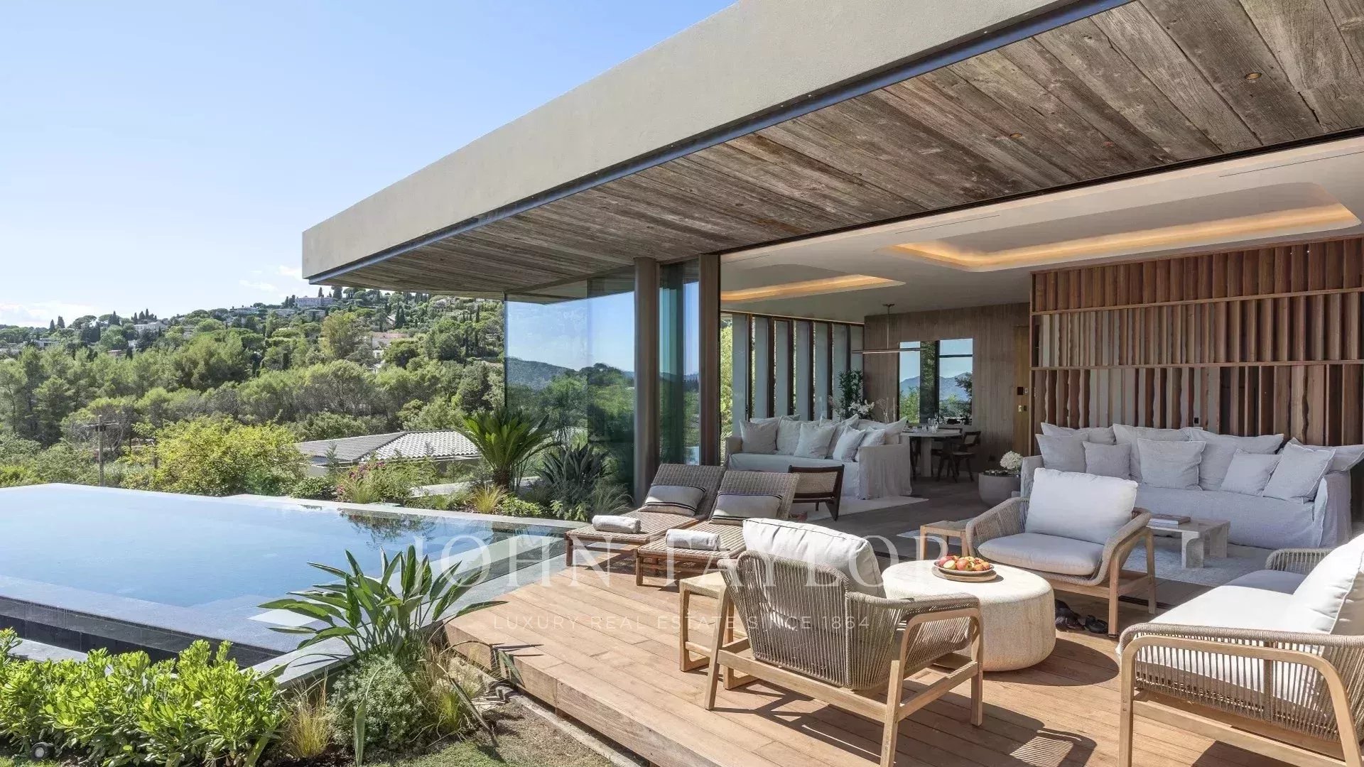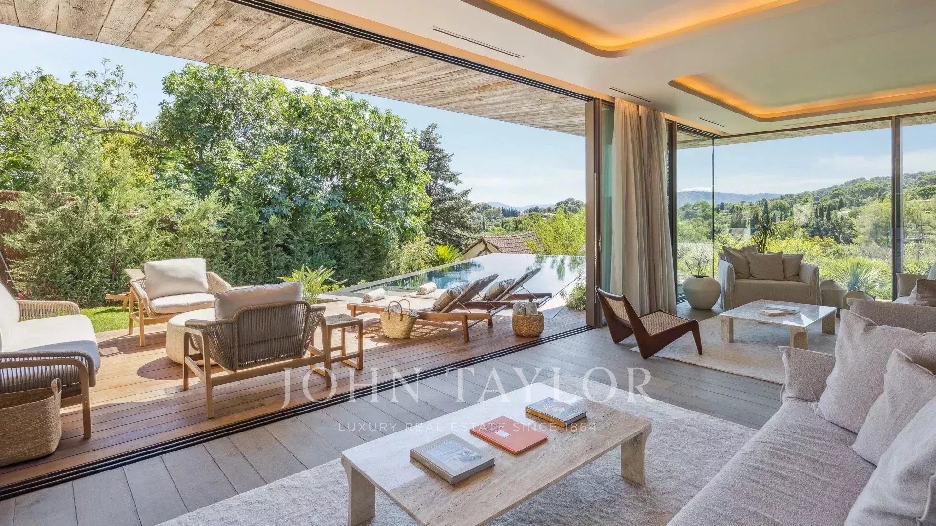 Una villa contemporanea di recente costruzione, idealmente situata in una posizione prestigiosa, a pochi passi dall'antico villaggio di Mougins e dal glamour di Cannes.