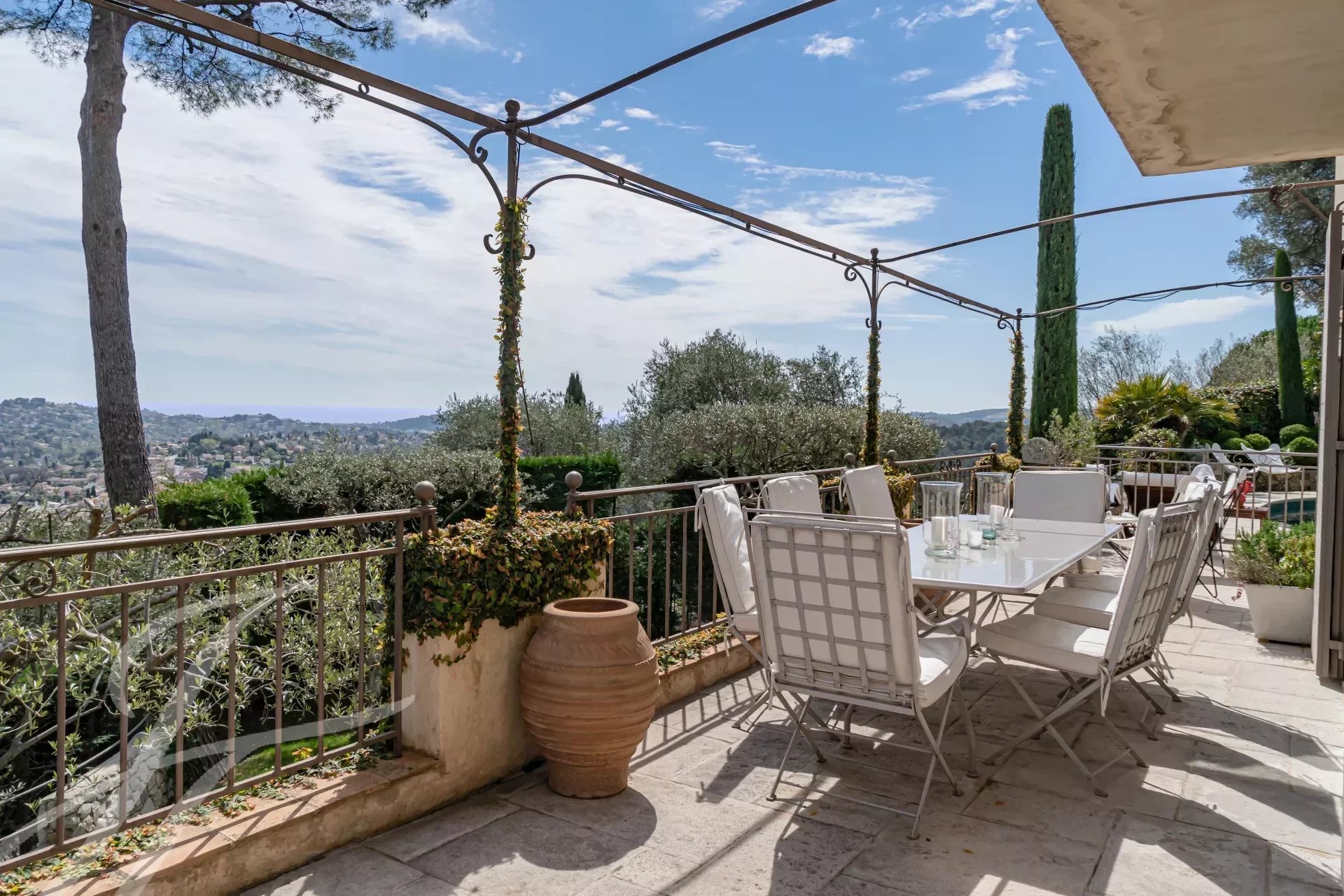 Questa graziosa casa gode di un ambiente rilassante con vista ininterrotta sul mare e sul villaggio di Saint-Paul de Vence.