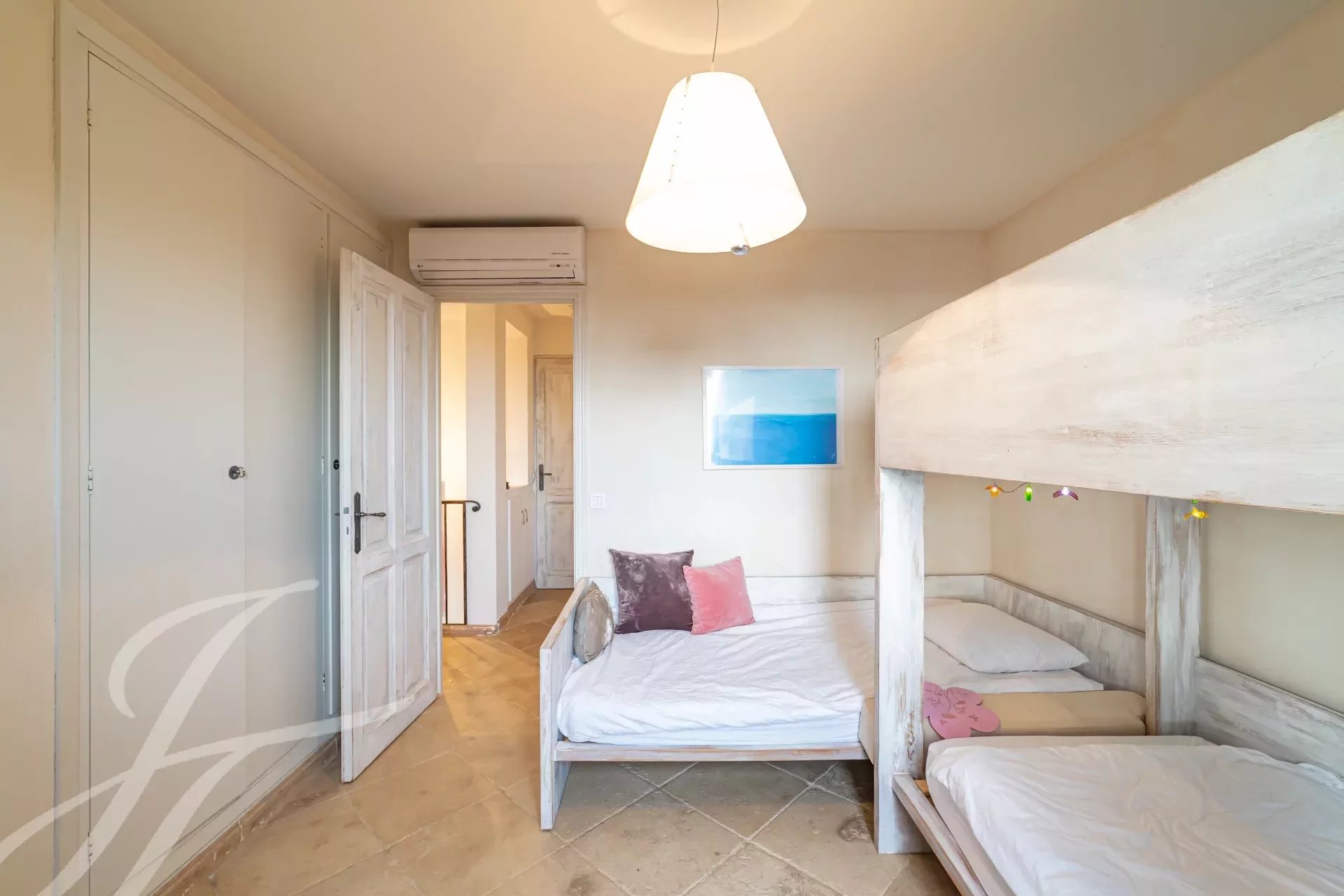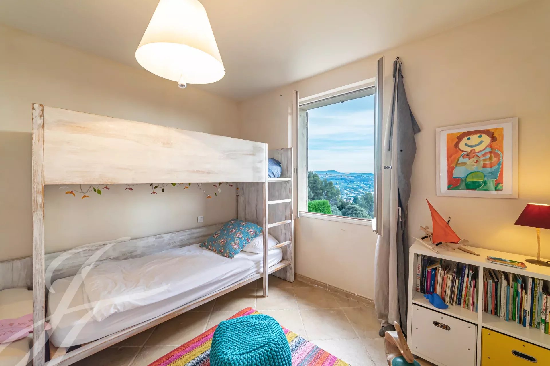 - Una camera per bambini con un letto a castello e un letto singolo.