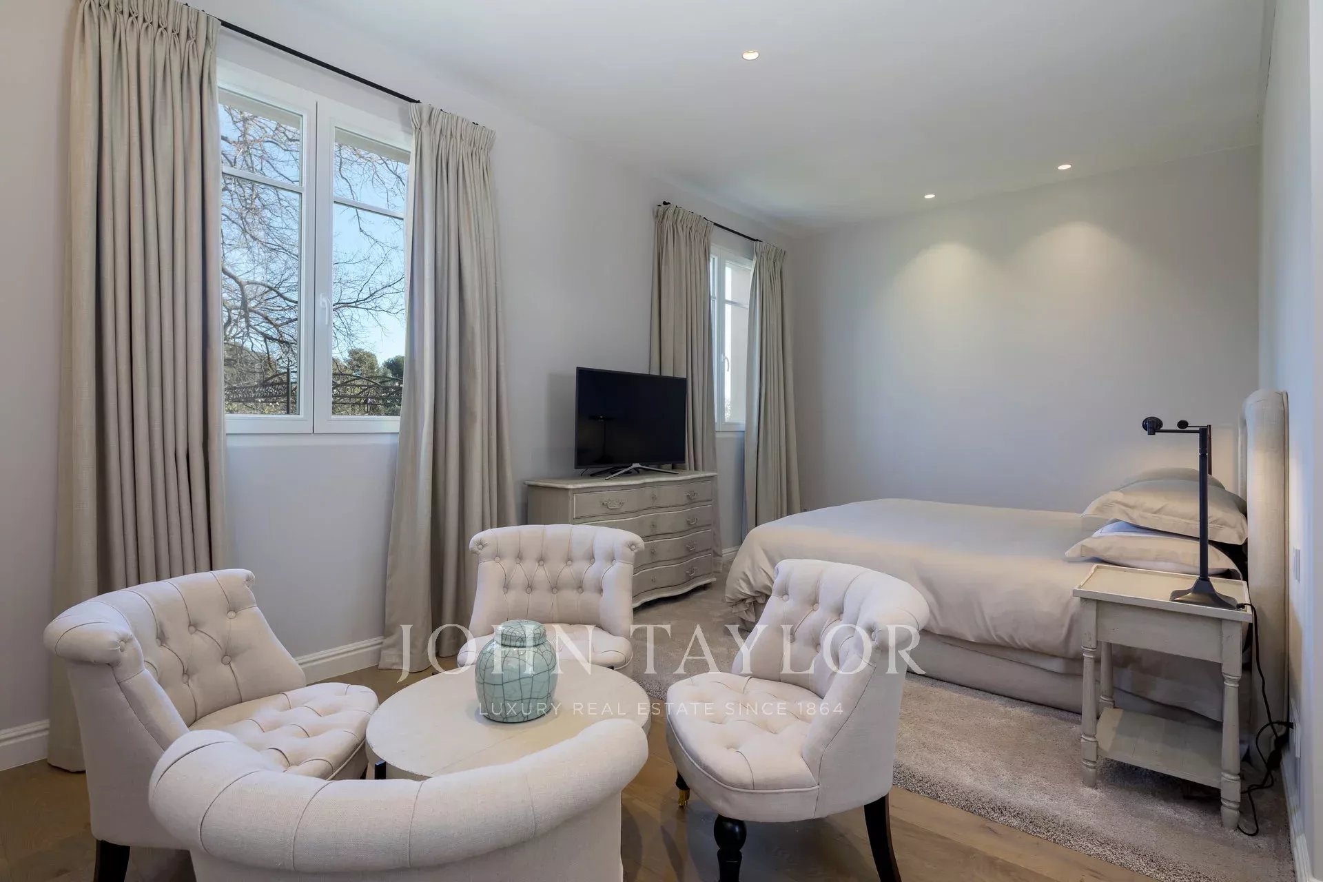 Al livello del giardino, un ampio ingresso, un doppio soggiorno con camino, una biblioteca con camino, una vasta sala da pranzo, una confortevole sala TV, una cucina completamente attrezzata e una grande piscina coperta.