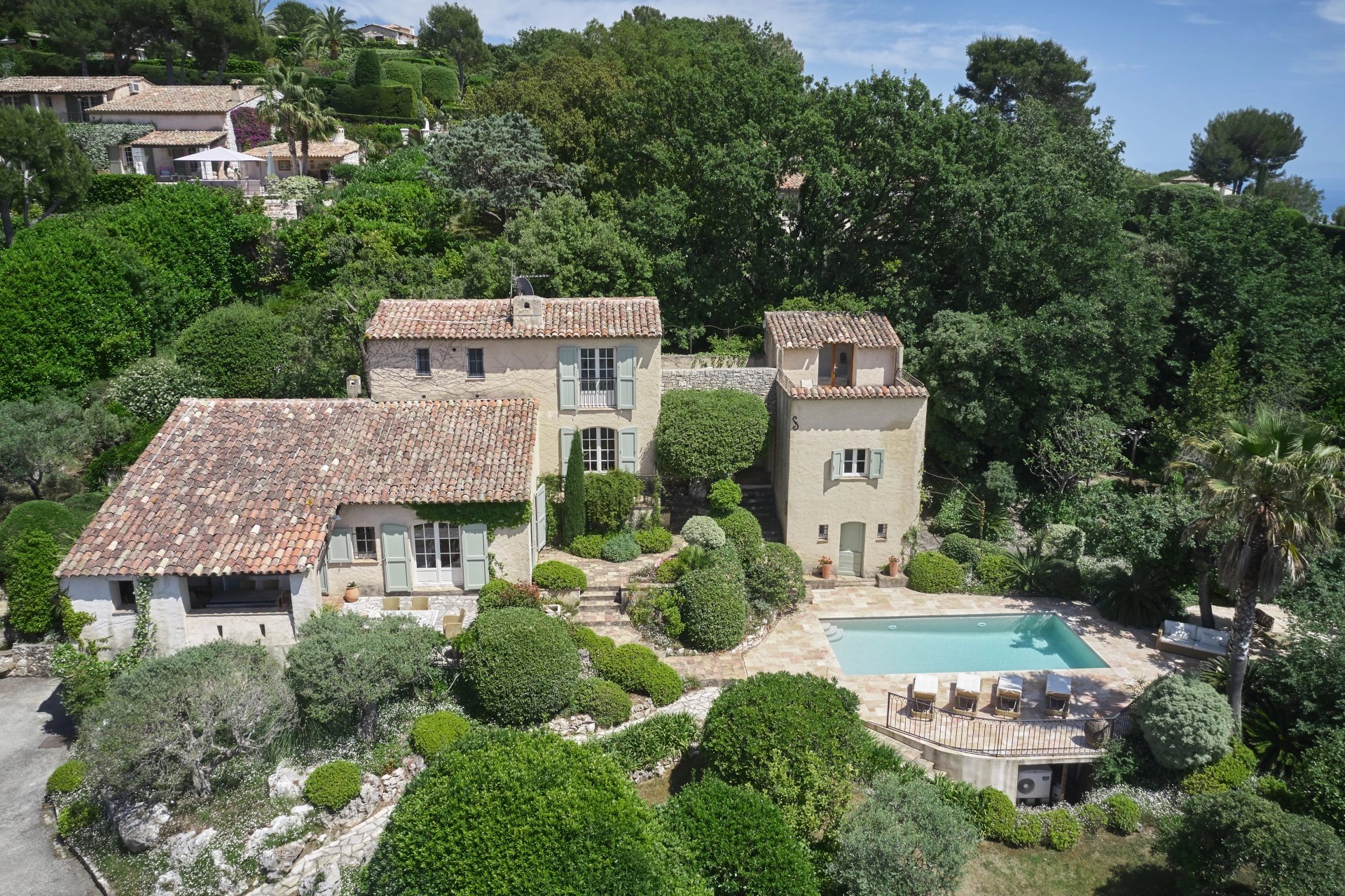 Situata nella famosa tenuta di Hauts de Saint Paul, con una vista spettacolare sui favolosi tramonti sul villaggio di Tourrettes sur Loup, questa affascinante casa colonica provenzale di 195 m² dispone di 2.650 m² di giardini paesaggistici con piscina riscaldata, terrazza e campo da bocce illuminato.