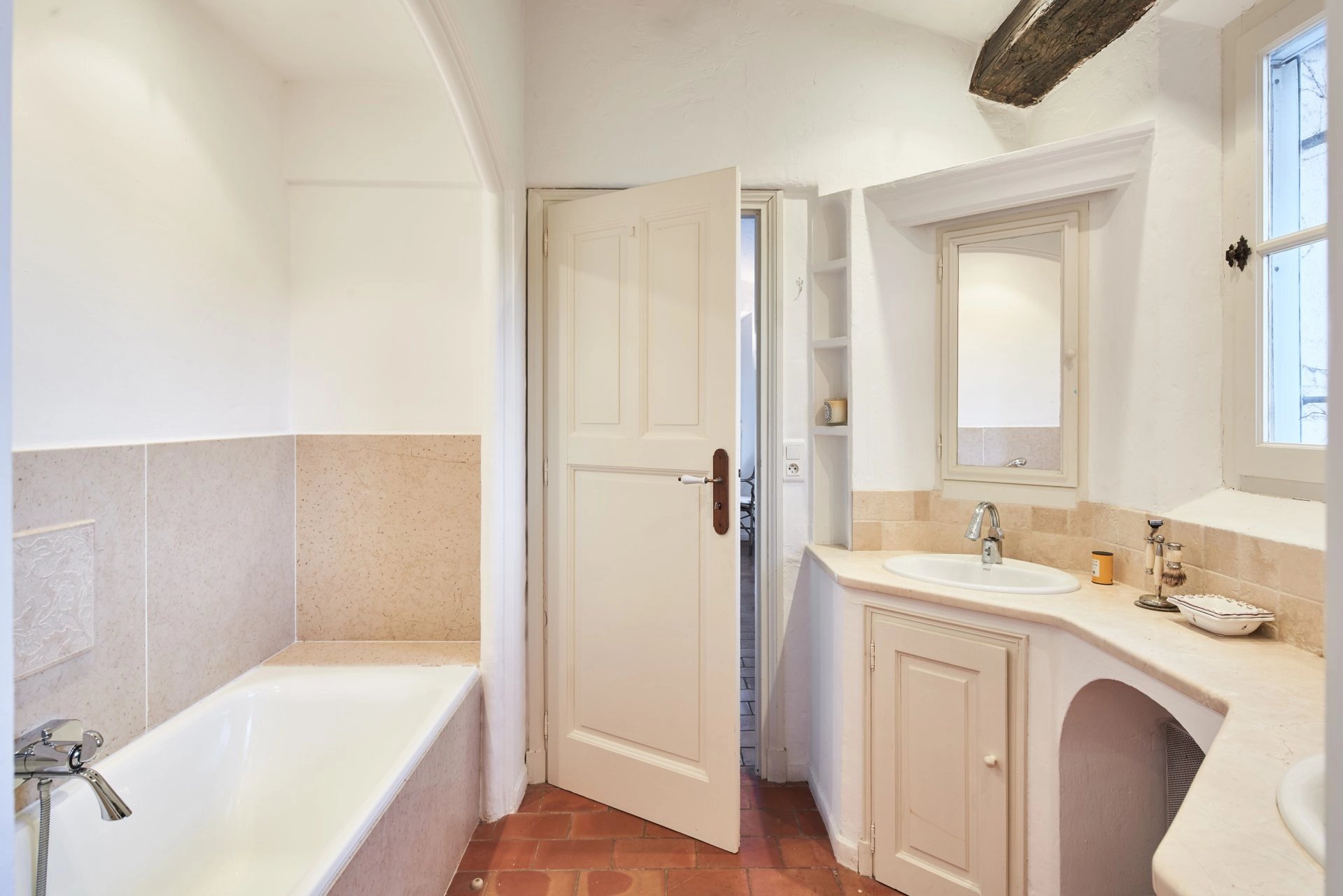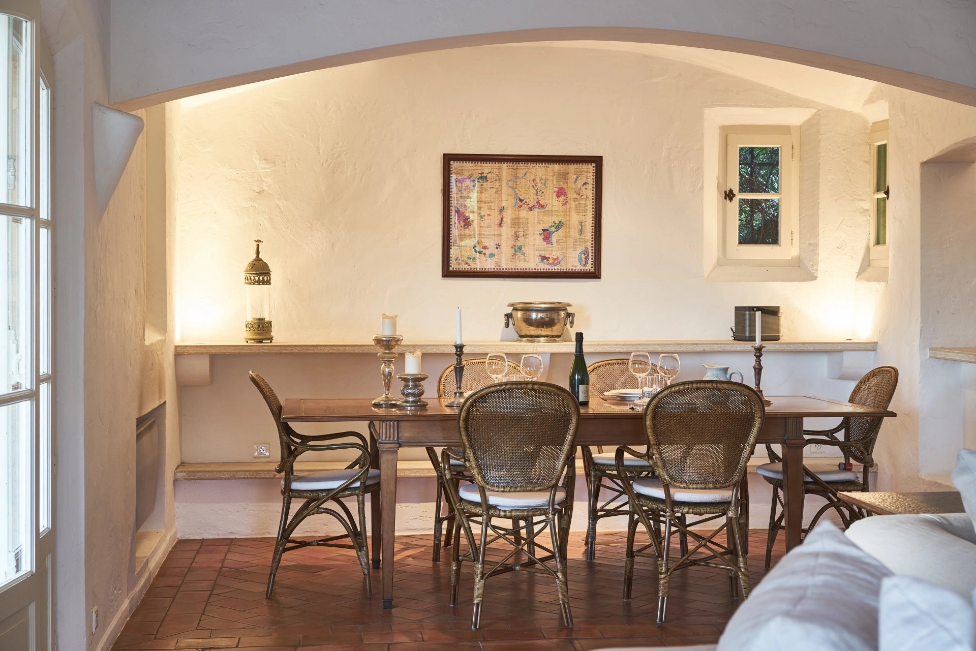 Vi accoglie con un bel cortile d'onore, un'antica porta d'ingresso, un ingresso che si apre direttamente su un ampio e luminoso soggiorno con camino, sala da pranzo, cucina attrezzata che si apre sulla terrazza, mezzanino/studio/biblioteca.