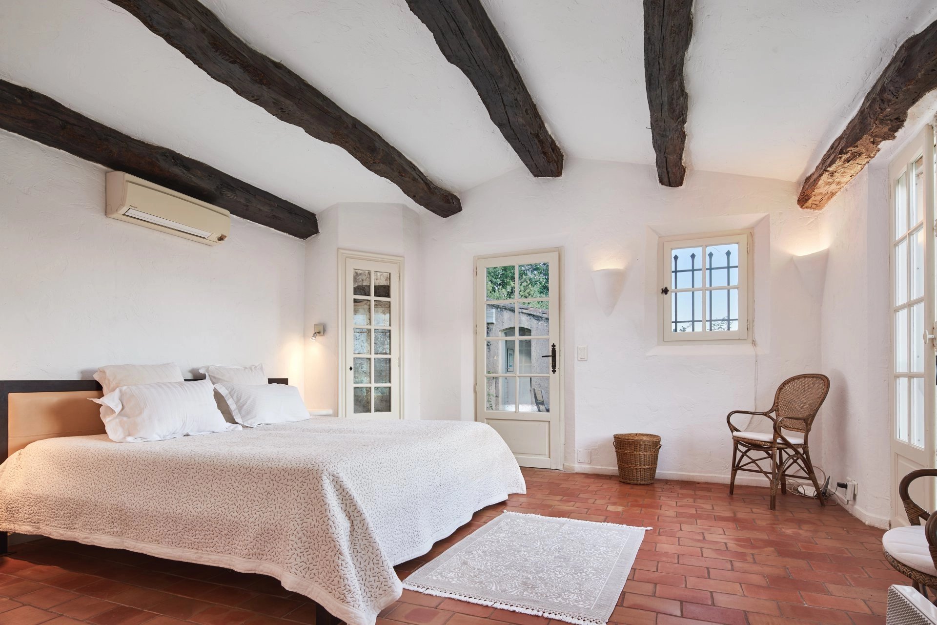 La casa principale dispone di due camere da letto: una suite padronale al primo piano, con letto king size, bagno con doccia e vasca e solarium privato; e una camera per gli ospiti, accessibile salendo alcuni gradini, con bagno con doccia e accesso diretto alla piscina.