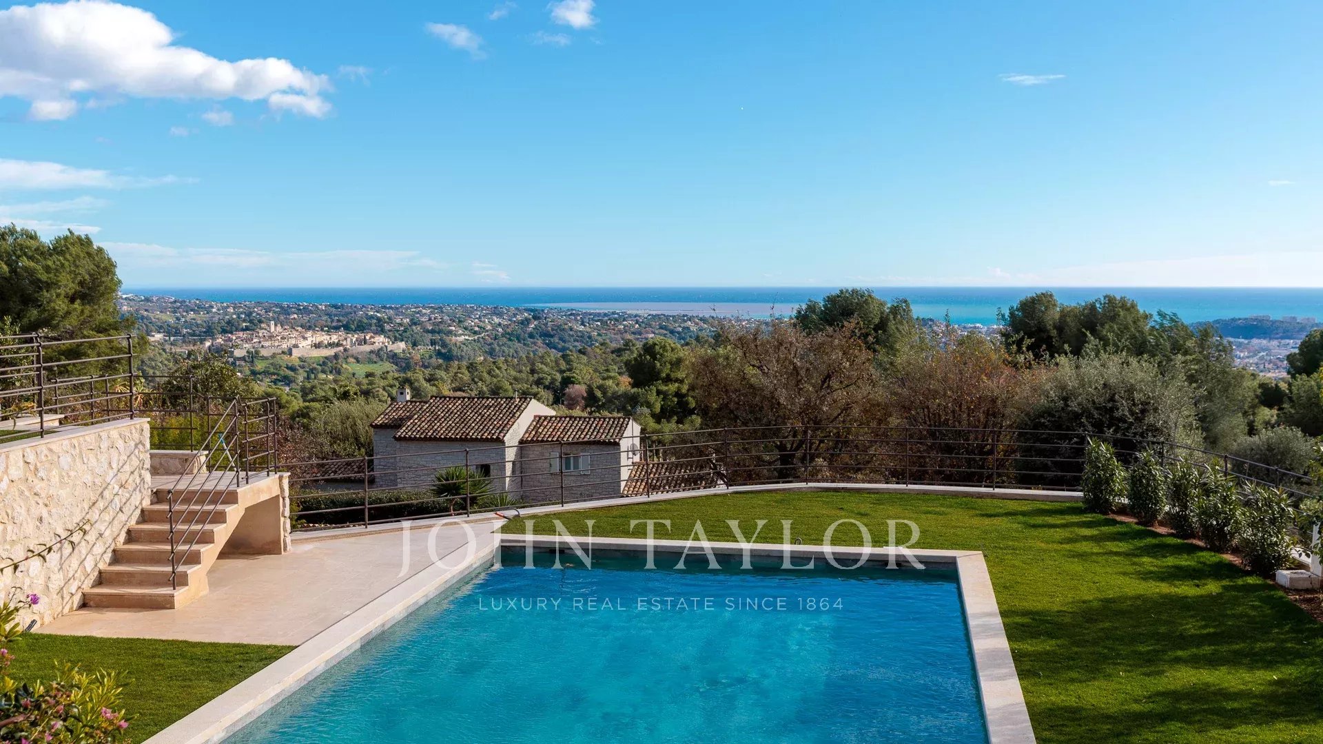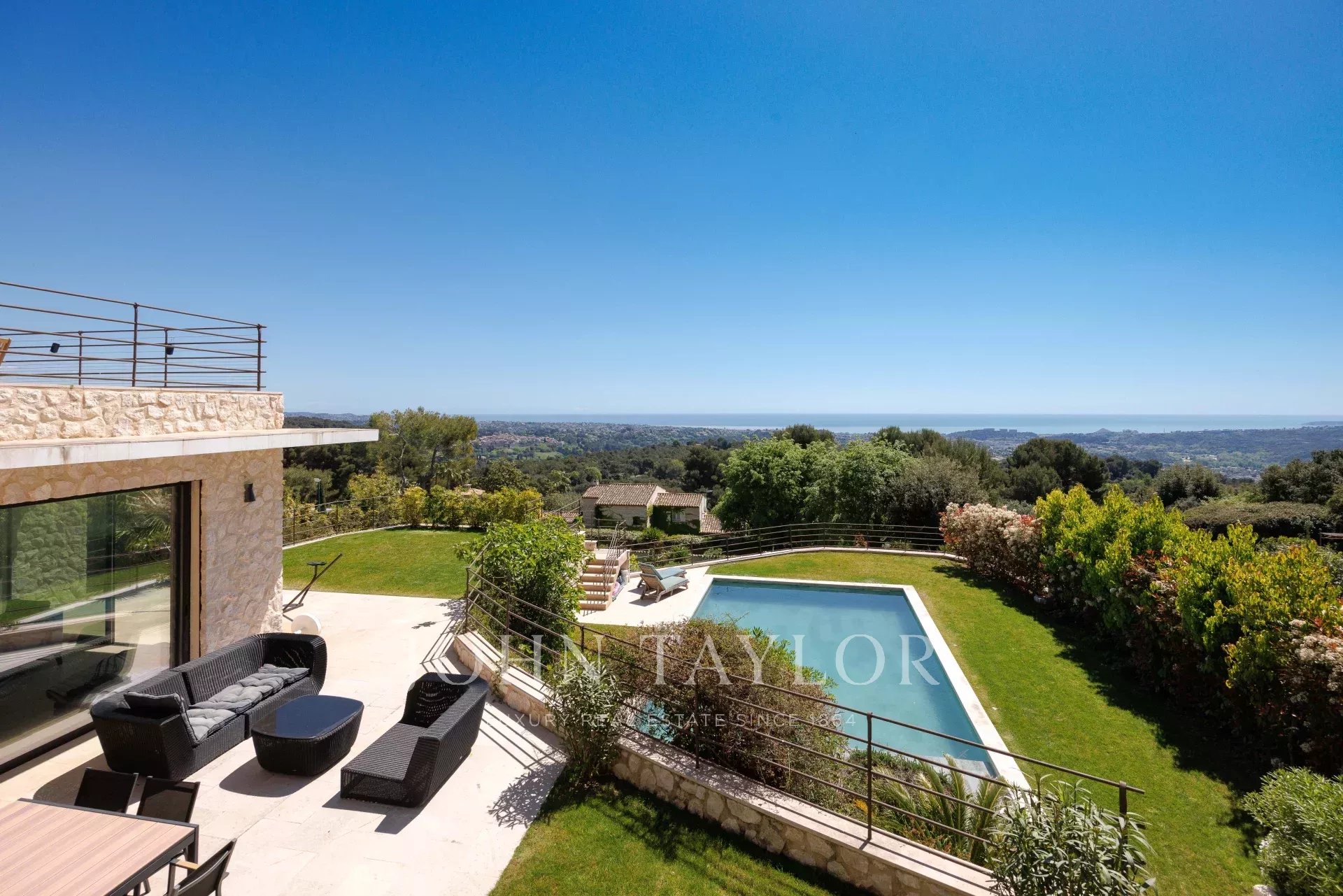 Villa in pietra, vista panoramica sul mare, Saint-Paul de Vence