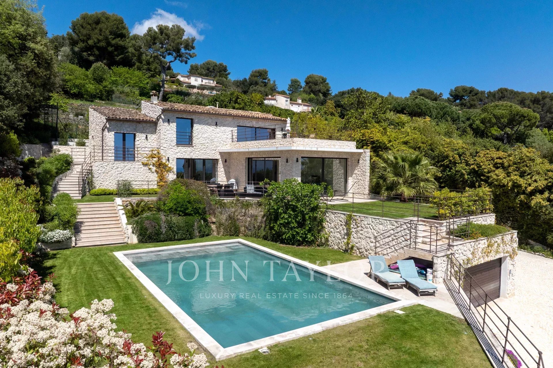 Situata in una delle zone più prestigiose di Saint-Paul de Vence, questa splendida villa in pietra di 260 m² è immersa in 2.180 m² di terreno paesaggistico con piscina e campo da tennis. Vanta una vista panoramica mozzafiato sul mare della Costa Azzurra e offre un ambiente di vita eccezionale che combina eleganza e serenità.