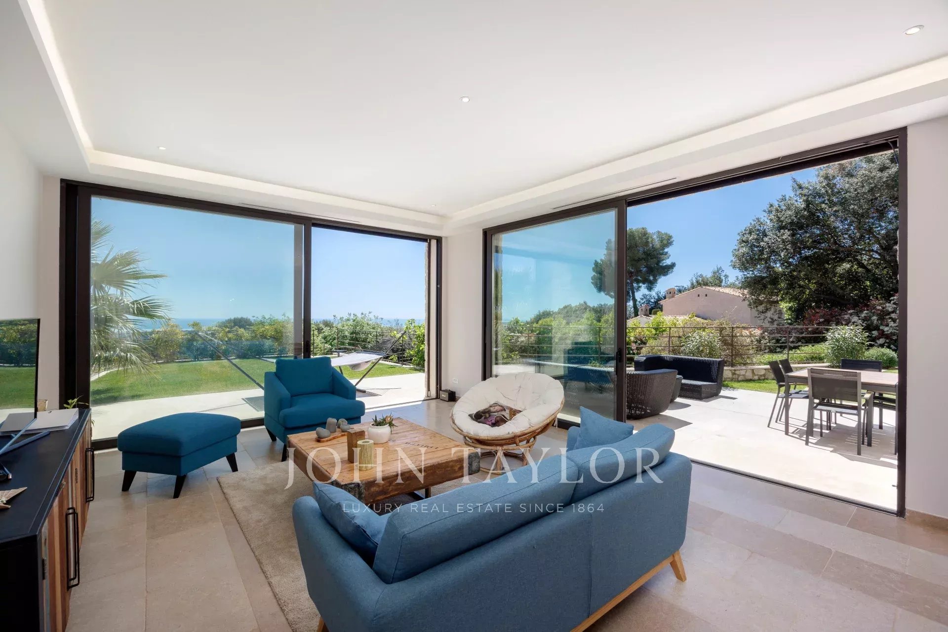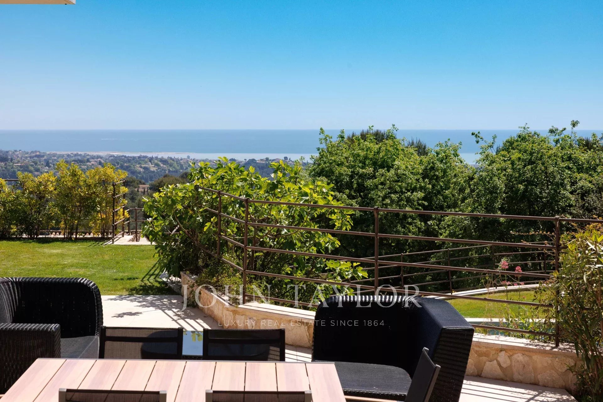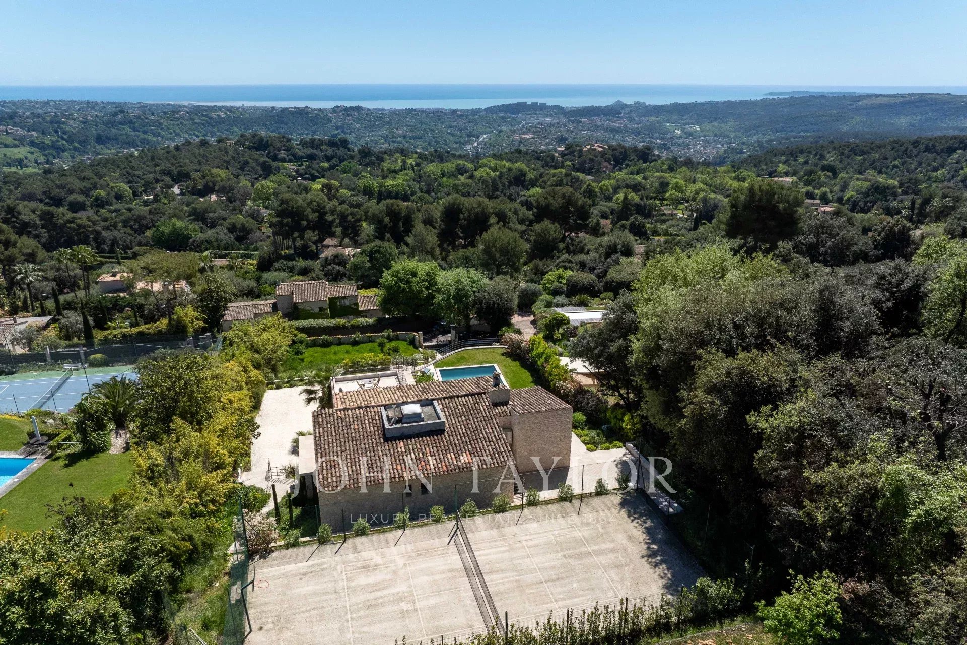 La villa vanta anche un garage doppio di 30 m², una splendida piscina e un campo da tennis privato, rendendo questa proprietà un bene raro e ricercato in Costa Azzurra.