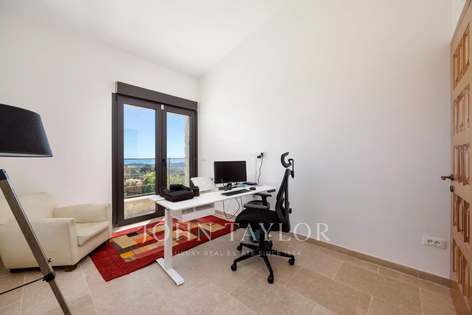 Uno studio indipendente completa lo spazio abitativo, ideale per accogliere la famiglia, gli amici o il personale. Una stanza separata con uno studio offre uno spazio di lavoro tranquillo, impreziosito da una vista mozzafiato sul mare, perfetto per combinare serenità e ispirazione.