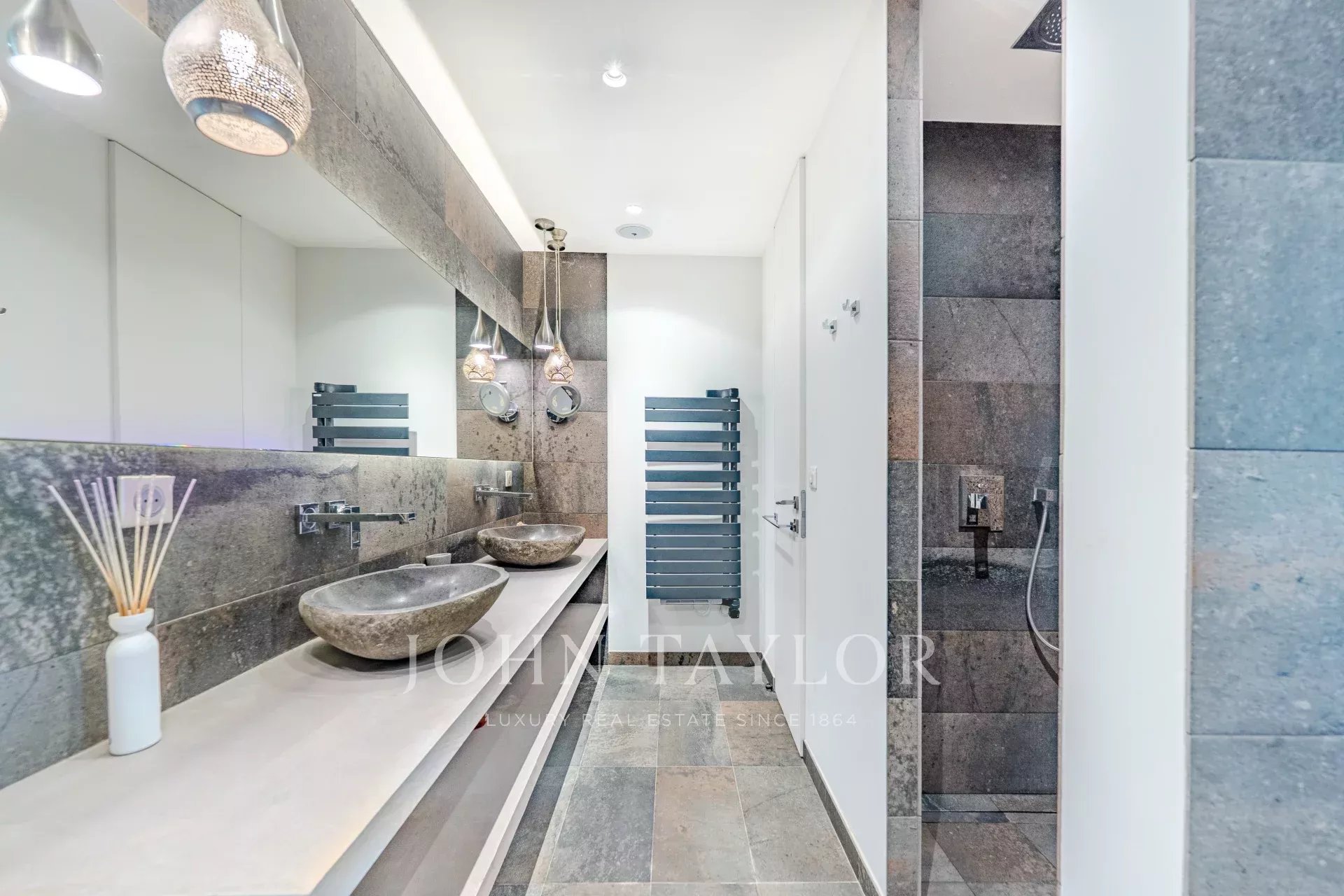 - Una suite padronale molto grande con letto di 2x2 m, ampio spogliatoio, zona salotto, TV, bagno con doccia e vasca.