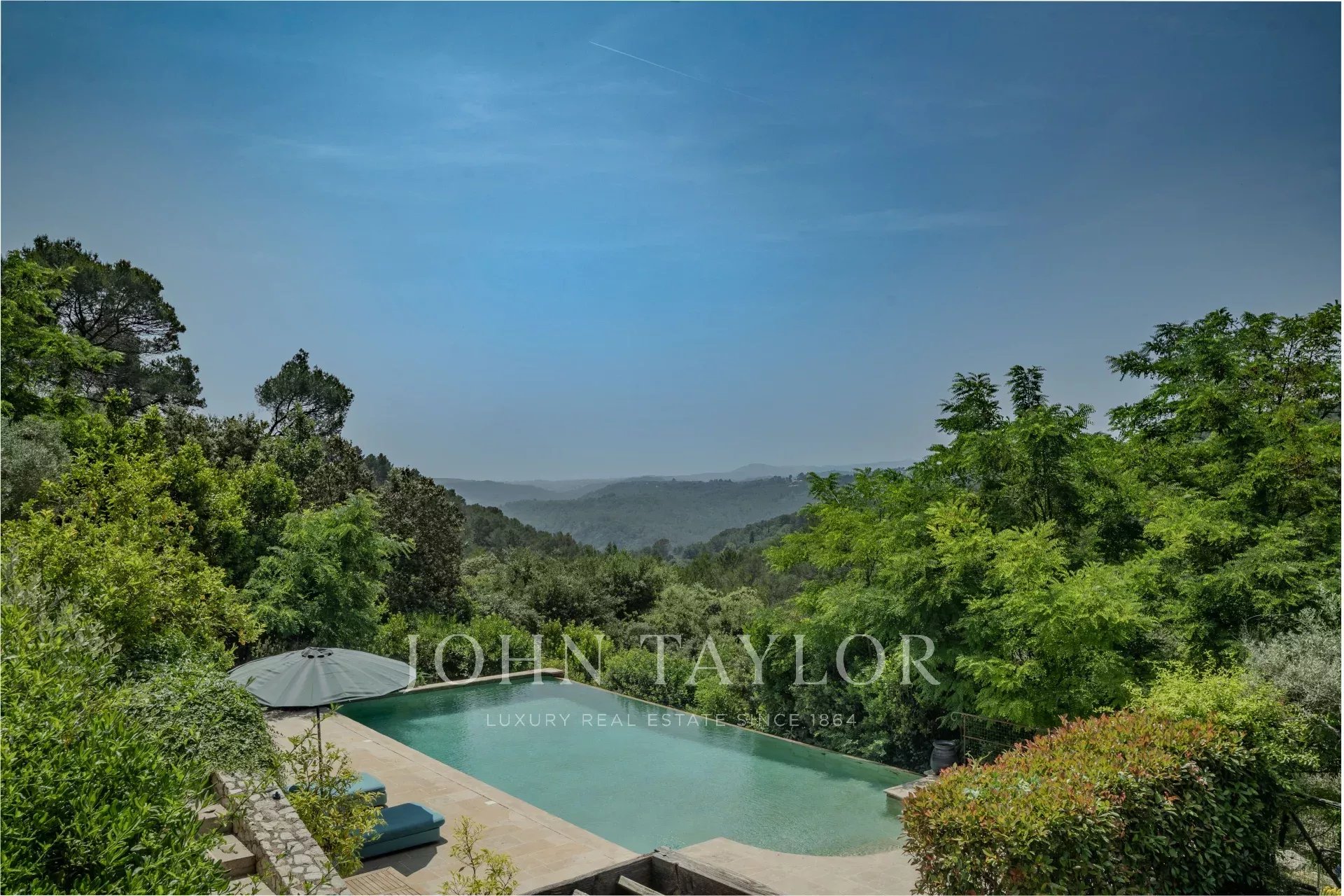 Situata in 1,5 ettari di terreno privato e paesaggistico, questa superba casa in pietra in stile provenzale gode di un ambiente tranquillo e di viste ininterrotte sulla natura e sul mare.