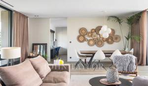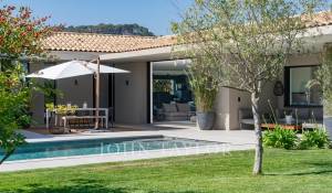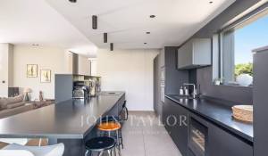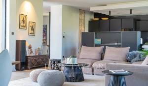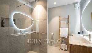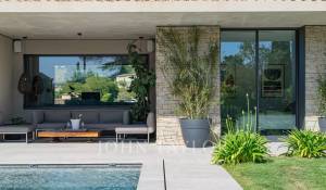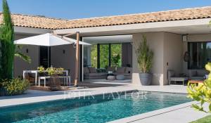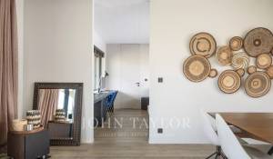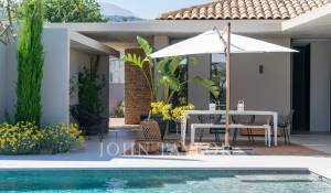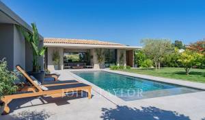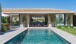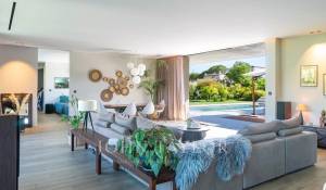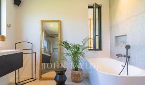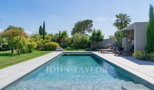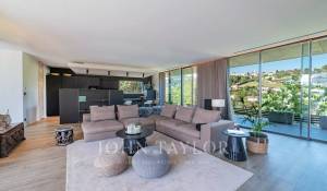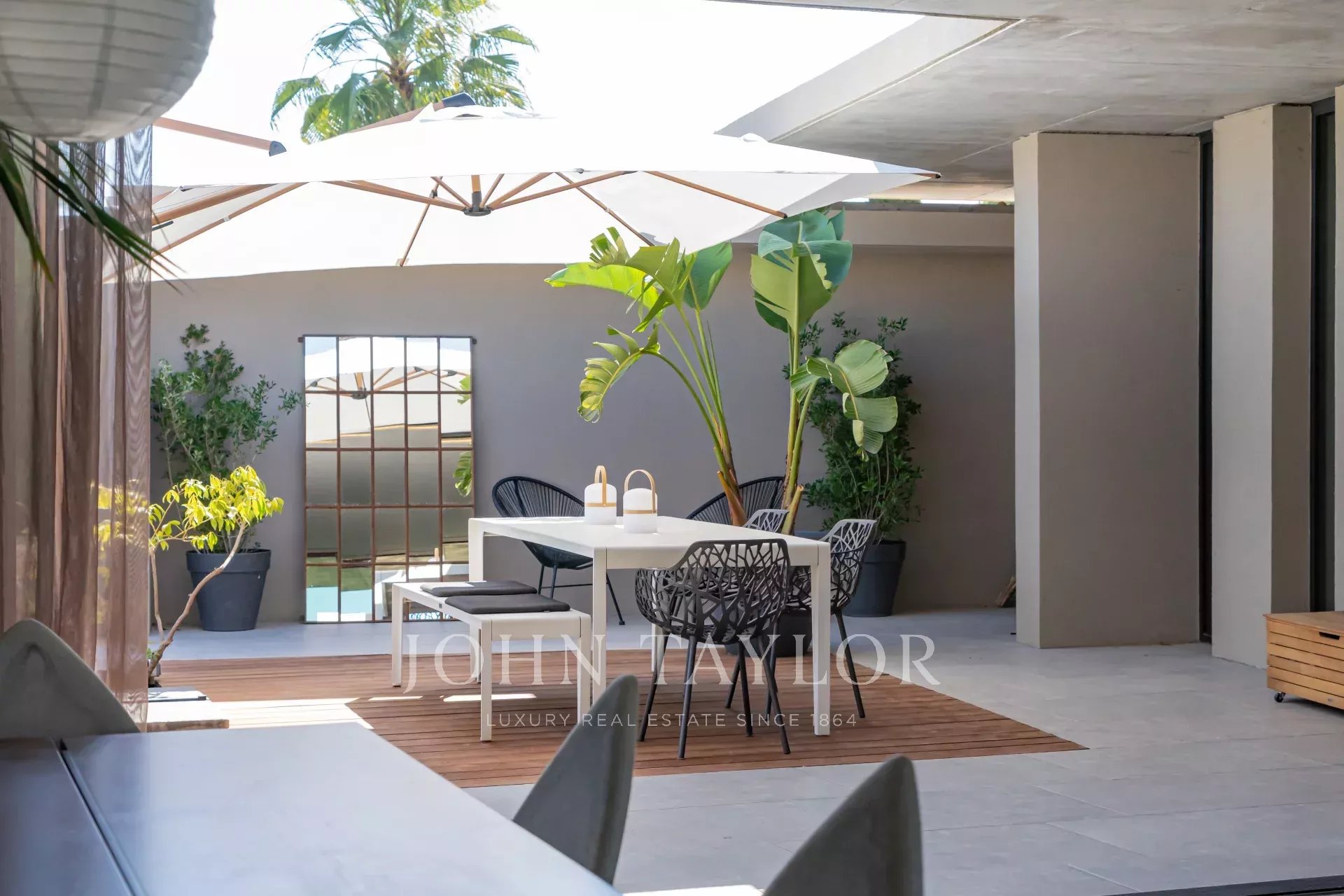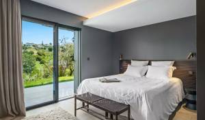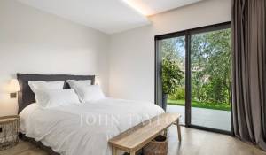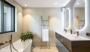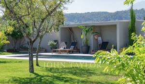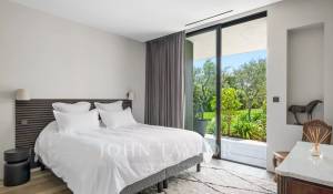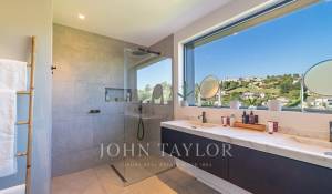 Al piano terra, un ampio e luminoso soggiorno con salotto, sala da pranzo e cucina a pianta aperta invita a rilassarsi e a godere della compagnia degli amici. La vista su Saint-Paul de Vence da un lato e la piacevole terrazza con piscina circondata da un giardino tropicale dall'altro offrono un ambiente idilliaco. La suite padronale comprende uno studio con vista, uno spogliatoio, un bagno con doccia e vasca e accesso diretto a una delle terrazze.