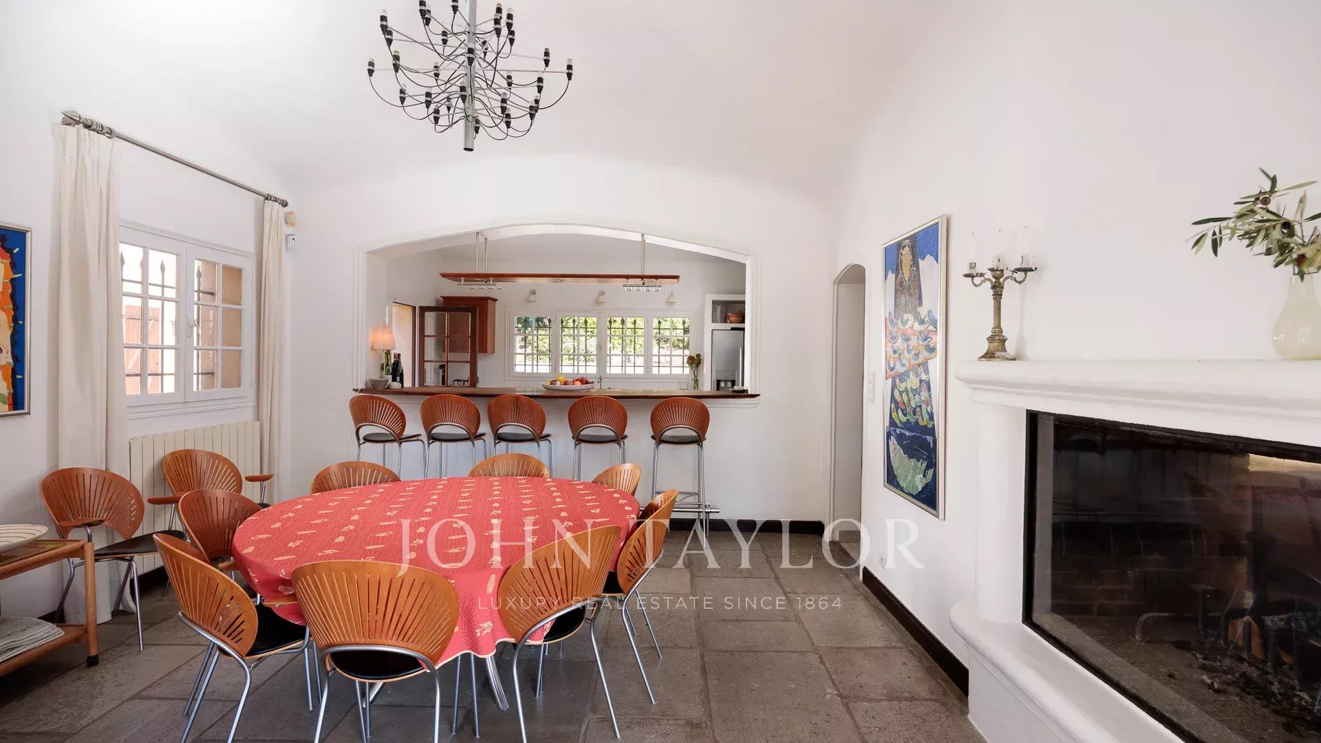 Con le sue 9 camere da letto con bagno, questa villa può ospitare fino a 20 persone in assoluto comfort. Offre spaziose e luminose zone giorno, tra cui due salotti con caminetti, una cucina completamente attrezzata e una sala da pranzo conviviale.