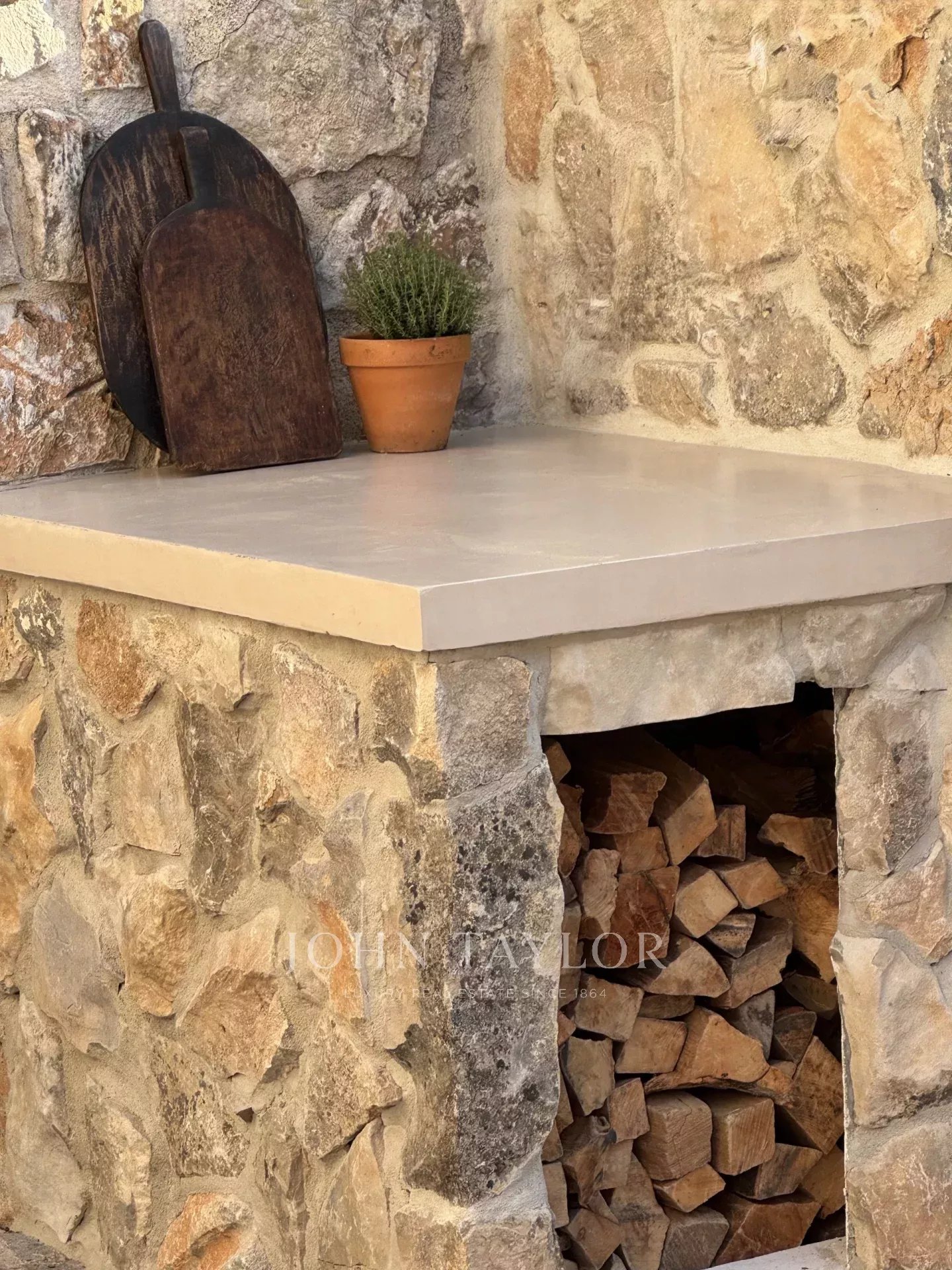 -Un'ampia terrazza, perfetta per i pasti estivi, dotata di camino esterno e barbecue per i momenti conviviali con la famiglia e gli amici.
