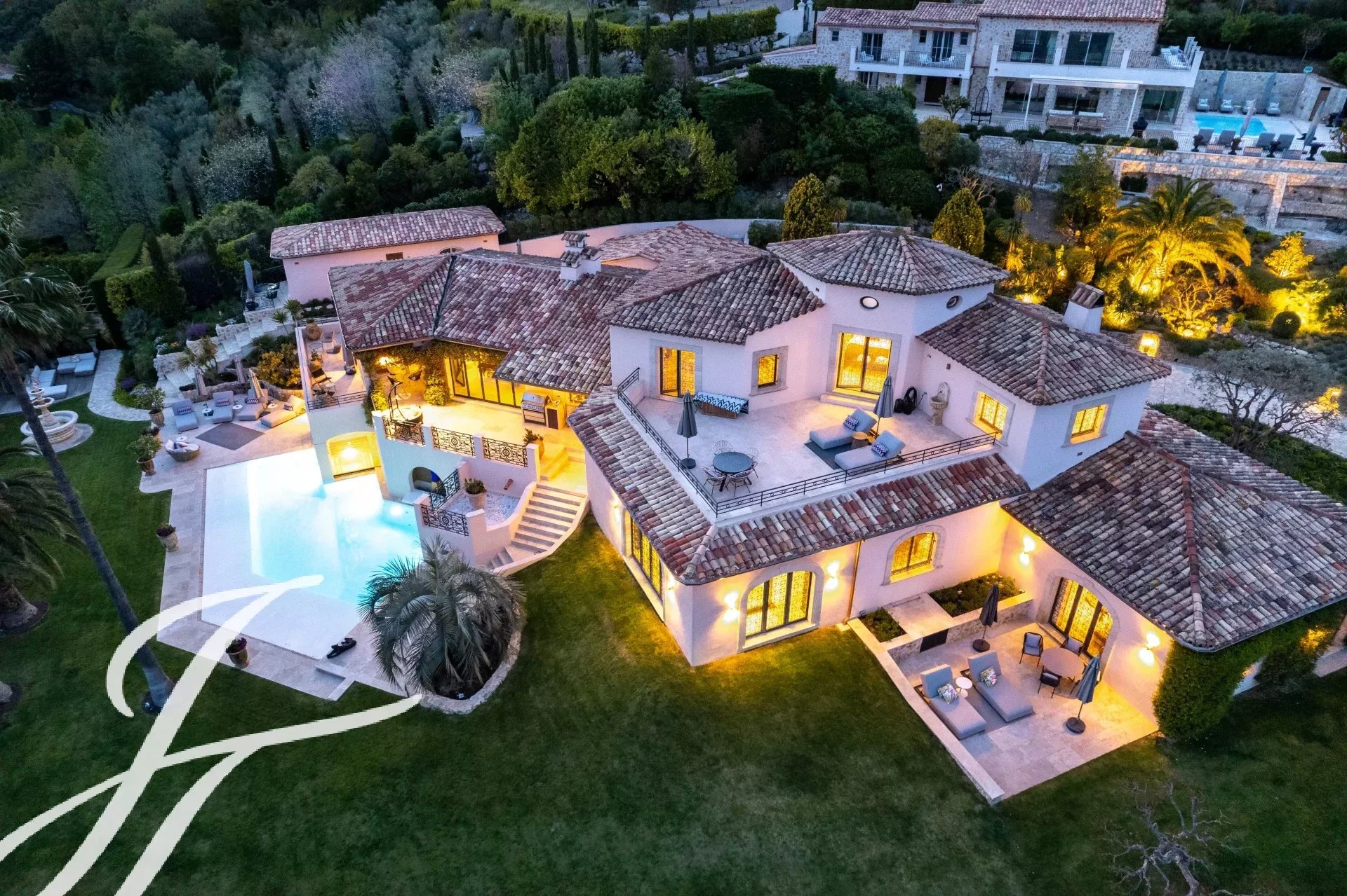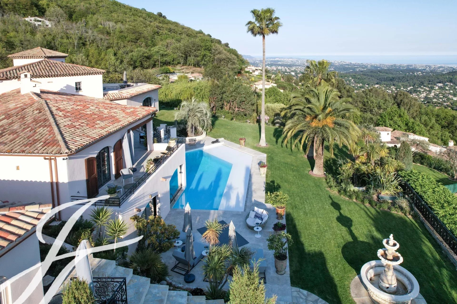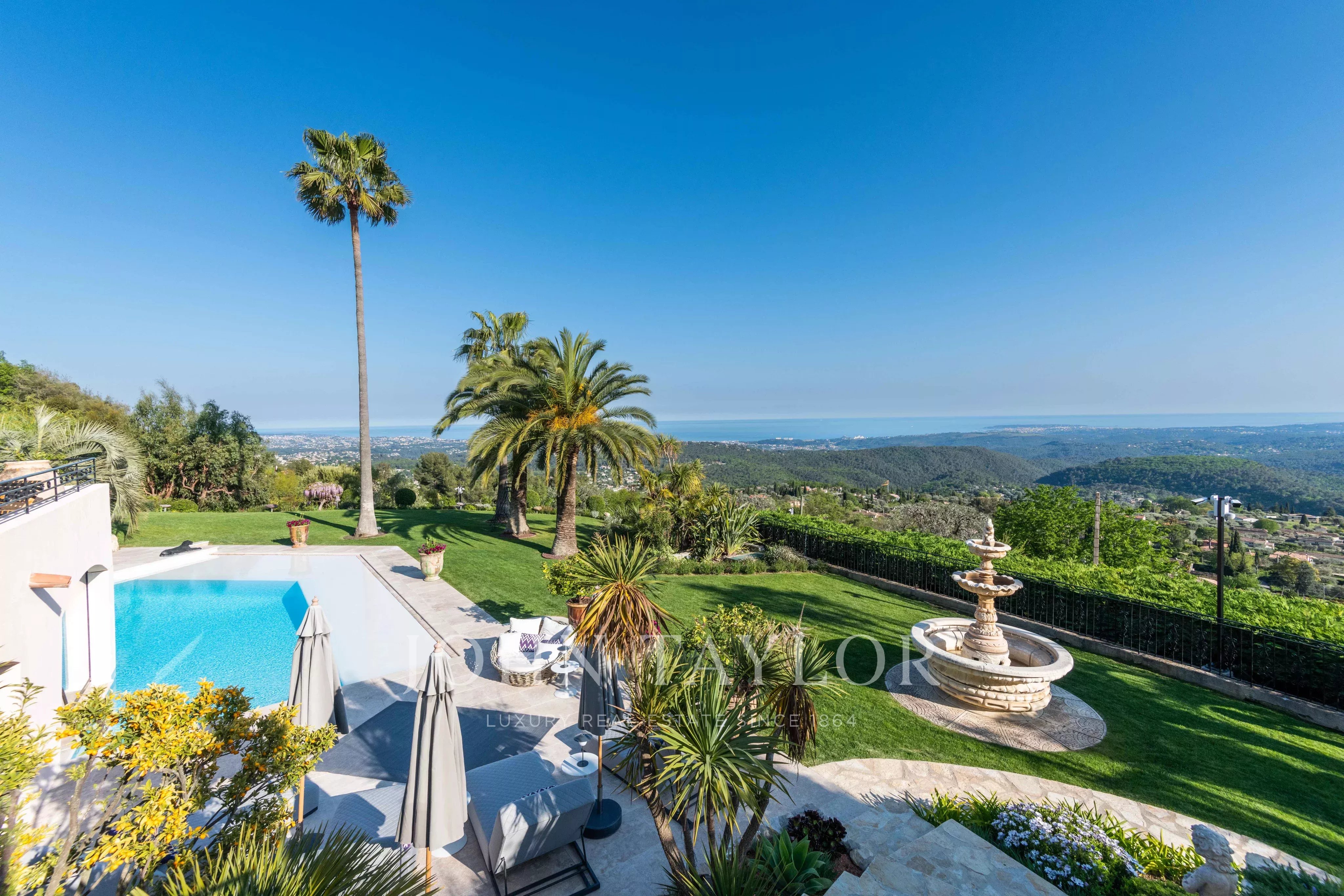 Lussuosa villa a 5 stelle sulle colline sopra l'incantevole villaggio di Tourrettes-sur-Loup con vista panoramica sul mare e sulle montagne circostanti.