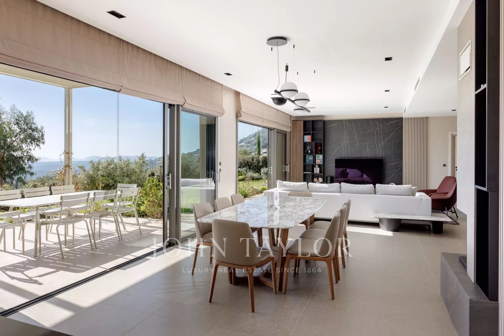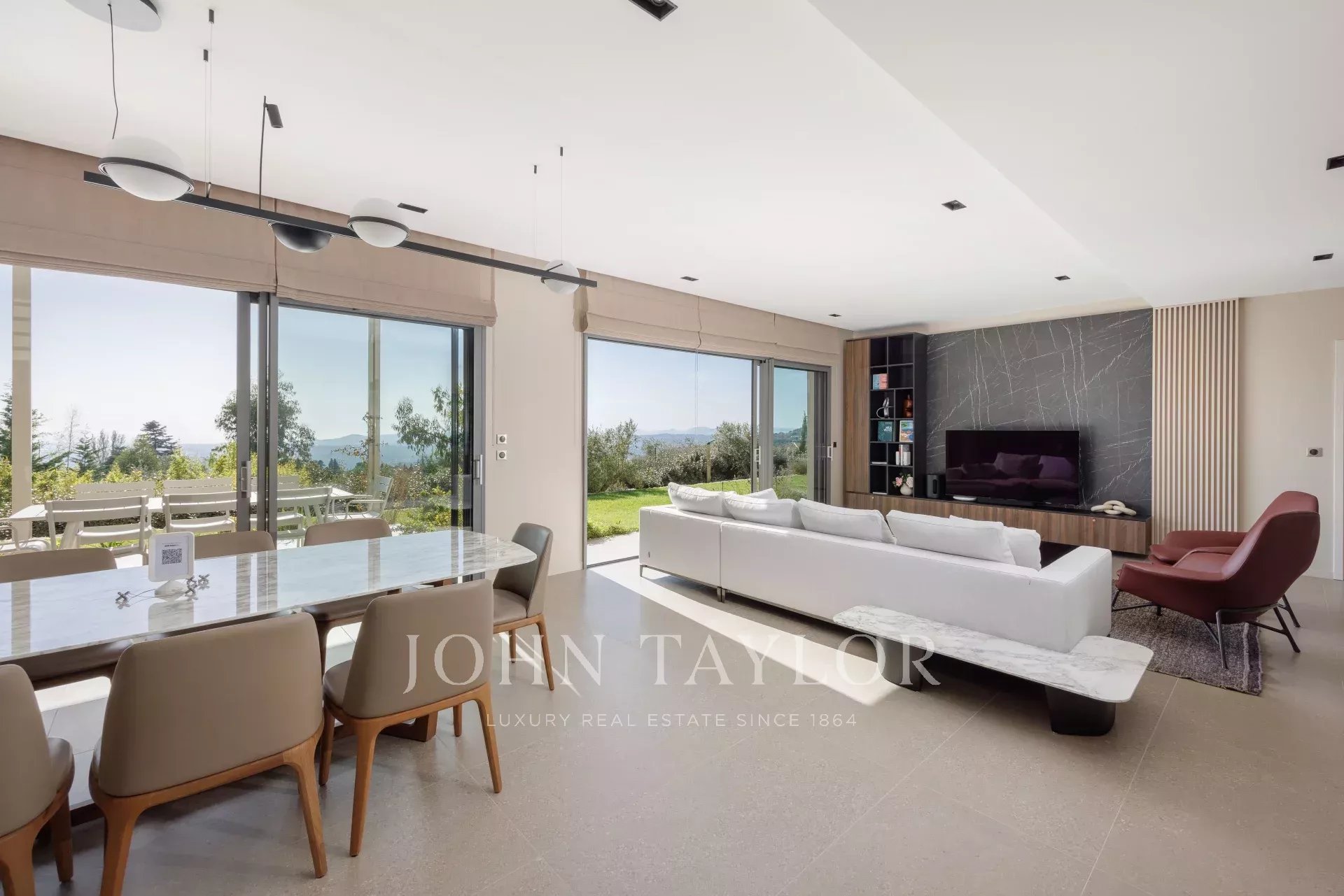 All'esterno, un giardino paesaggistico e diverse terrazze con pergolati invitano a godere di una vista mozzafiato e della piscina, che può essere riscaldata su richiesta ed è perfetta per rilassarsi in qualsiasi stagione.