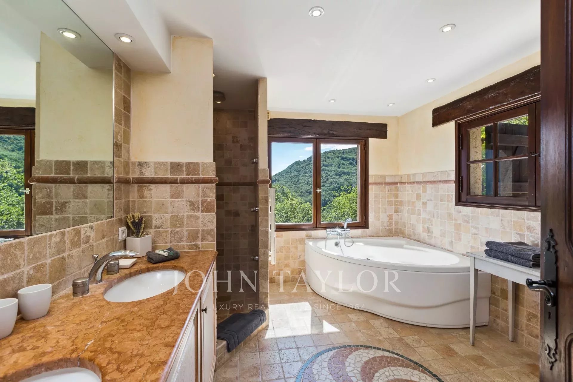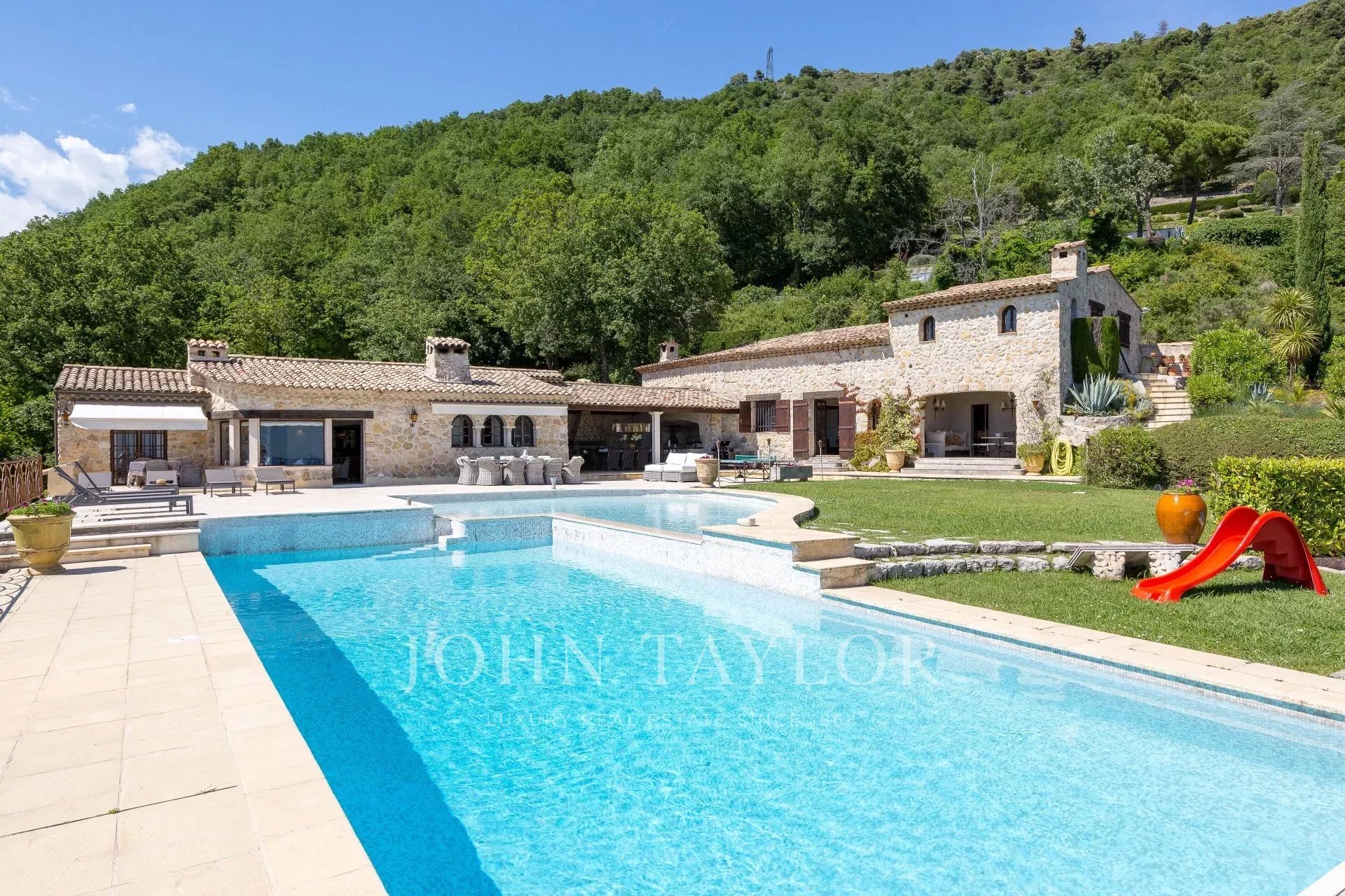 Non potrete fare a meno di innamorarvi di questa sublime proprietà in pietra che, grazie alla sua posizione dominante sulle alture di Vence, gode di una vista eccezionale su tutta la Costa Azzurra.