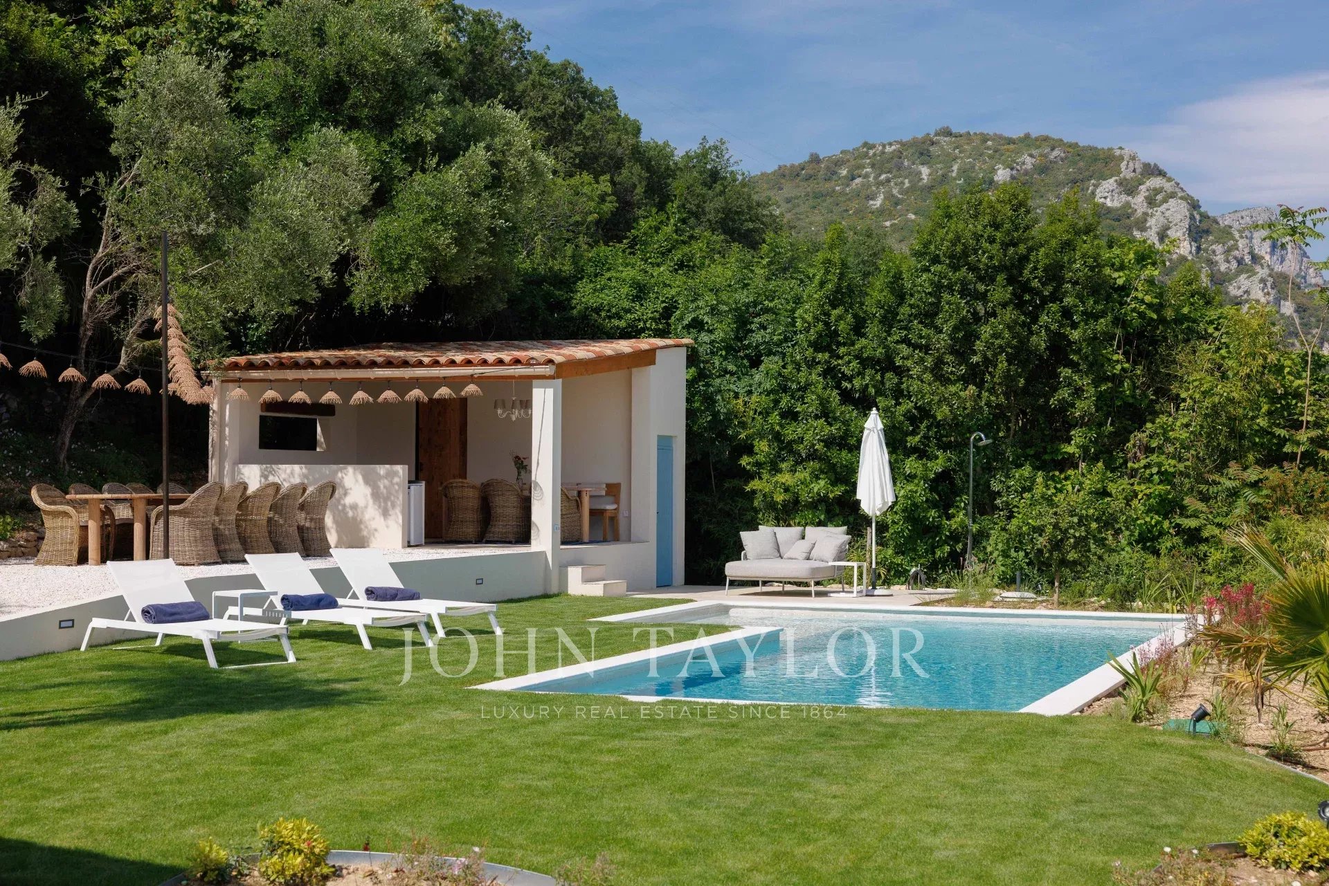 - Piscina con pool house conviviale, dotata di cucina estiva, zona pranzo ombreggiata e barbecue a carbonella