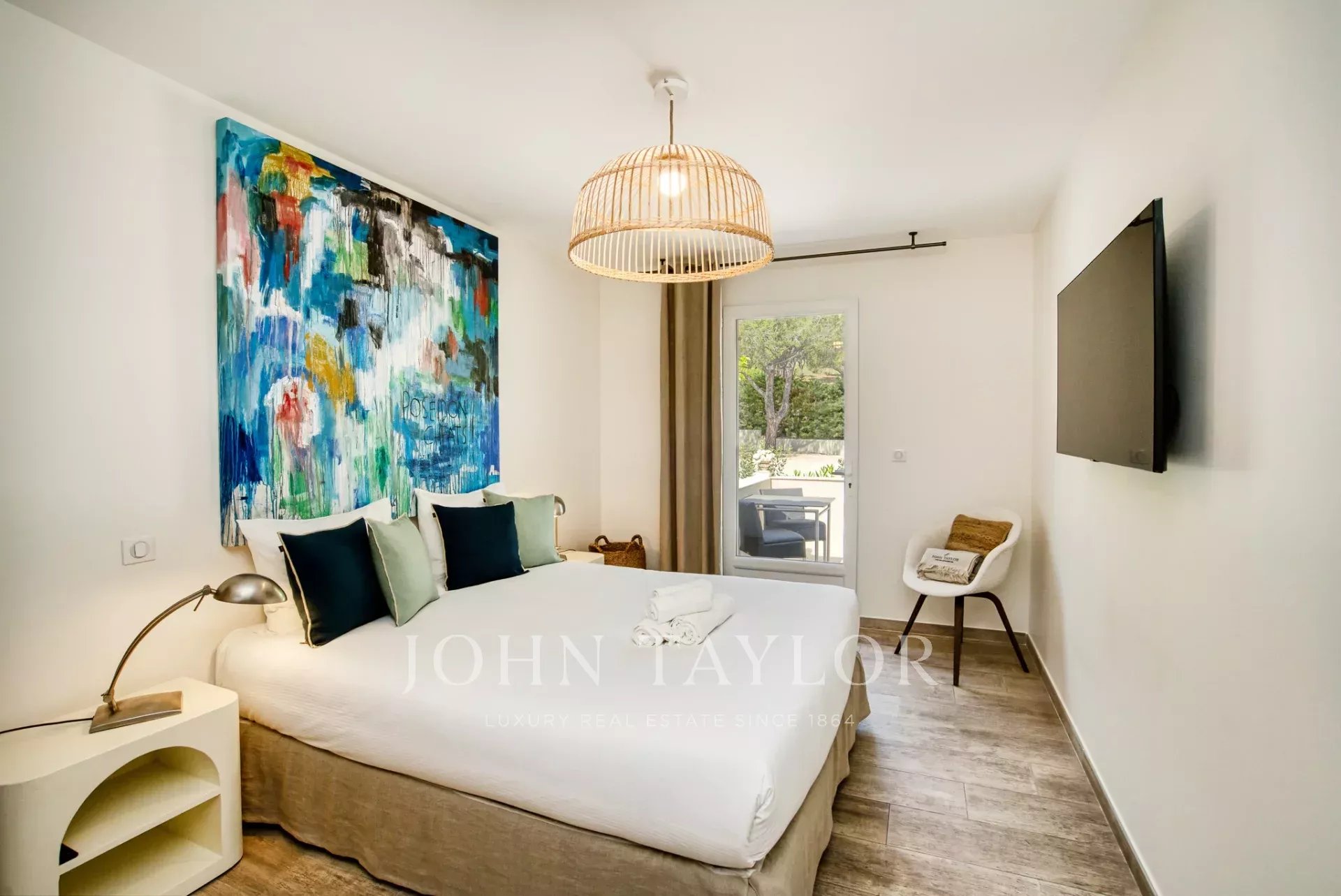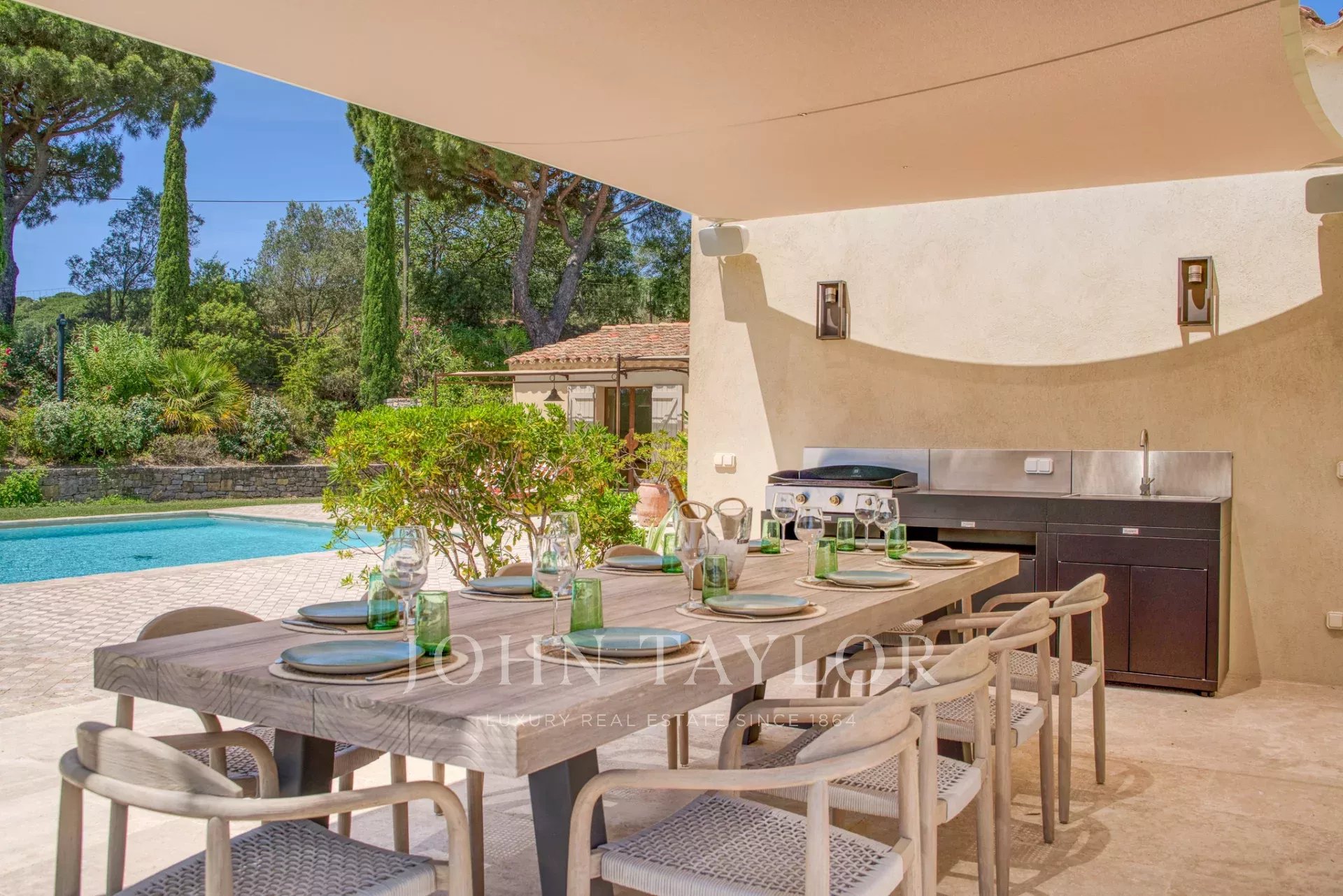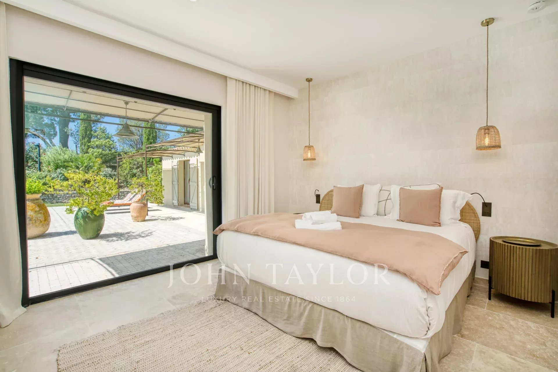 Questa bella casa di campagna provenzale è situata nel cuore dei vigneti con una splendida vista sulla baia di Pampelonne: