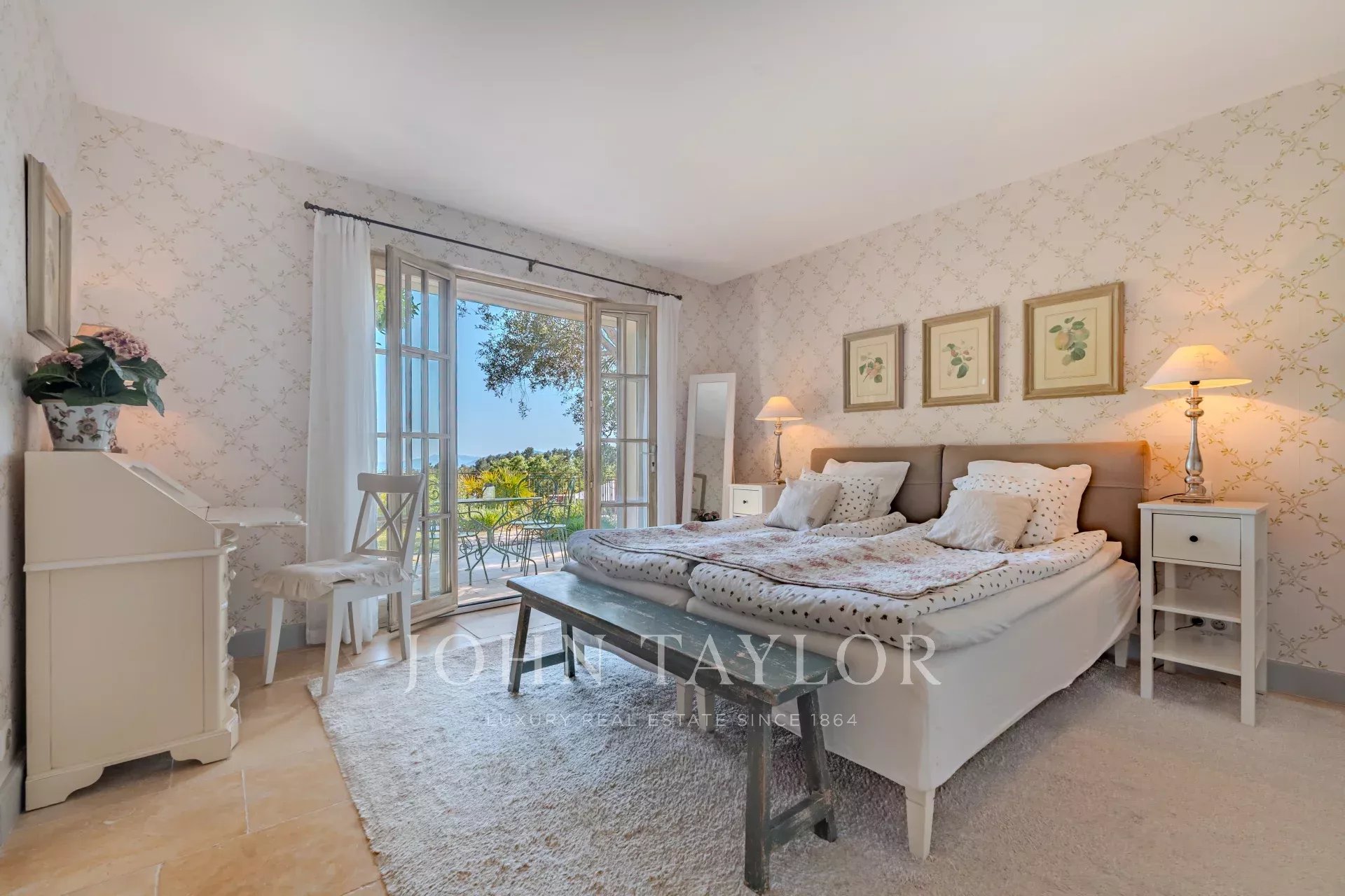 Camera da letto N°3 (camera da letto principale) con letto matrimoniale (160 cm), vista panoramica, bagno con doccia, WC e spogliatoio
