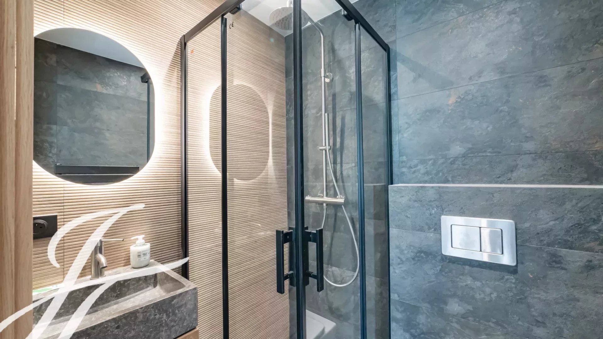 L'anima di questa casa risiede nella scelta di materiali nobili e senza tempo: pietra di Borgogna, parquet massiccio e pareti sbiancate. Ogni dettaglio è stato pensato per creare un ambiente di vita armonioso, dove comfort ed estetica si incontrano con eleganza.