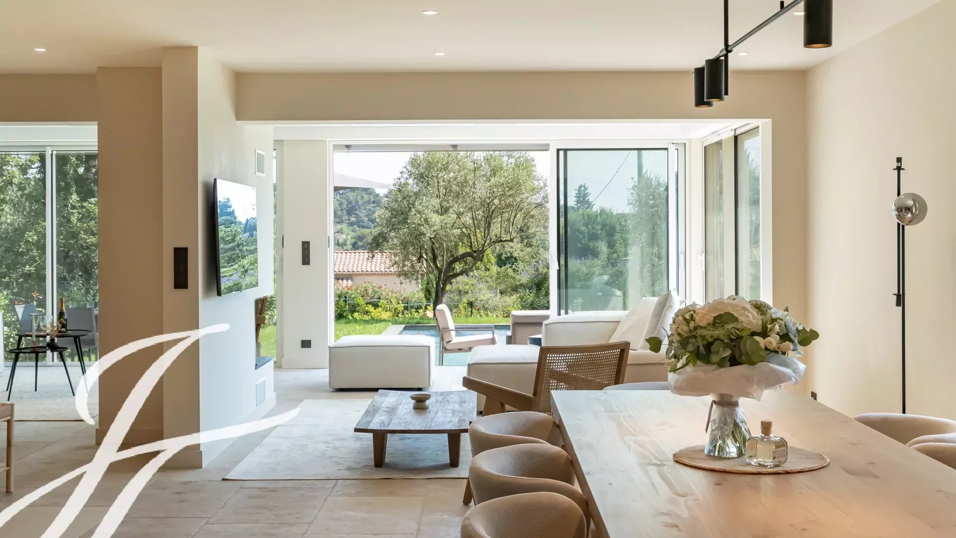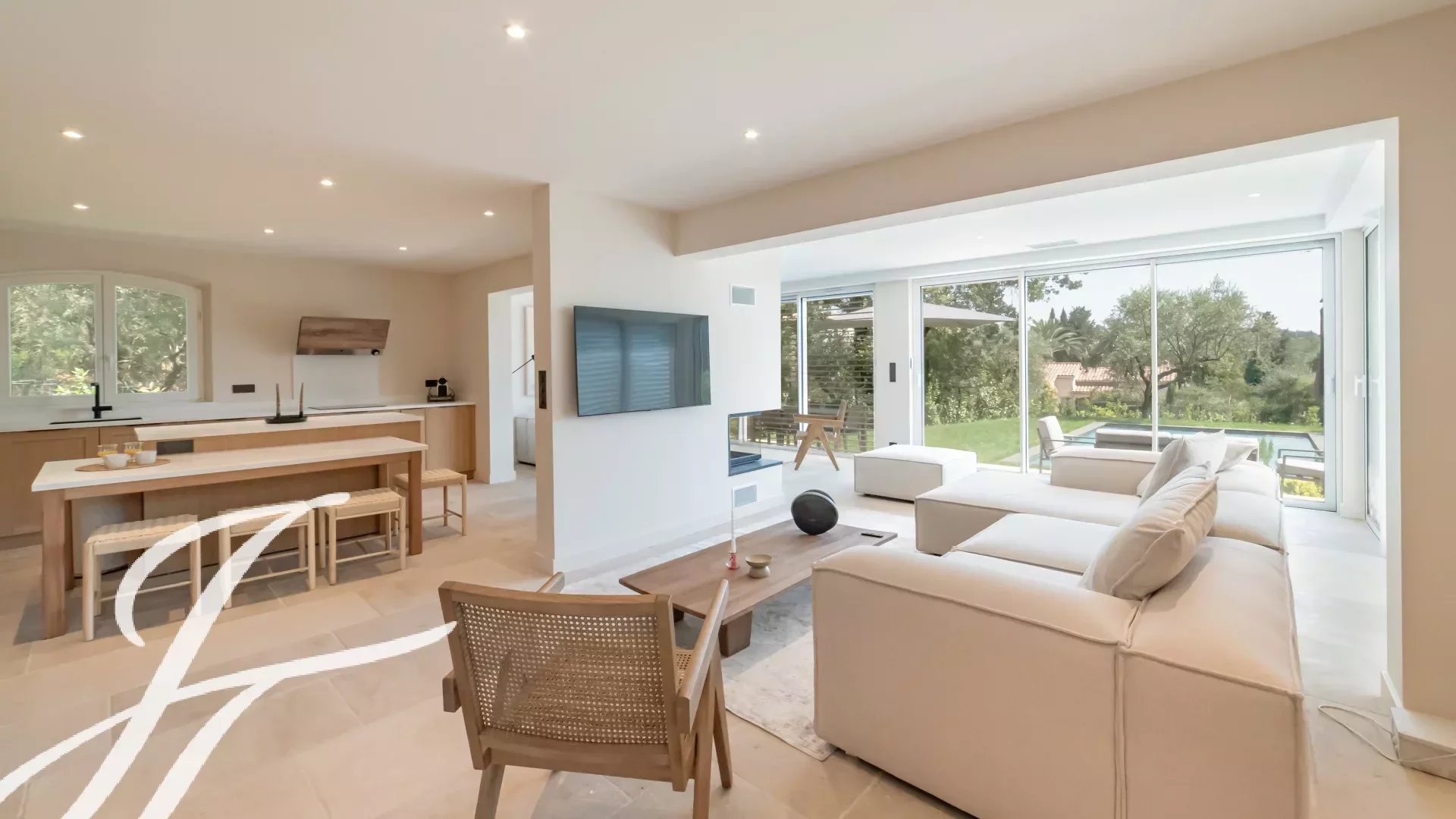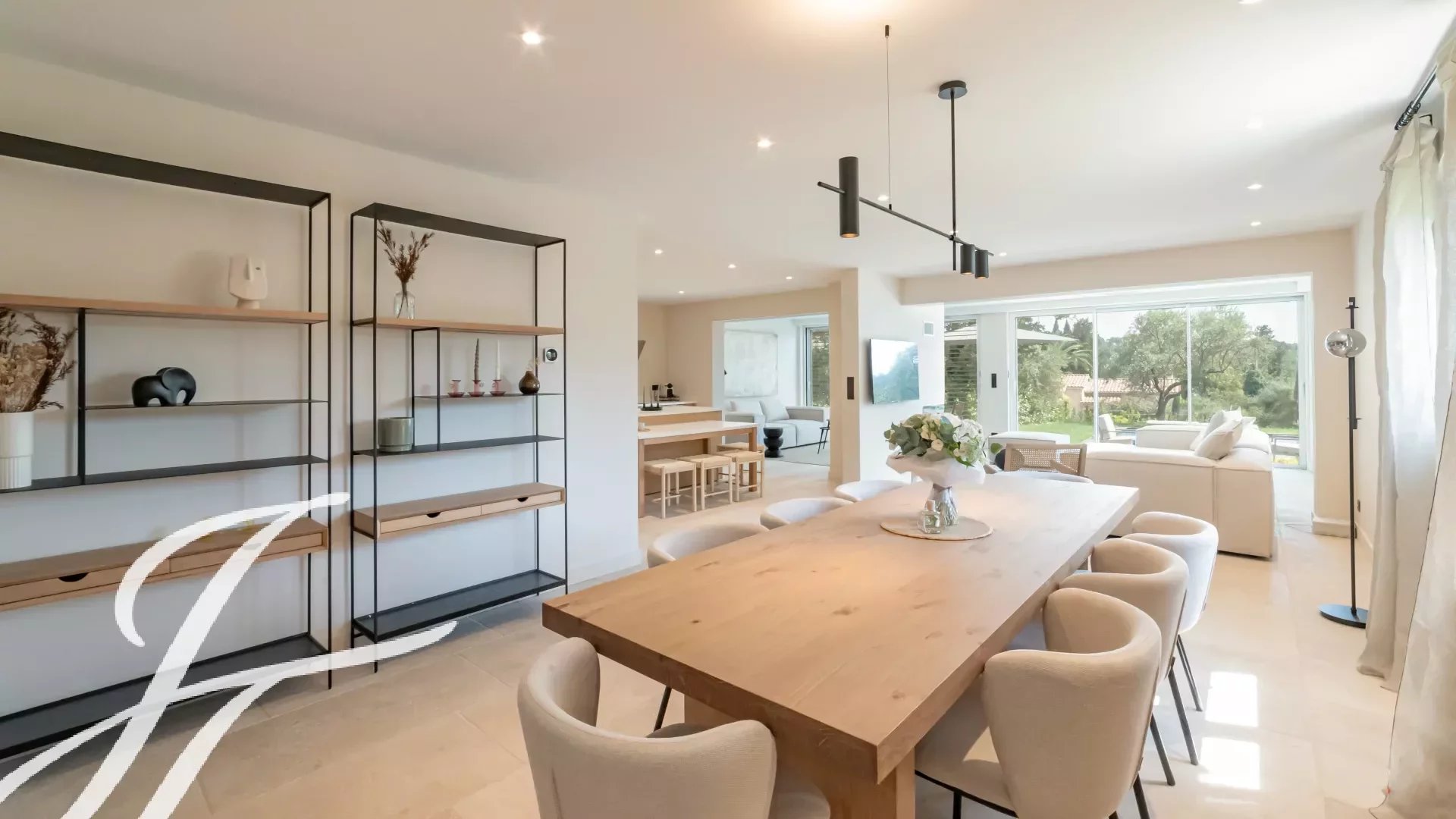 In un ambiente tranquillo, nel cuore di una zona residenziale ricercata, questa sontuosa villa a un piano, completamente ristrutturata con la massima cura, vi offre una qualità di vita incomparabile. A pochi minuti a piedi dall'incantevole villaggio di Valbonne, combina armoniosamente autenticità e modernità.