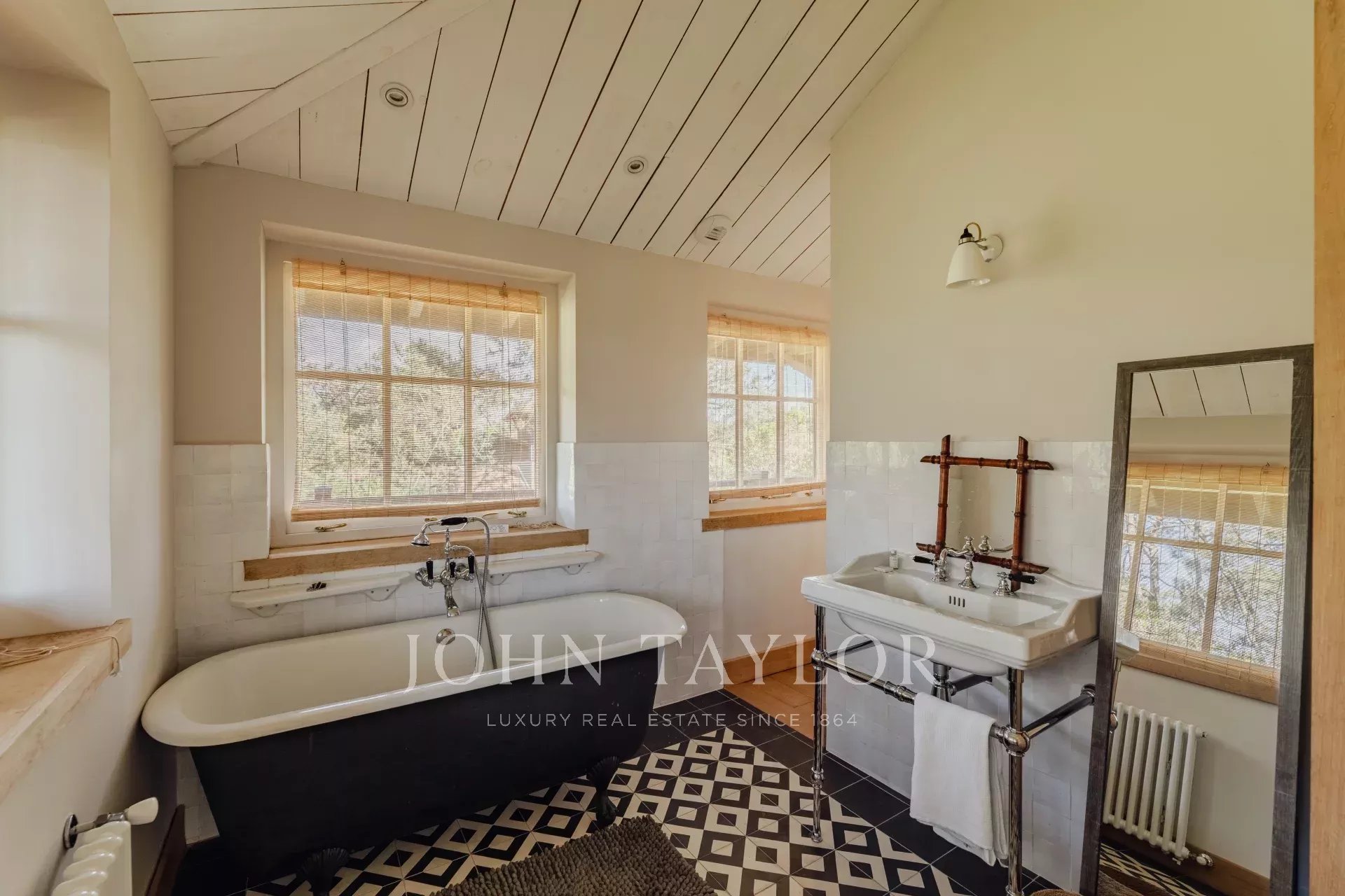 Con vista sulla foresta di pini circostante, questa villa offre panorami mozzafiato, circondata da una lussureggiante vegetazione che garantisce privacy e serenità.