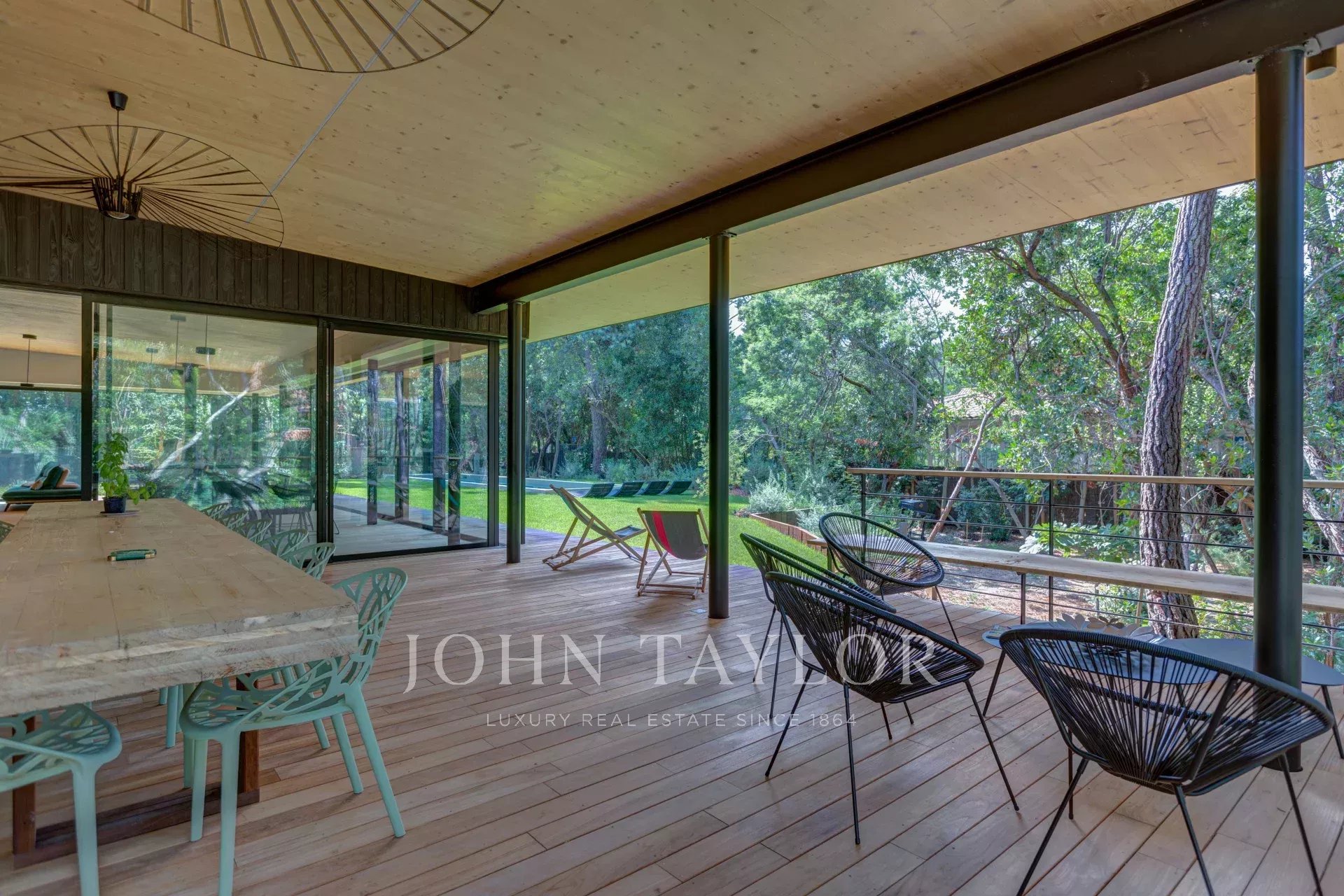 Benvenuti a Villa Kuro, un vero gioiello architettonico che unisce l’eleganza della California degli anni '50 con il minimalismo giapponese. Immersa in una pineta protetta e rivestita in legno nero, questa villa isolata è un’oasi di pace, a pochi passi dalla famosa Plage des Américains.