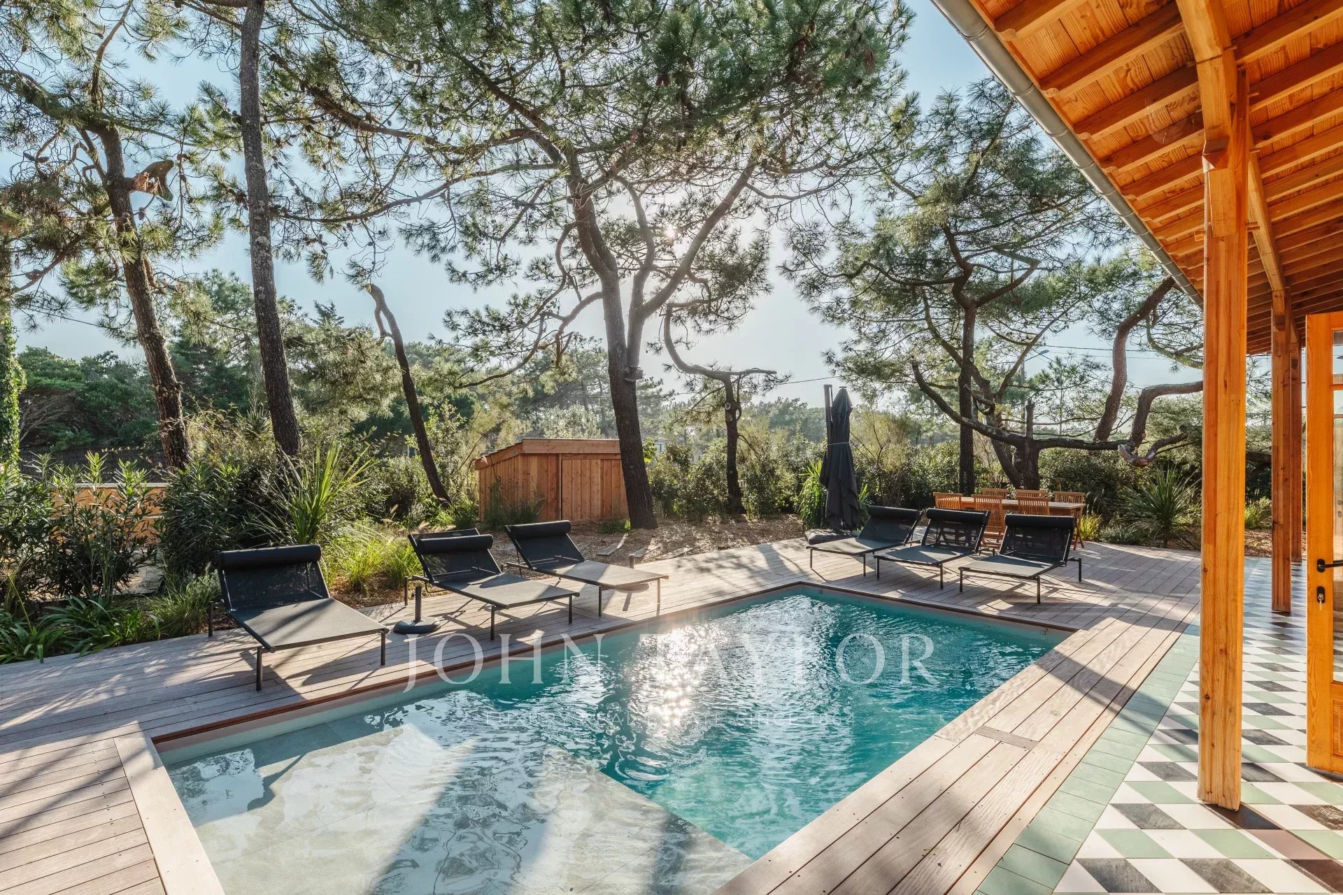 La zona giorno, inondata di luce, si apre su un bellissimo giardino alberato che immerge gli ospiti in un'atmosfera di natura incontaminata. Gli spazi esterni sono stati attentamente progettati per momenti di convivialità: relax a bordo della piscina riscaldata, partite avvincenti di bocce o cene memorabili preparate nella cucina estiva.