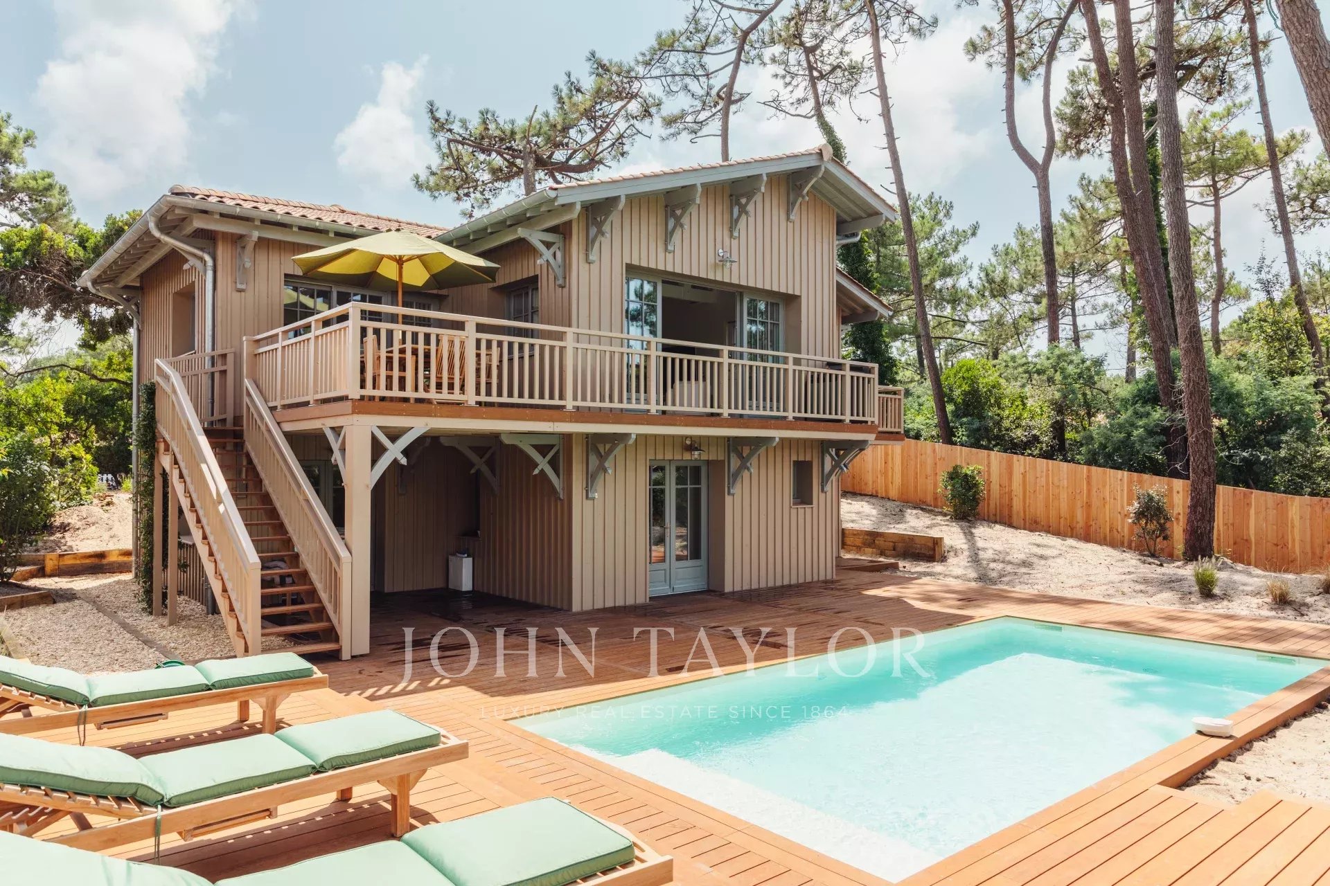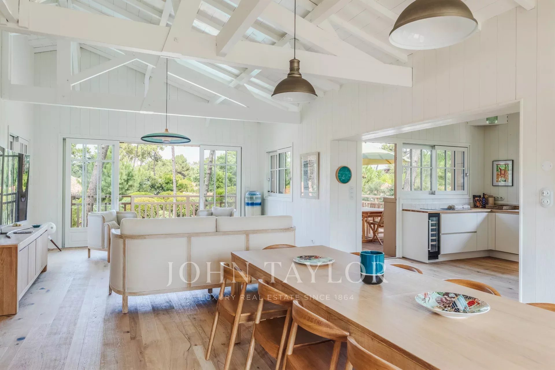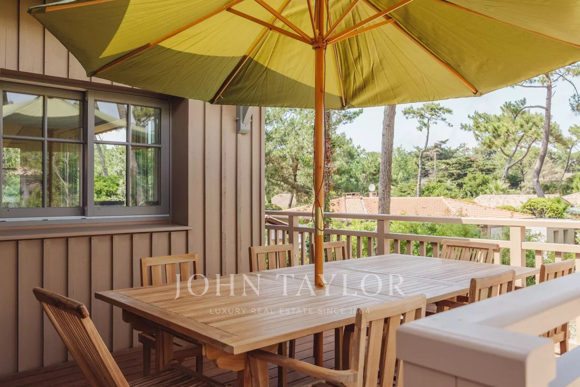All'esterno, il giardino, tipico di Cap Ferret, è un vero angolo di verde dove si mescolano piante mediterranee e alberi locali. Al centro, una piscina riscaldata e soleggiata, circondata da lettini e salottini da giardino, crea lo spazio perfetto per godersi le calde giornate estive.