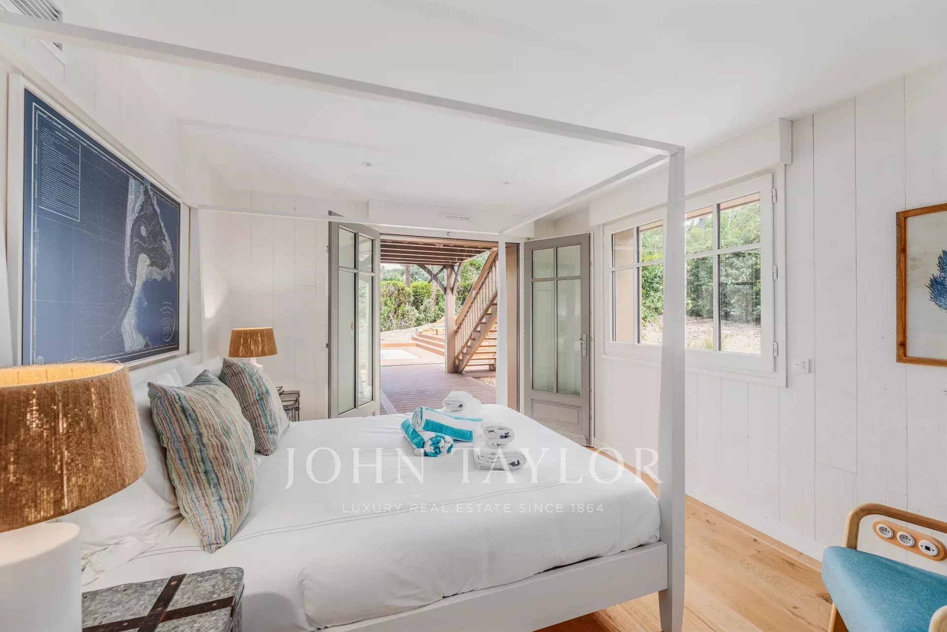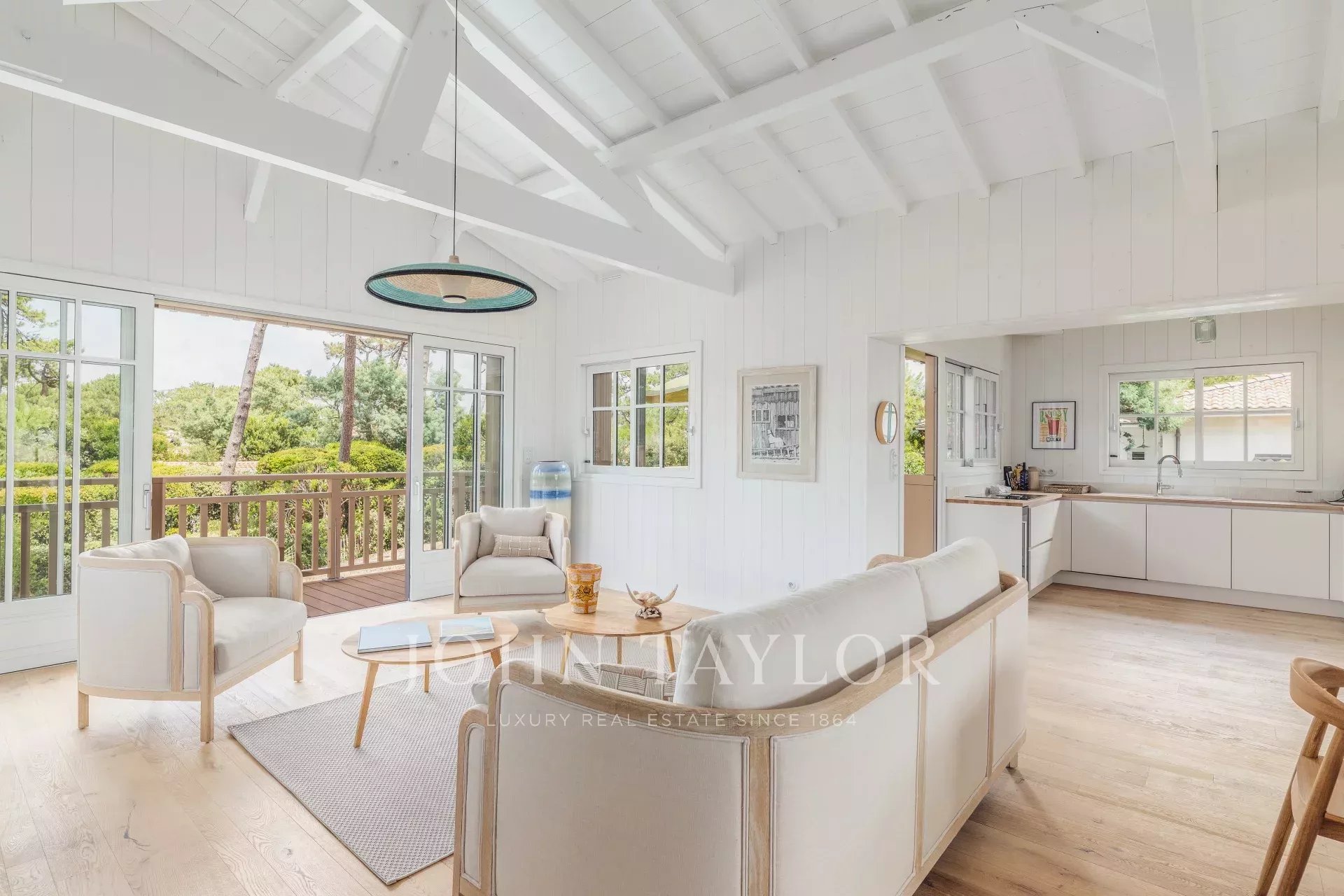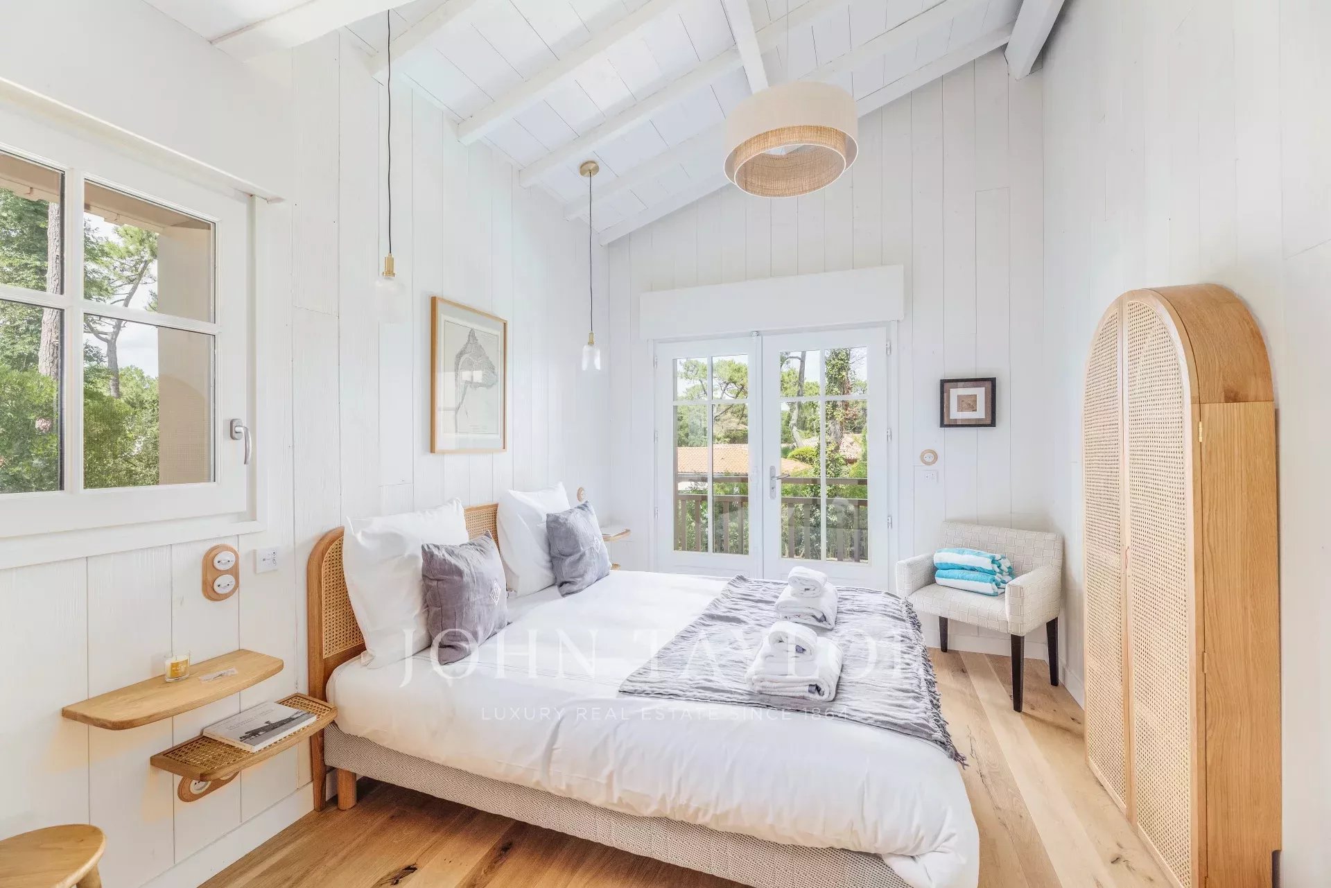 Scoprite la Villa Azur, un indirizzo raro e ambito nel cuore di Cap Ferret. Situata idealmente a pochi passi dal faro iconico, questa villa d’eccezione gode di una posizione unica, a soli 500 metri dall’oceano e dalla spiaggia di Mimbeau.