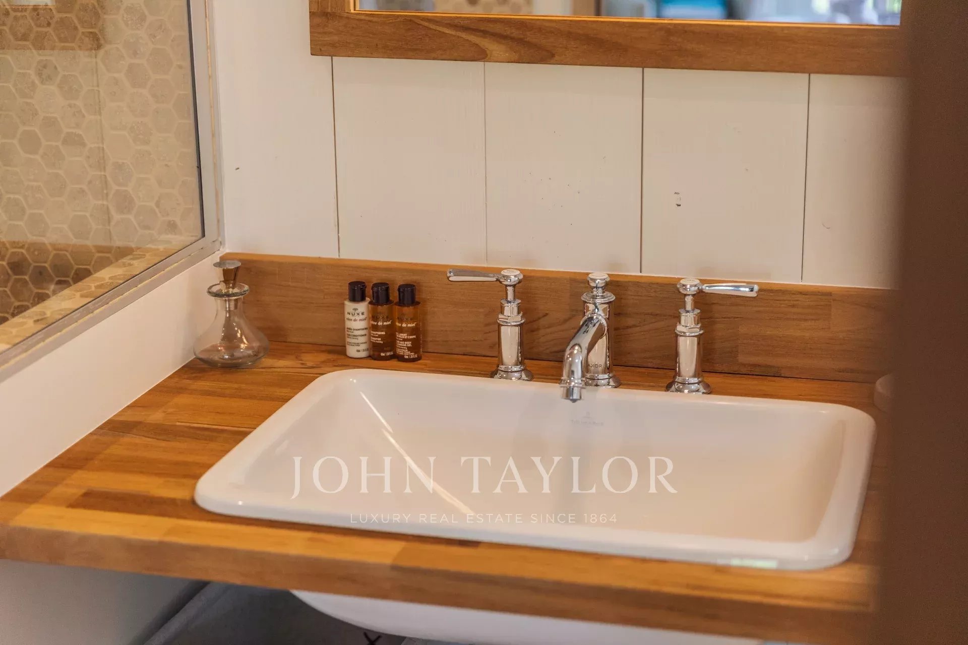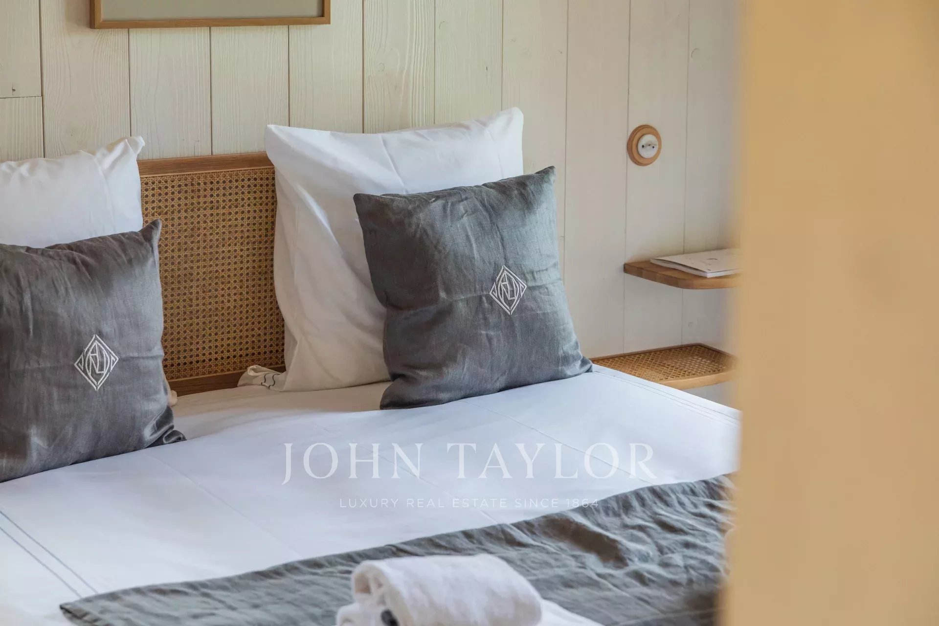 All'ingresso, la Villa Azur conquista con la sua atmosfera raffinata e il suo arredamento elegante, che combinano comfort e lusso. Dispone di tre ampie suite, ciascuna con il proprio bagno privato, garantendo un comfort assoluto. Due ulteriori camere condividono un bagno moderno, perfettamente attrezzato per accogliere famiglia e ospiti.