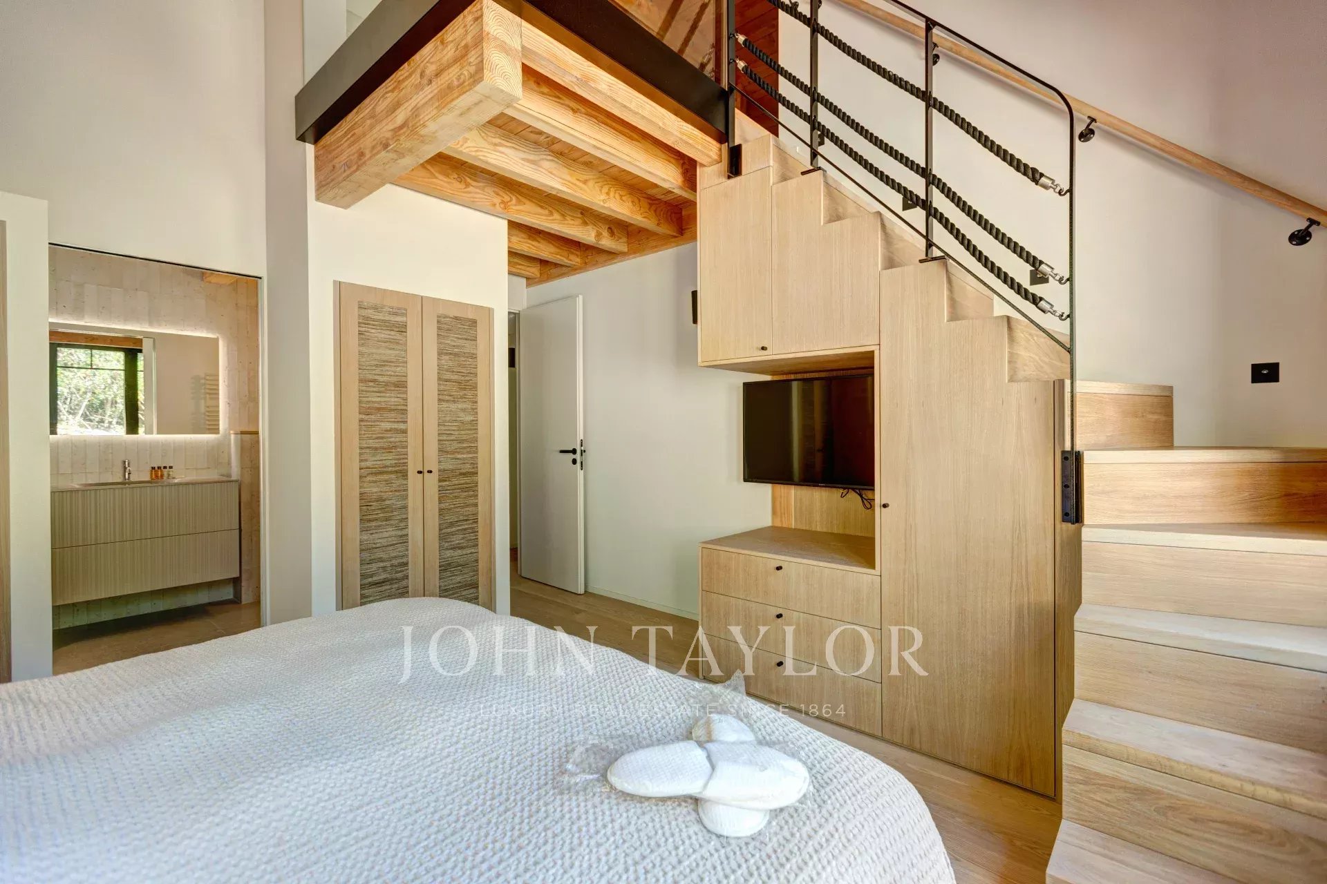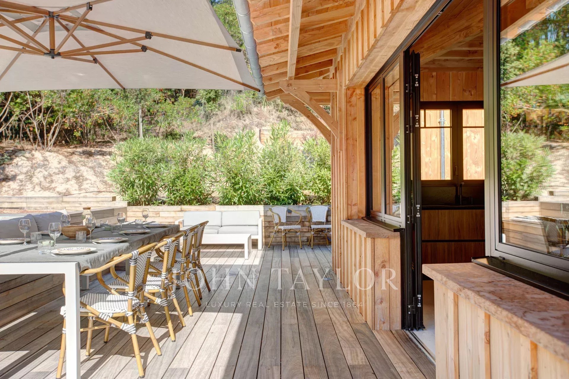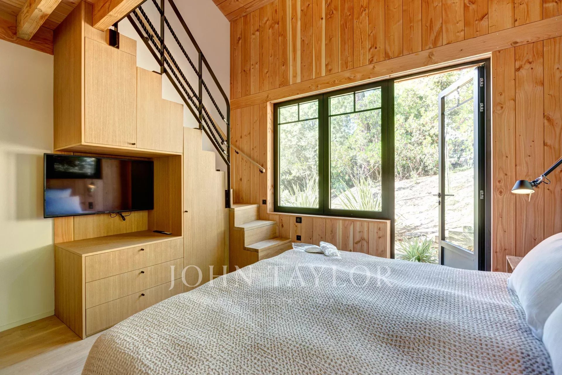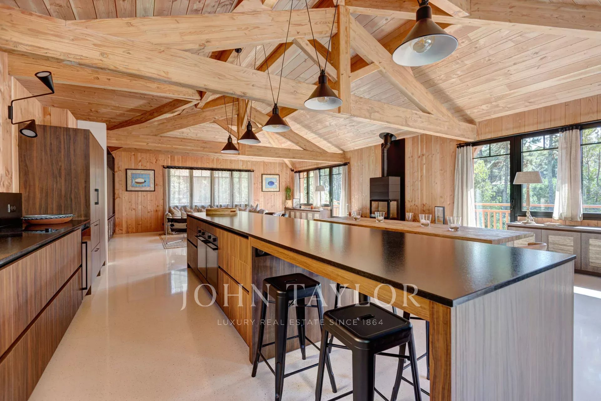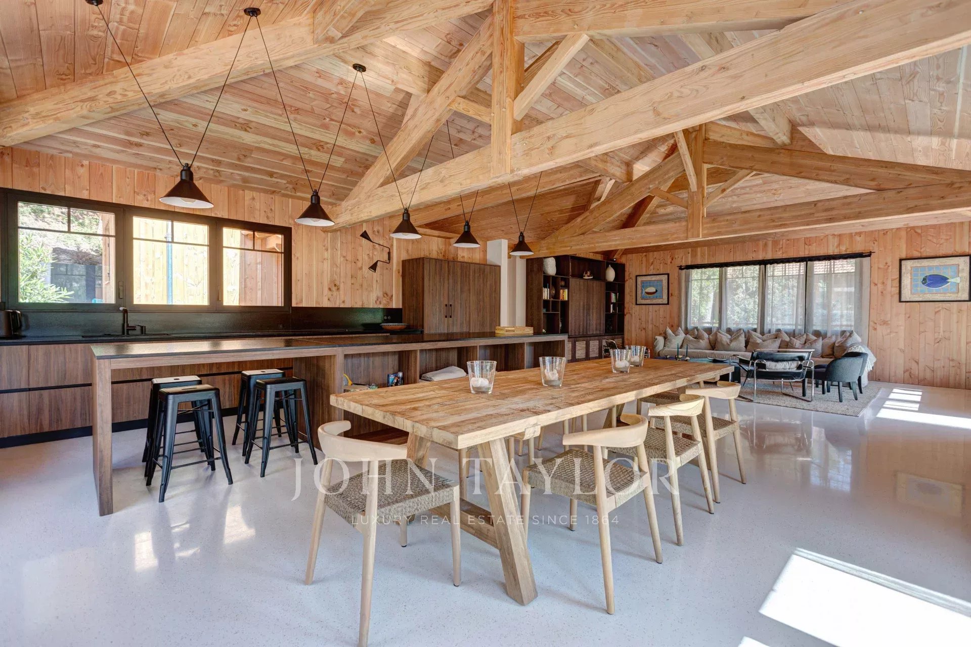 L’ampio spazio living di oltre 80 m² è perfetto per momenti indimenticabili, che si tratti di cene in famiglia o tra amici. La grande cucina open space, completamente attrezzata, è il punto di incontro ideale durante il vostro soggiorno. Lo spazio interno si apre armoniosamente su una terrazza confortevole e multifunzionale, accanto alla piscina riscaldata, ideale per rilassarsi in qualsiasi momento della giornata.