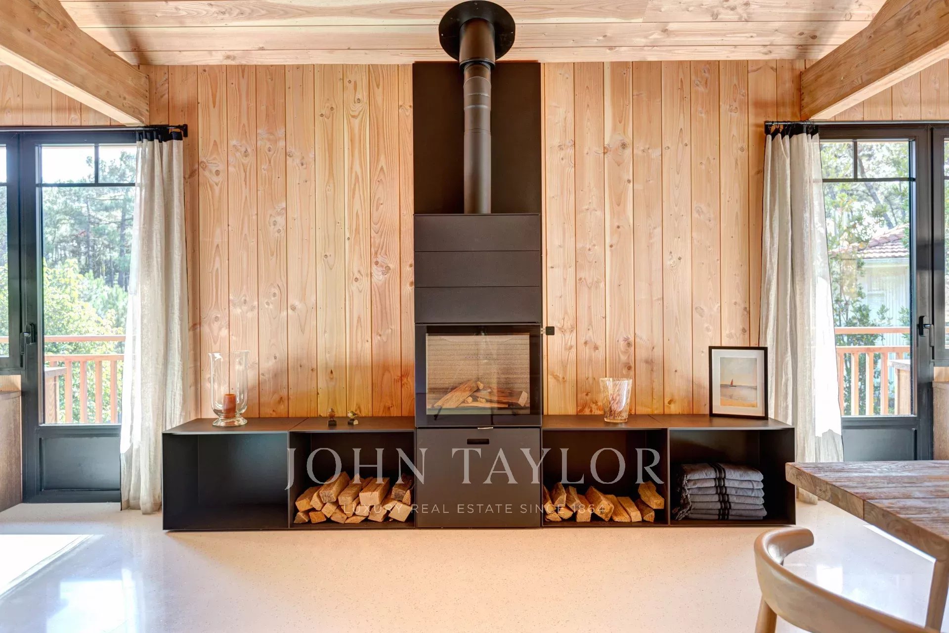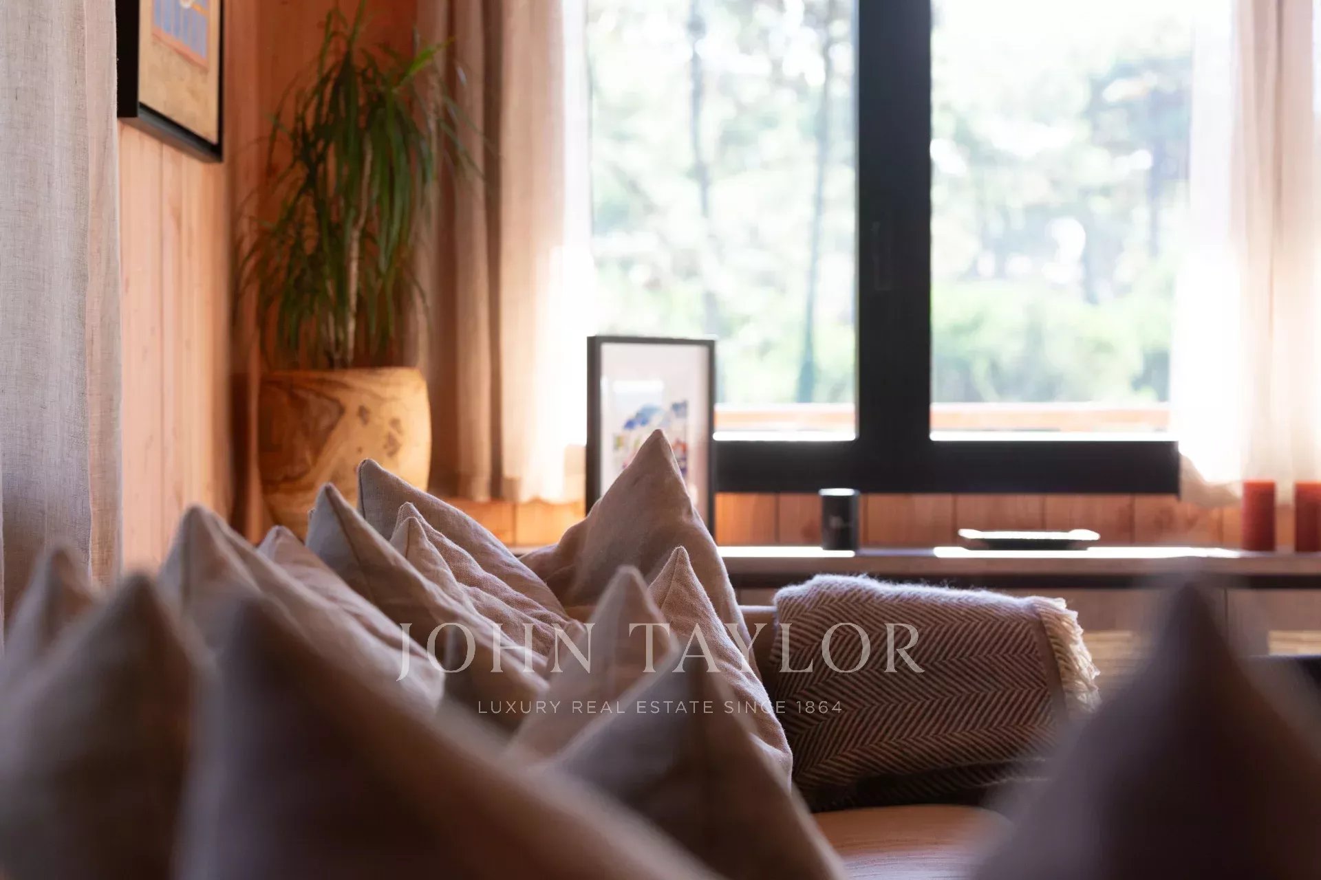 Benvenuti a Villa Mori, una splendida casa in legno che domina le colline del Ferret, situata nel pittoresco e vivace borgo di Canon. Questa proprietà unisce design, qualità e comfort, con dettagli curati per soddisfare anche gli ospiti più esigenti.