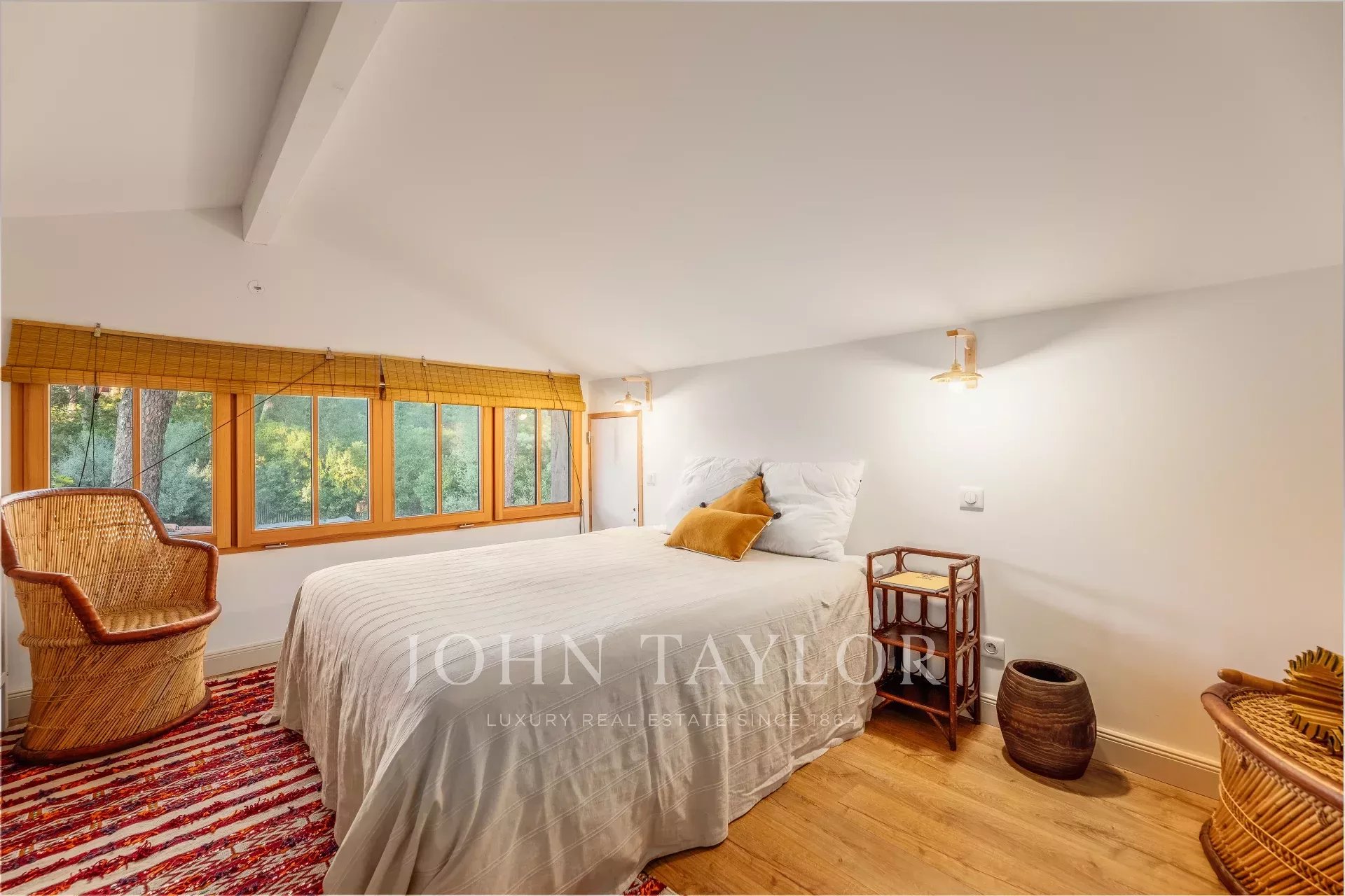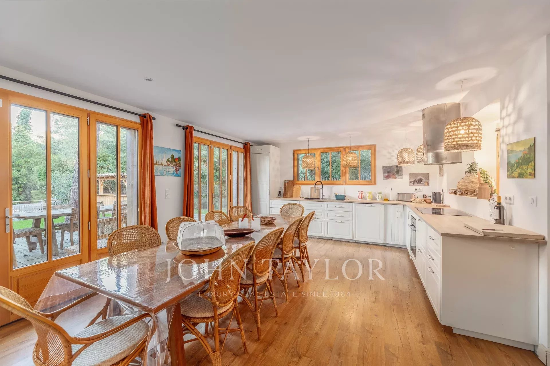 Situata su un terreno alberato di 1.200 m², questa spaziosa dimora affascina per il suo autentico charme e i servizi di alta qualità. All'esterno troverete una piscina privata, una cucina estiva, un campo da pétanque e una dépendance completamente attrezzata, immersi in un ambiente tranquillo e verdeggiante.